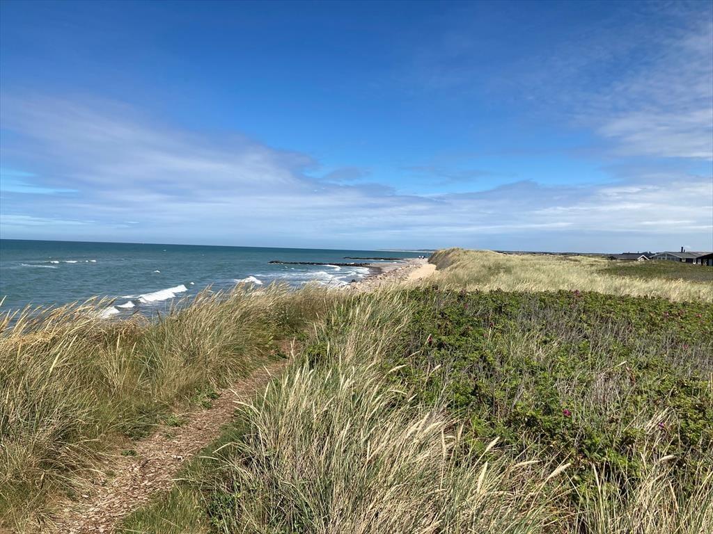 Fra den ugenerede naturgrund har I nem adgang til Vesterhavet, for I kan følge en lille sti direkte fra grunden og ned på stranden. Den korte distance kan tilbagelægges på ganske få minutter, så en spontan badetur kan sagtens komme på tale, og I får et glimrende udgangspunkt for at gå tur langs med kysten. For eksempel kan I gå de cirka tre kilometer ind til Lønstrup langs med vandet – så har I måske også oparbejdet nok appetit til at spise frokost på en god café i den hyggelige kystby. Til fods eller på cykel har I også nem adgang til Skallerup Seaside Resort, hvis I vil i badeland, have wellnessbehandlinger, bowle eller noget helt fjerde.