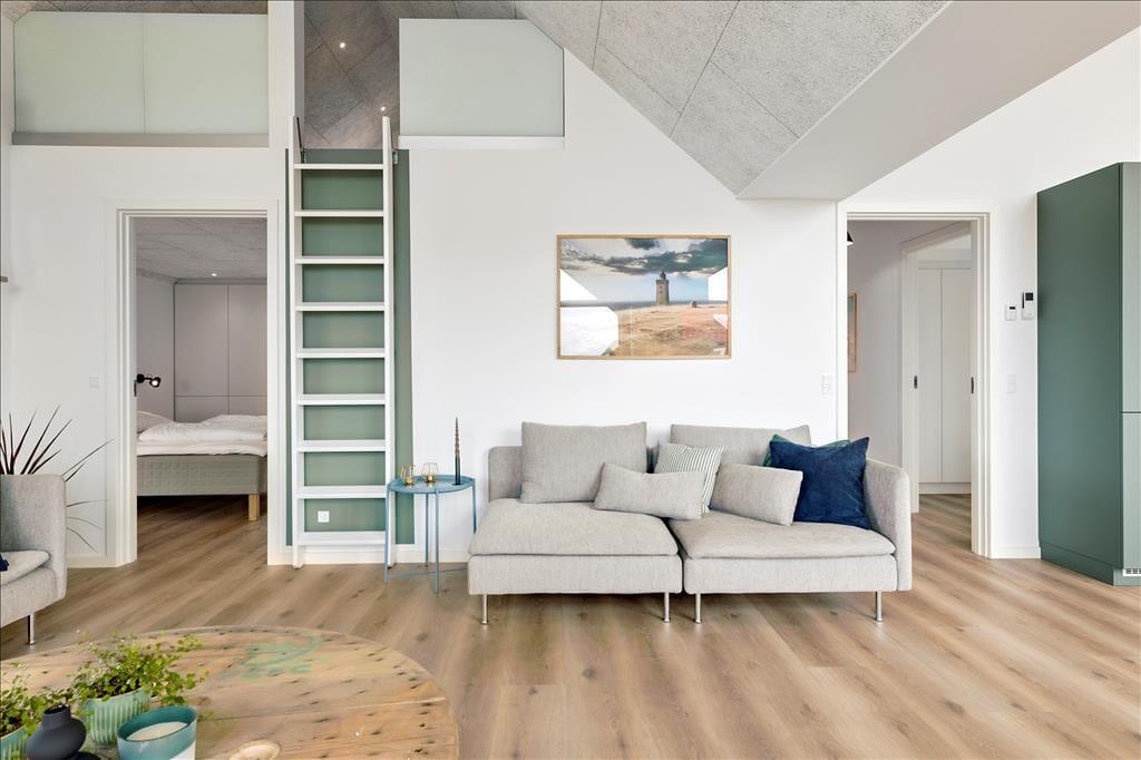Sommerhuset ligger særdeles attraktivt placeret blot 80 meter fra den skønne sandstrand – her er det blot at slå et håndklæde om livet og gå de få skridt ned gennem klitterne, når I får lyst til en dukkert. I kan også gå lange ture langs vandet og bare nyde den friske, salte havluft. Huset ligger desuden tæt på Lønstrup by, hvor I finder et væld af kunstgallerier, kunsthåndværkere, spisesteder og små butikker. Her er der en rigtigt hyggelig stemning, og især i sommerperioden er der mange arrangementer og events. Vil I på en udflugt, kan vi anbefale at besøge Rubjerg Knude, hvor I kan bestige den berømte vandreklit og opleve fyret, der i 2019 blev flyttet 70 meter længere ind i landet.