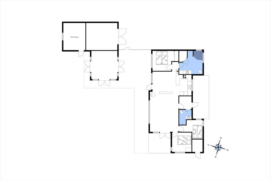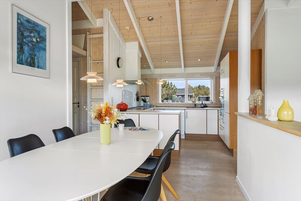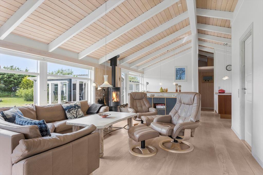Der er tale om et dejligt rummeligt hus, som i tillæg til boligarealet også byder på en skøn havestue. Indenfor er der en lys og indbydende stemning med loft til kip og store vinduespartier, der inviterer masser af solskin og dagslys indenfor. Pladsen er suverænt godt udnyttet, og i det store opholdsrum med åbent køkken er der god plads til ferieturens hyggelige samvær med familie og venner. Der er direkte udgang til terrasserne, som bliver naturlige udvidelser af opholdsarealet i de lune sommermåneder. Huset indeholder herudover en hems, tre gode soveværelser og to badeværelser, hvoraf det største er med sauna og hjørnespa.