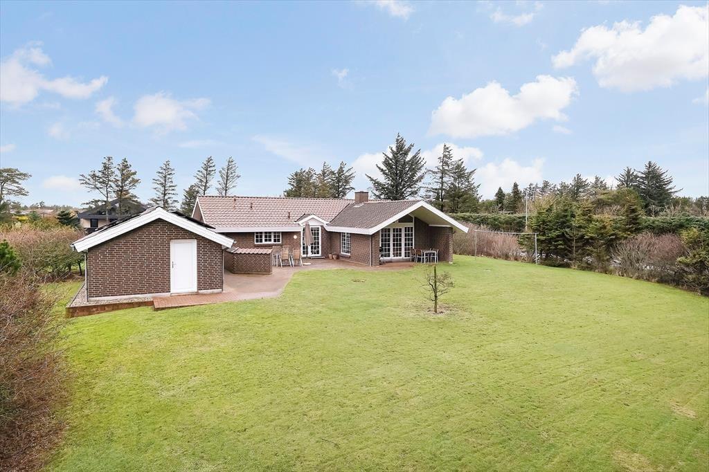 Når I opholder jer ude i det fri, har I også god plads til at boltre jer på, for grunden måler 1300 m2. Bilen kan holde enten i garagen eller indkørslen foran sommerhuset, mens I selv kan holde til i baghaven, der er sydvendt og derfor dejligt solrig. På den store græsplæne kan I rigtigt boltre jer, og hvis I hellere vil nyde udelivet på mere rolig vis, er det nemt at finde den helt rette opholdsplads på den delvist overdækkede og afskærmede terrasse.