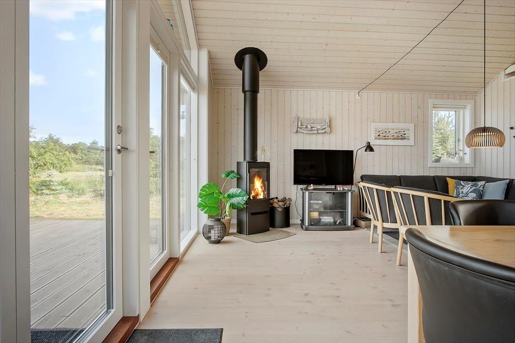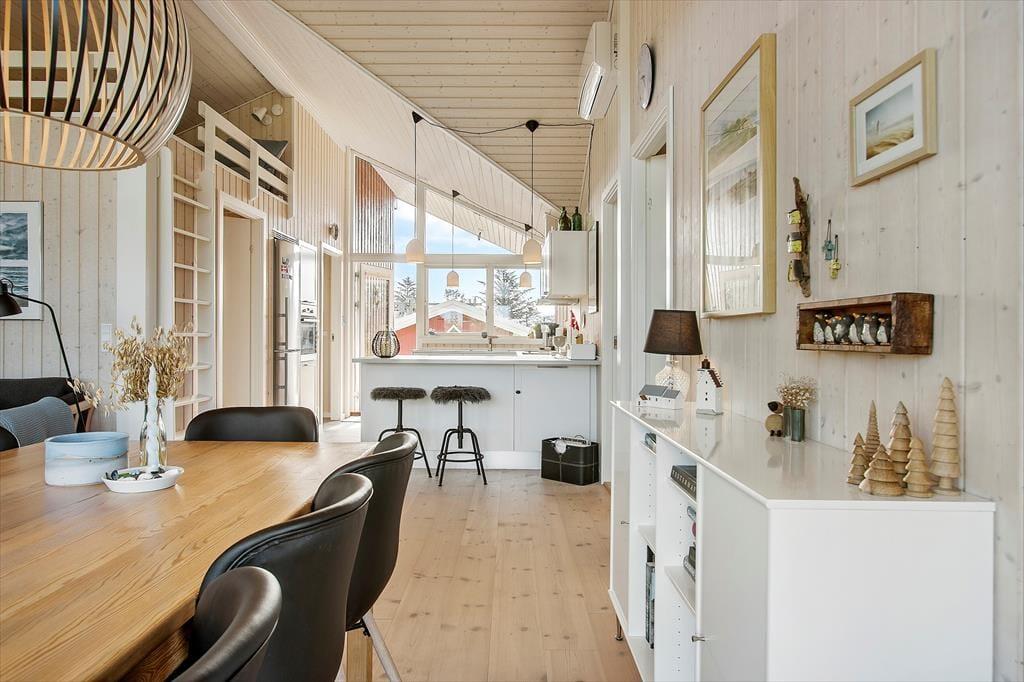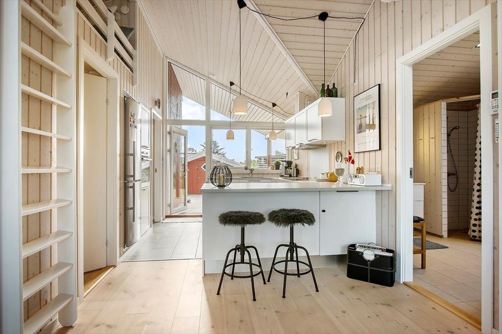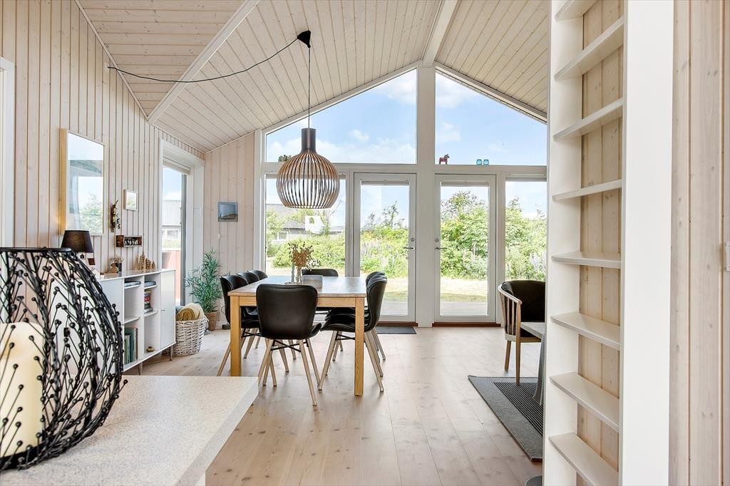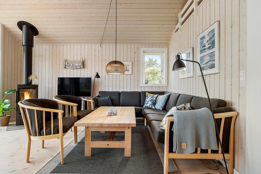 Atmosfæren er lys og indbydende i det 89 m2 store sommerhus, der er opført i 2020 og går under navnet ’Vendelbo’. I alle rum er der loft til kip – pånær i det ene af de tre soveværelser, for her ligger der en hyggelig hems ovenover. De lyse trævægge og stuens brændeovn bidrager til den klassiske sommerhusstemning, og husets store vinduer lader solen skinne ind og giver jer udsigt til haven. Et veludstyret køkken er slået sammen med stuen, og det er formentlig her i opholdsrummet, at I kommer til at tilbringe de fleste af døgnets vågne timer. Det rummelige badeværelse er med bruseniche, og i entréen har I ikke bare plads til overtøj og sko, men også mulighed for at benytte kombivaskemaskinen, hvis det bliver nødvendigt.