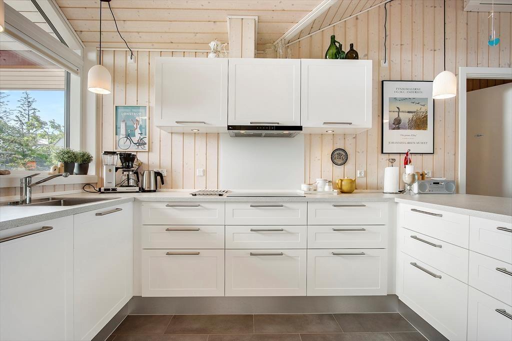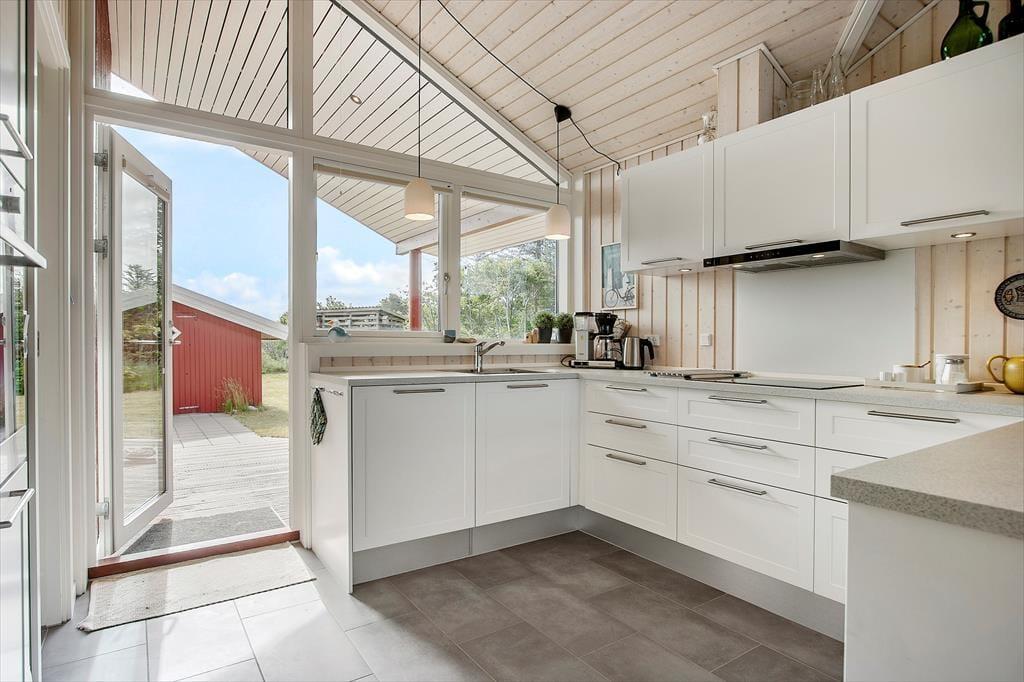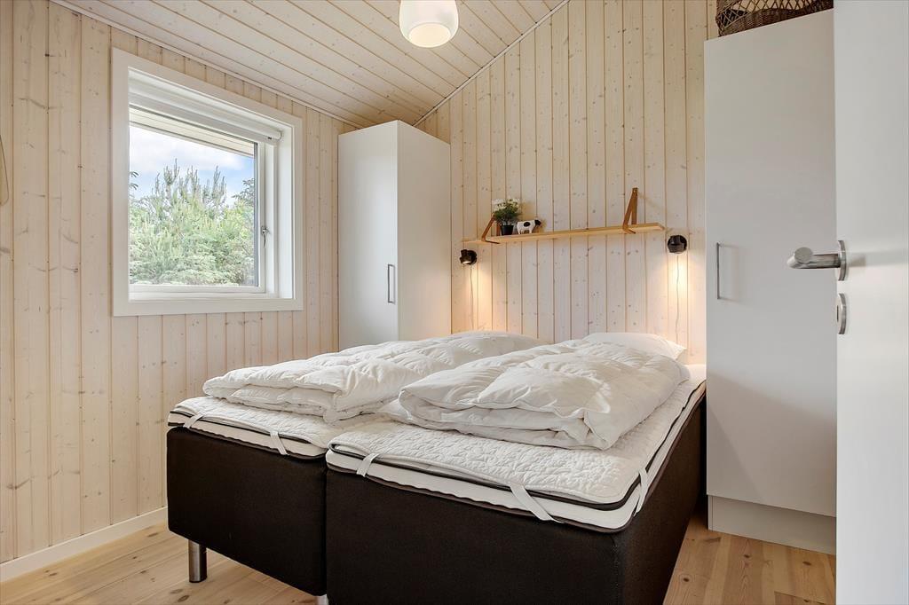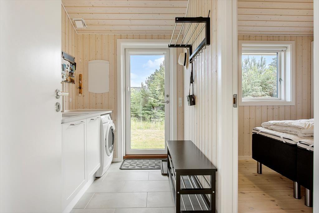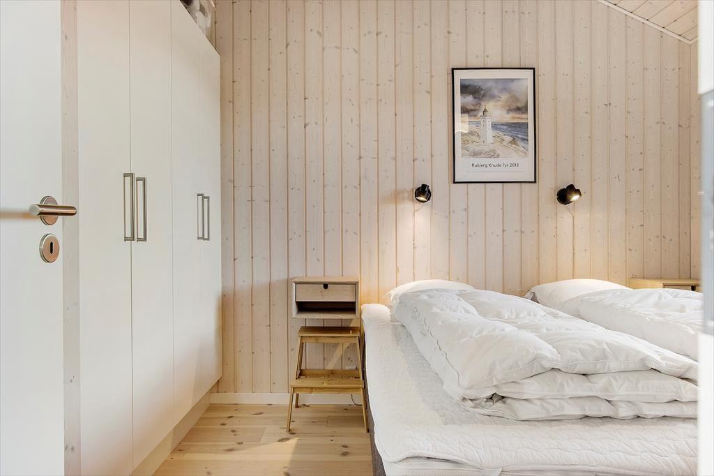 Atmosfæren er lys og indbydende i det 89 m2 store sommerhus, der er opført i 2020 og går under navnet ’Vendelbo’. I alle rum er der loft til kip – pånær i det ene af de tre soveværelser, for her ligger der en hyggelig hems ovenover. De lyse trævægge og stuens brændeovn bidrager til den klassiske sommerhusstemning, og husets store vinduer lader solen skinne ind og giver jer udsigt til haven. Et veludstyret køkken er slået sammen med stuen, og det er formentlig her i opholdsrummet, at I kommer til at tilbringe de fleste af døgnets vågne timer. Det rummelige badeværelse er med bruseniche, og i entréen har I ikke bare plads til overtøj og sko, men også mulighed for at benytte kombivaskemaskinen, hvis det bliver nødvendigt.