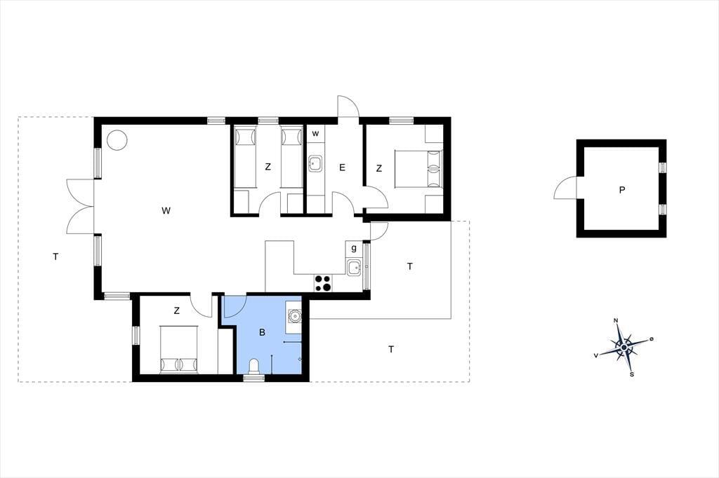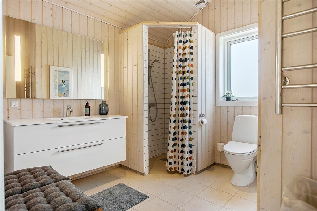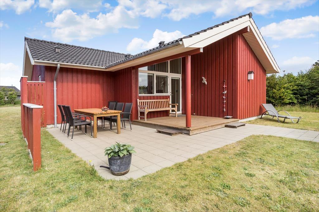 Sommerhuset ligger på en 1389 m2 stor grund, der er enkelt anlagt med græsplæne og randbeplantning. Til de yngste gæster står der et gyngestativ, mens de gode træterrasser er til hele familien – tænk at kunne sidde her med en varm kop kaffe eller en kold is uden andet end hygge og afslapning på programmet. Den sydøstvendte terrasse er delvist overdækket, så I kan overveje, om det er her, I skal rykke hen, når dagen bliver til aften, og duggen snart falder.