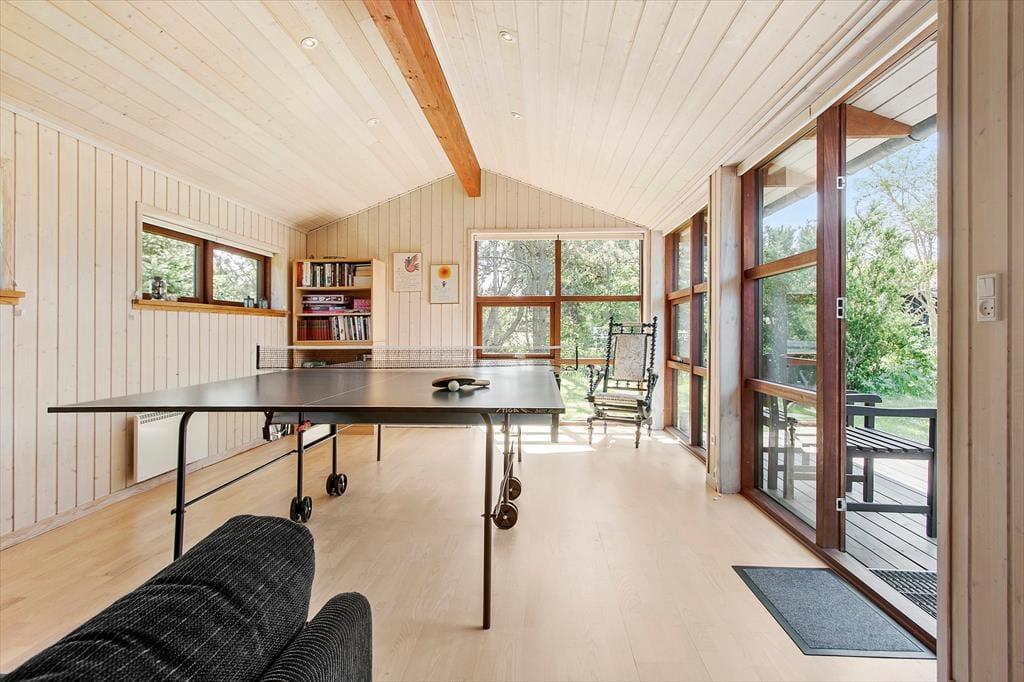 Der er nok at opleve i lokalområdet, men en stor del af ferien kan nu også sagtens foregå hjemme på Sneppevej 15. Det 84 m2 store sommerhus er opført i 2006, og det har en glimrende planløsning, der byder tre gode soveværelser, en praktisk entré og et wellnessbadeværelse med spabad og sauna. Når I ikke slapper af her i varmen, kan I samles i stuen, der er et dejligt opholdsrum med store vinduespartier og en indbydende atmosfære. Nær sofaafdelingen er der brændeovn og fladskærms-tv, og spisebordet står ganske praktisk nær køkkenet, så I nemt kan bære de velduftende gryder over, når maden står klar. Trænger I til fysiske aktiviteter efter måltidet, kan I rykke over i husets store anneks for at dyste i bordtennis. I annekset er der en sovesofa og et gæstetoilet, og alt i alt har I derfor god plads til seks personer på ferieadressen.