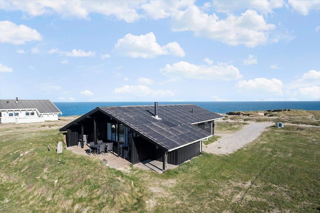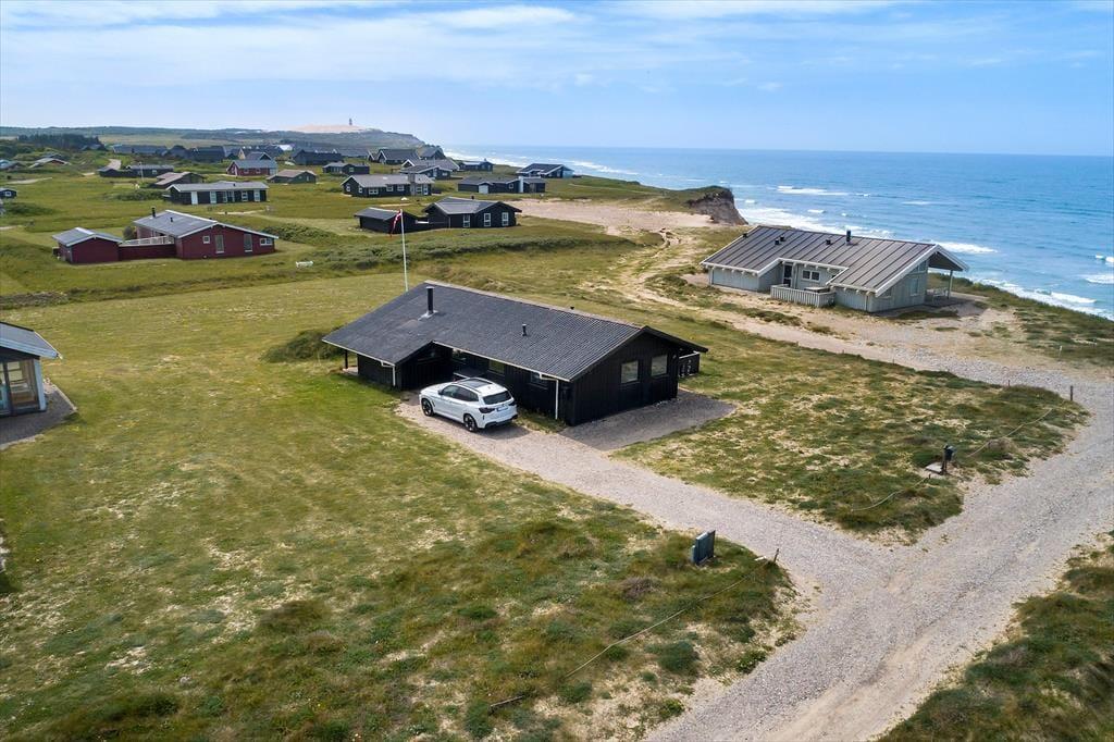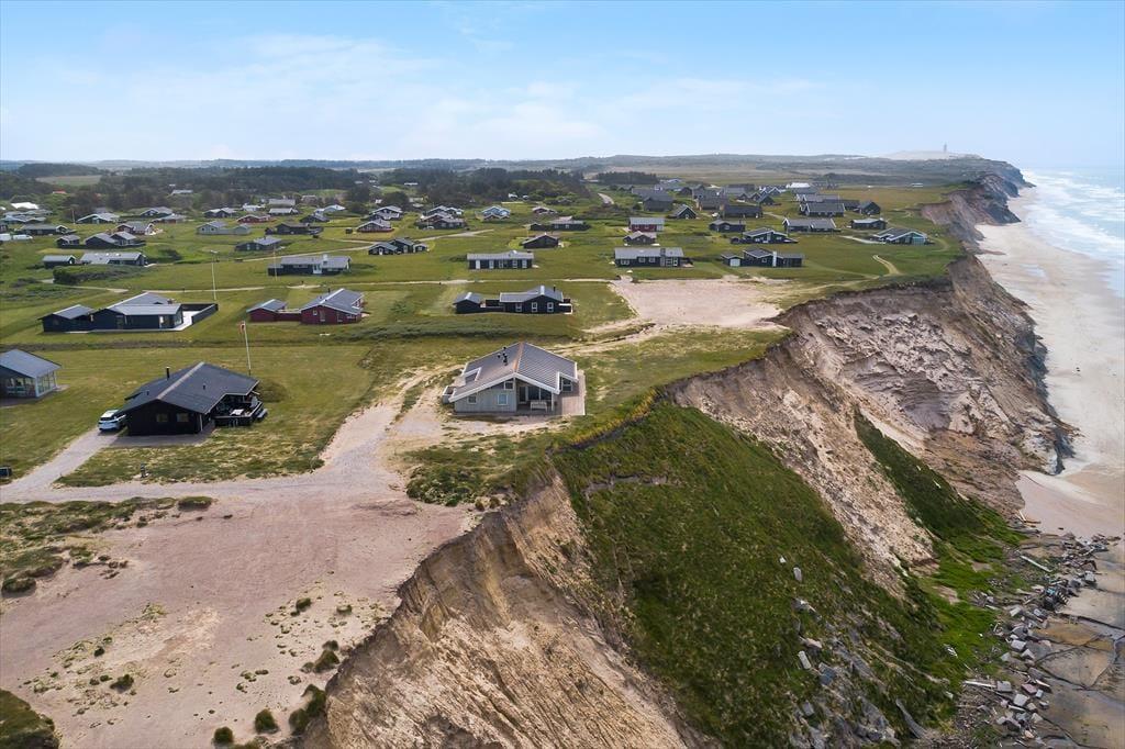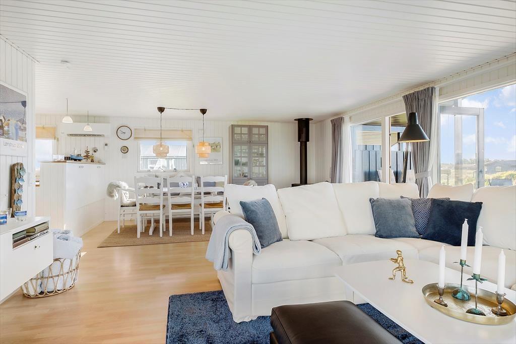 I dette sommerhus har I tæt kontakt til havet, når I holder ferie på Bredningen 17. Fra både stuen og terrassen kan I nemlig nyde synet af Vesterhavets blå vand, og I får virkelig fornemmelsen af at bo på kanten af vestkysten her ved den stejle Lønstrup Klint.