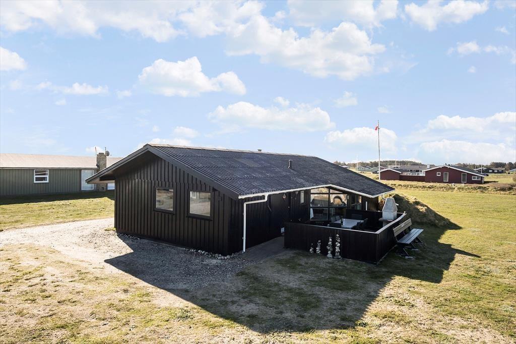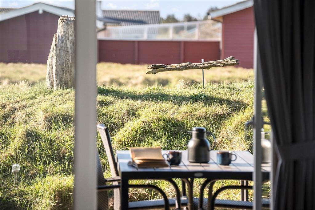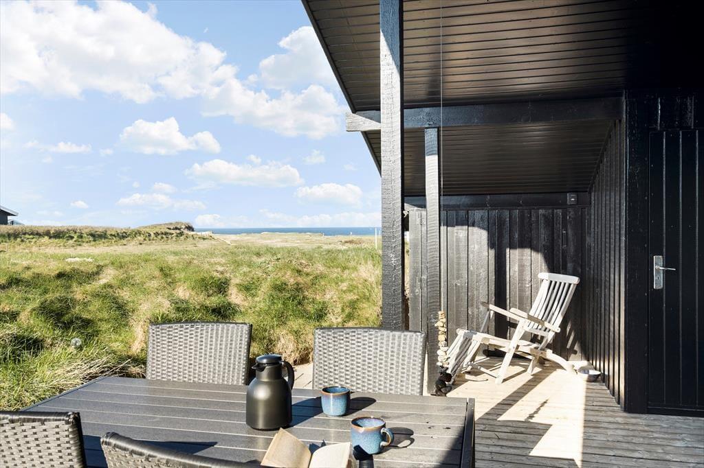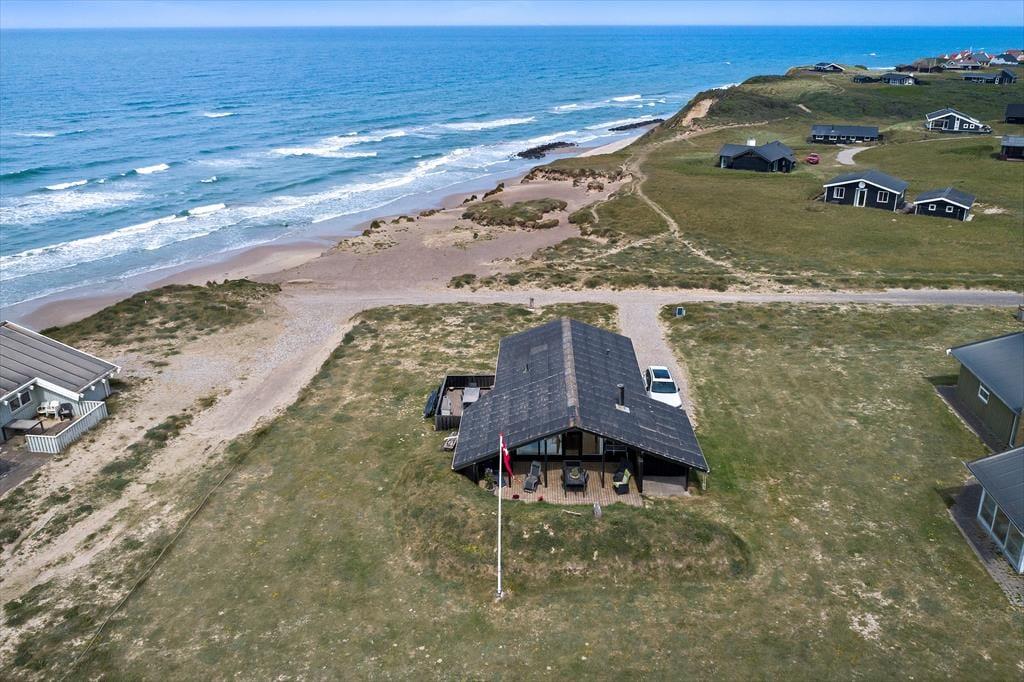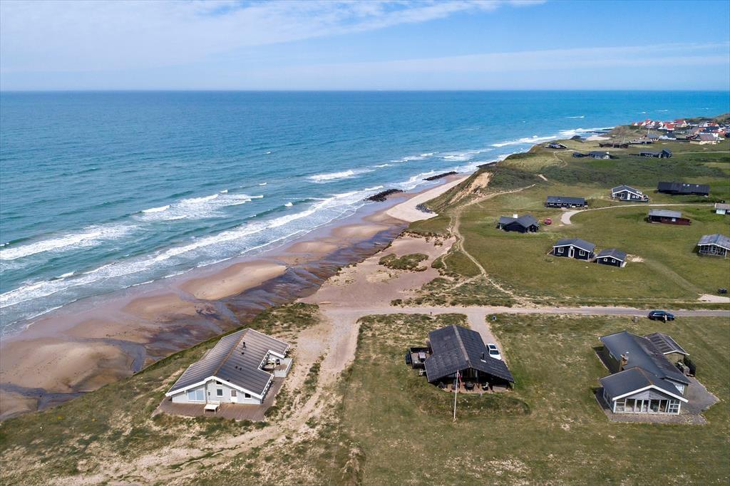 I dette sommerhus har I tæt kontakt til havet, når I holder ferie på Bredningen 17. Fra både stuen og terrassen kan I nemlig nyde synet af Vesterhavets blå vand, og I får virkelig fornemmelsen af at bo på kanten af vestkysten her ved den stejle Lønstrup Klint.