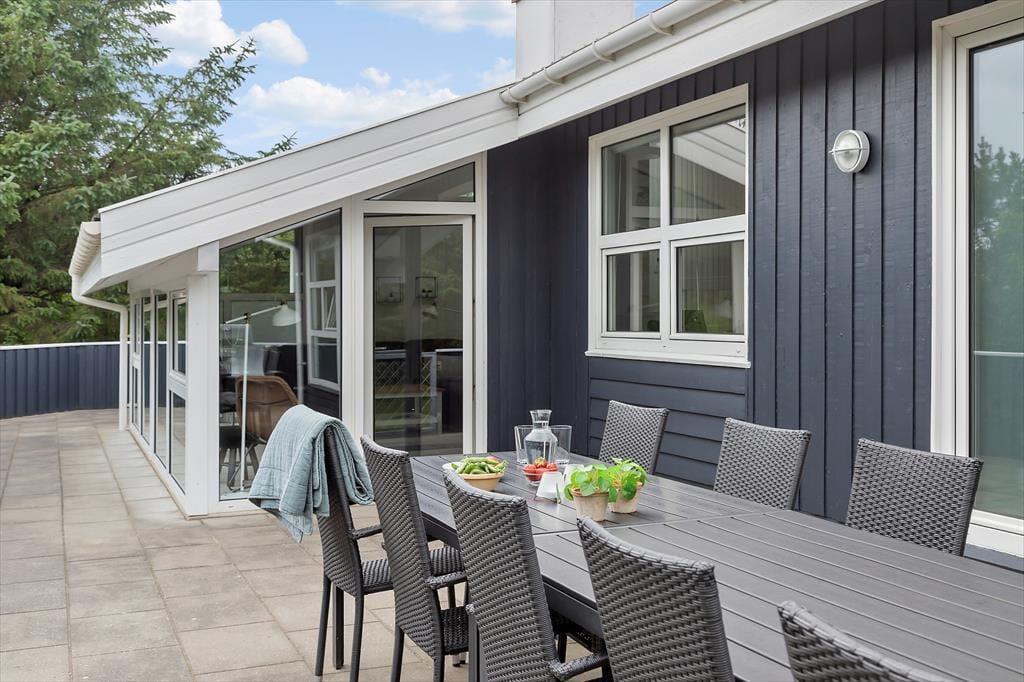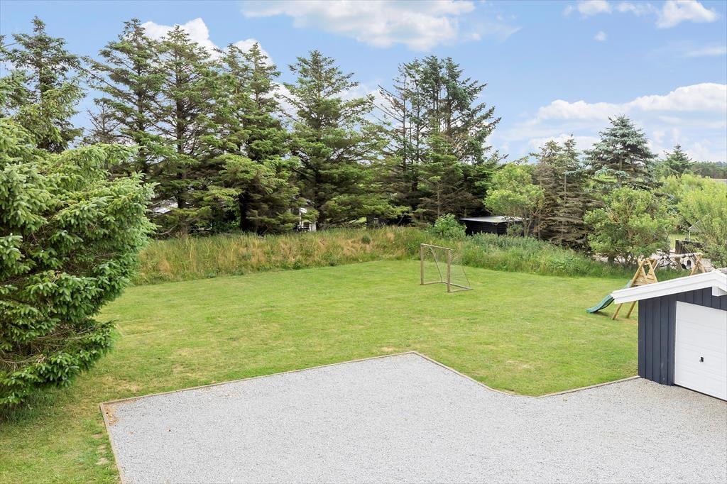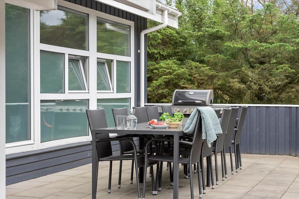 Ude i det fri er der godt at være på den 1450 m2 store grund, der omkranses af randbeplantning ind mod naboerne. Den grusbelagte indkørsel kan nemt give plads til flere biler, og på græsplænen kan I rigtigt boltre jer. Her er der to fodboldmål, så hele familien kan vise, hvad de dur til med en bold, og til børnene er der legestativ og sandkasse. Vil I hellere bare slappe af, er der to lukkede terrasser at vælge imellem, så I har gode chancer for at finde en opholdsplads i solen.