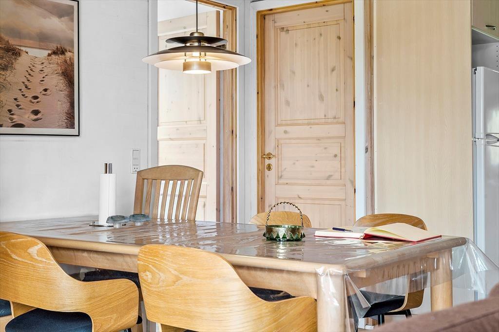 Når der er spabad og sauna på husets badeværelse, kan I se frem til at fylde feriedagene med wellness og afslapning. Det føles også velgørende bare at tage den med ro i stuen, der har en hyggelig sofaafdeling med fladskærms-tv og brændeovn. Spisebordet er placeret tæt på køkkenet, hvor I kan trylle noget lækkert frem – uanset om I nyder at bruge timevis på at kokkerere eller hellere vil tage den nemme løsning, så der er mere tid til at komme på udflugter eller bare flade ud. Med tre soveværelser til rådighed kan I fint være fem personer, og så er der både vaskemaskine og tørretumbler i entréen, hvis I får brug for at friske feriegarderoben op.