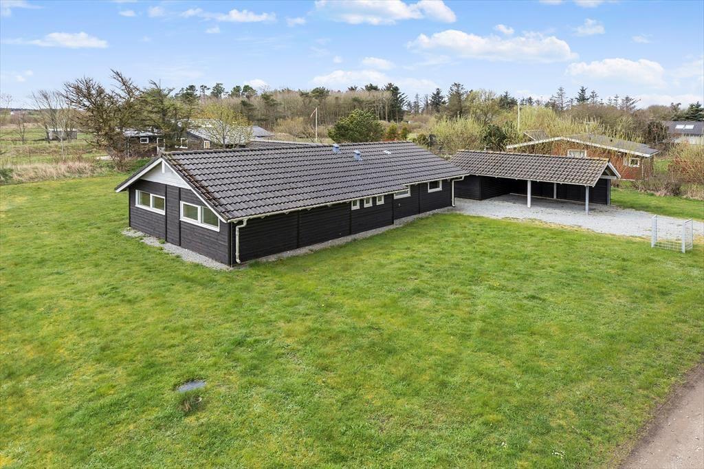 På grunden er der carport til bilen, og I har også adgang til et skur, hvis I får brug for at opbevare fiskegrej, cykler eller andet udstyr. Syd for sommerhuset ligger en flisebelagt terrasse, hvor I kan nyde solen og de rolige omgivelser, og hvis I har børn med, er der plads til fangeleg og kolbøtter på græsplænen.