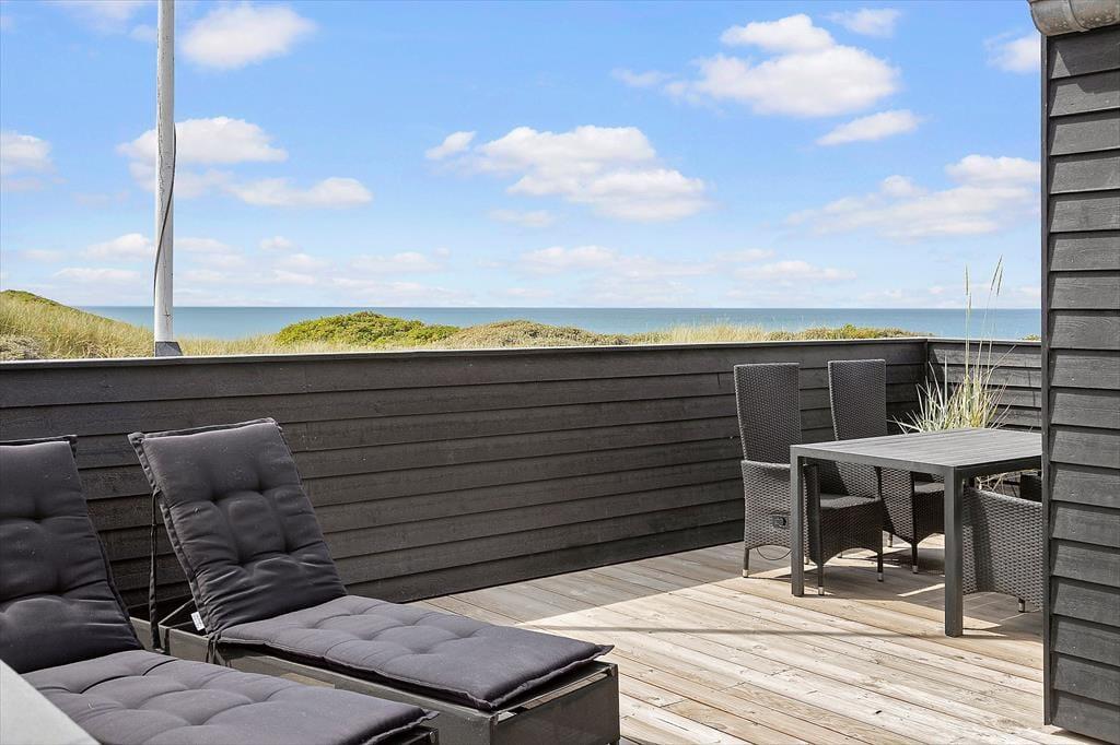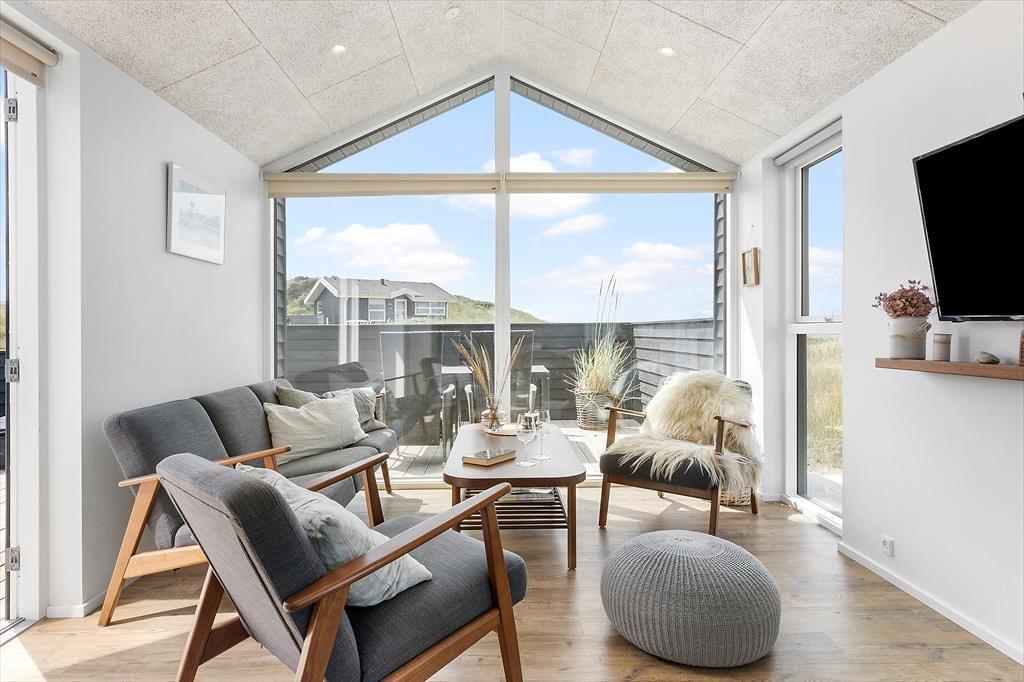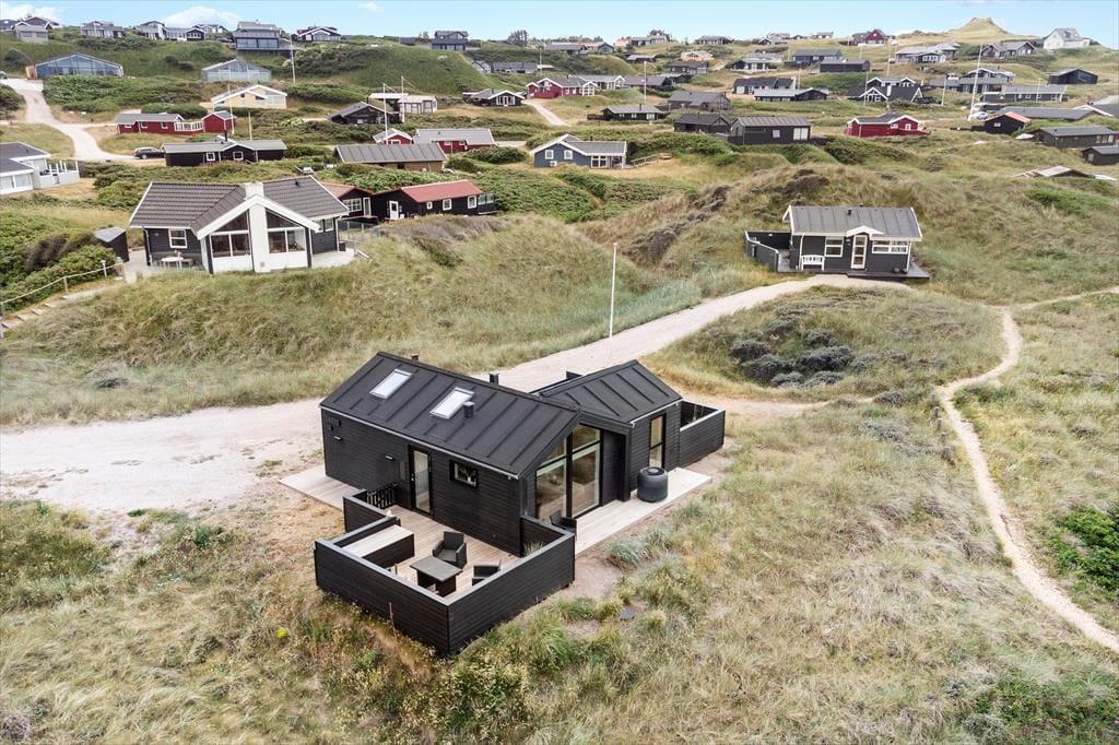 Stilfuldt indrettet sommerhus fra 2020 i første række til Vesterhavet
