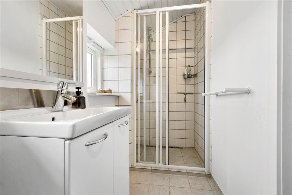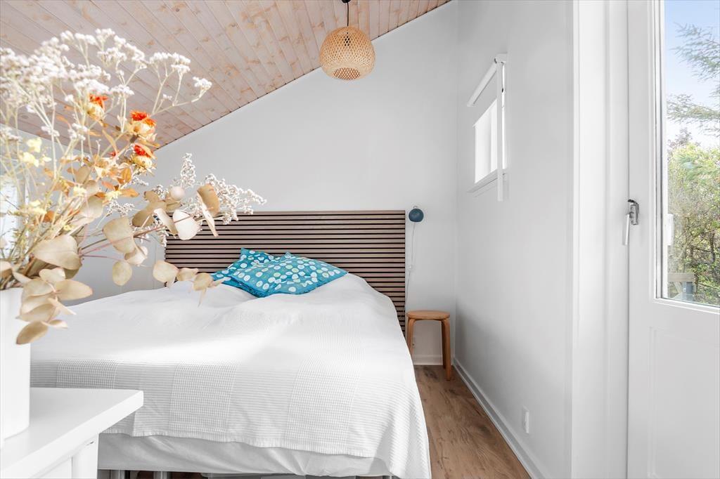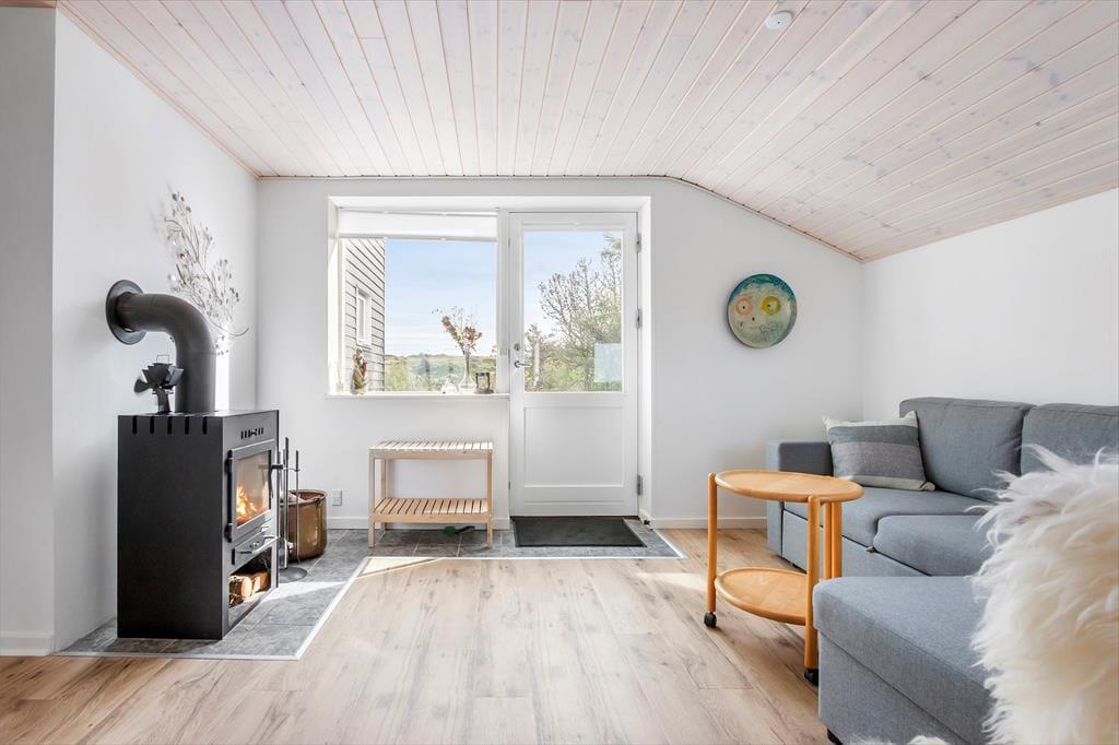 Med sin åbne planløsning og pæne stand efter seneste renovering i 2023 passer sommerhuset perfekt til to personer, der drømmer om at slappe af i lyse og velfungerende rammer. Huset ligger på en lille bakketop, så I har godt udsyn over det kuperede landskab og får samtidig glæde af det særlige lys, der præger kyststrækningen. Planløsningen byder på et godt soveværelse med dobbeltseng og direkte udgang til terrassen. Et badeværelse med bruseniche og et moderne indrettet køkken er der også inden døre – og netop køkkenet er integreret med stuen, så I kan hyggesnakke, selvom det kun er den ene af jer, der er i gang med at kræse om maden. Der er både brændeovn og varmepumpe i opholdsafdelingen, og den ene sofa er for øvrigt en sovesofa.