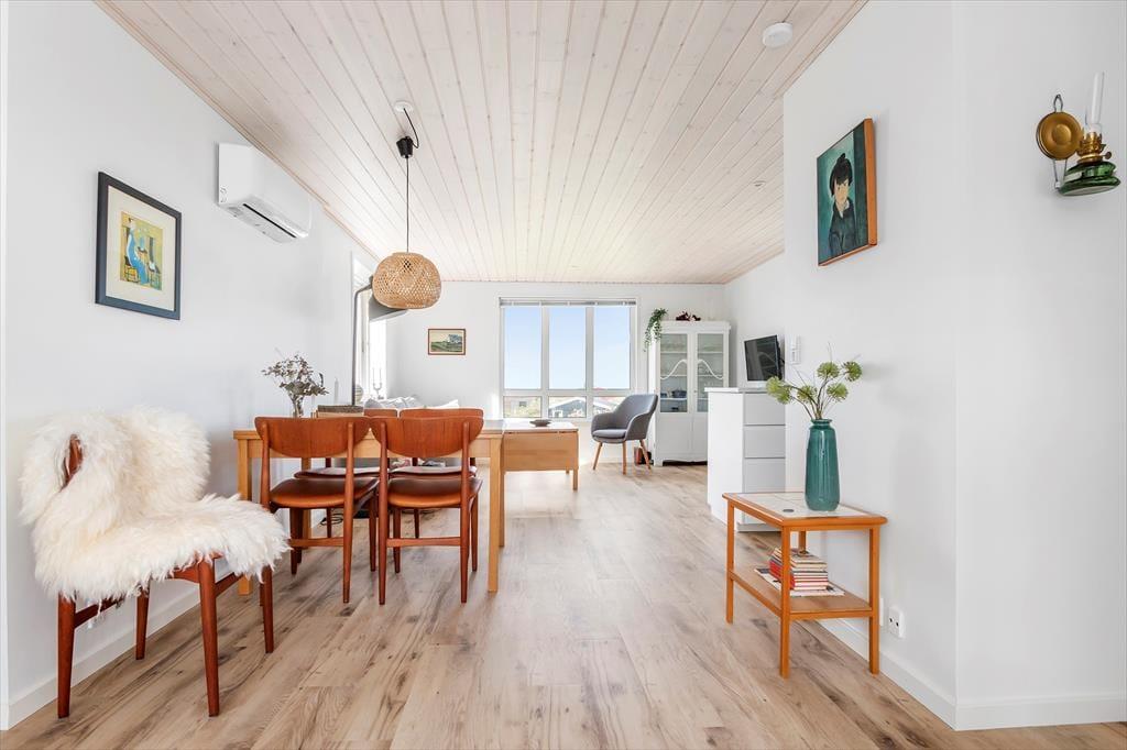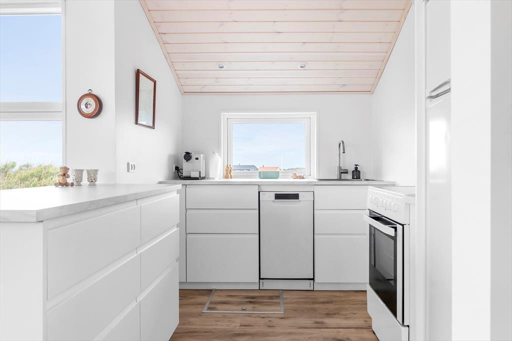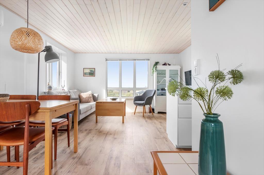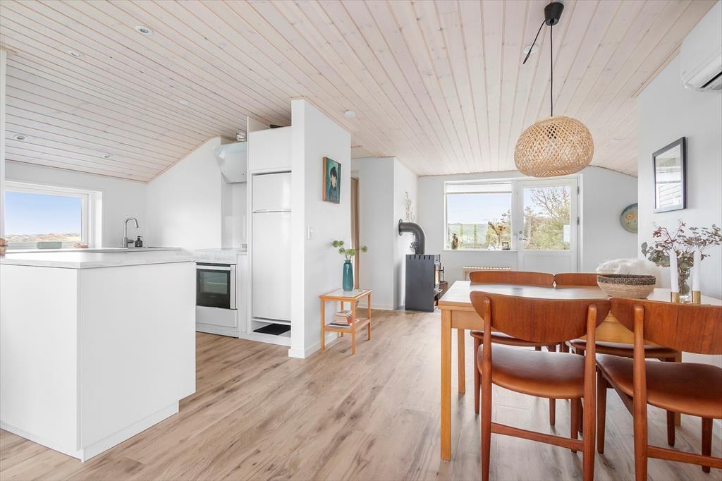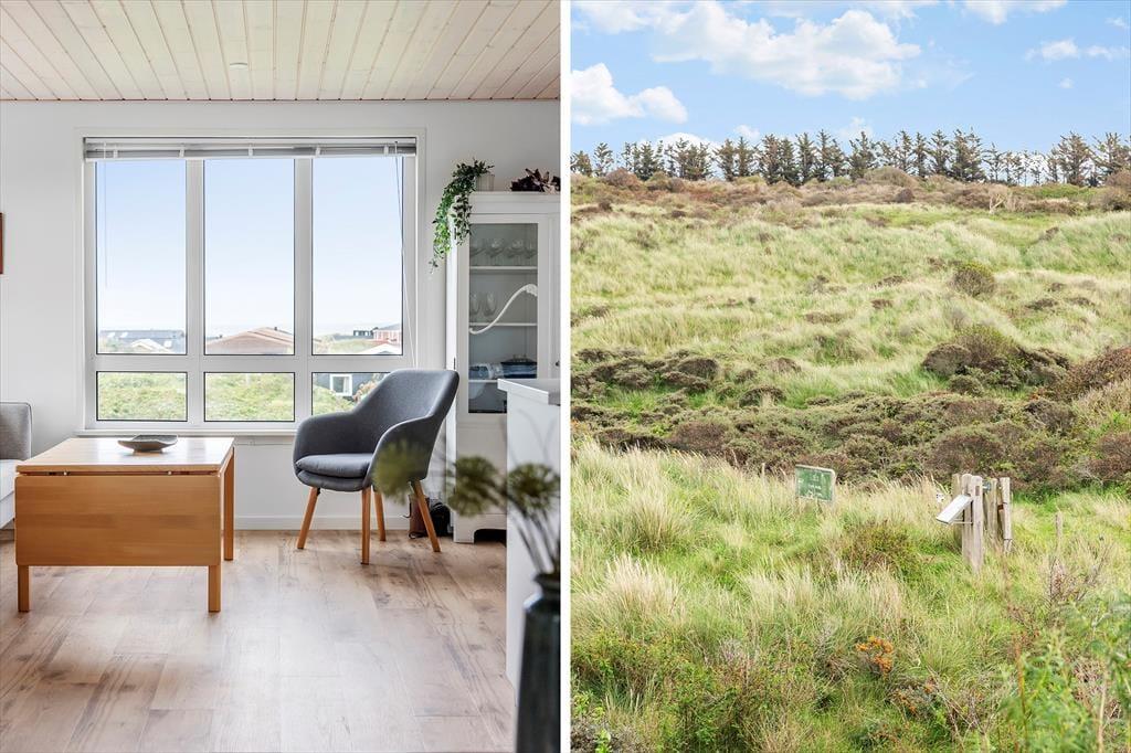 Dette skønne sommerhus er perfekt til jeres næste parferie. Her kan I tilbringe tiden i lyse og indbydende rammer inden døre, og ude har I det flotteste vue over indlandsklitterne fra den ugenerede terrasse. Vesterhavet venter få hundrede meter væk, så I kan se vandet til den anden side, og det er bare nogle af glæderne ved at bo i et højtliggende hus i Harerenden nær Lønstrup.