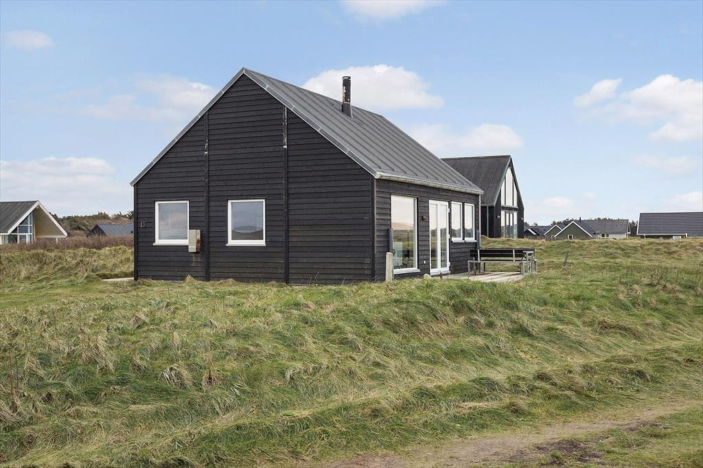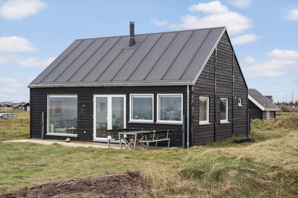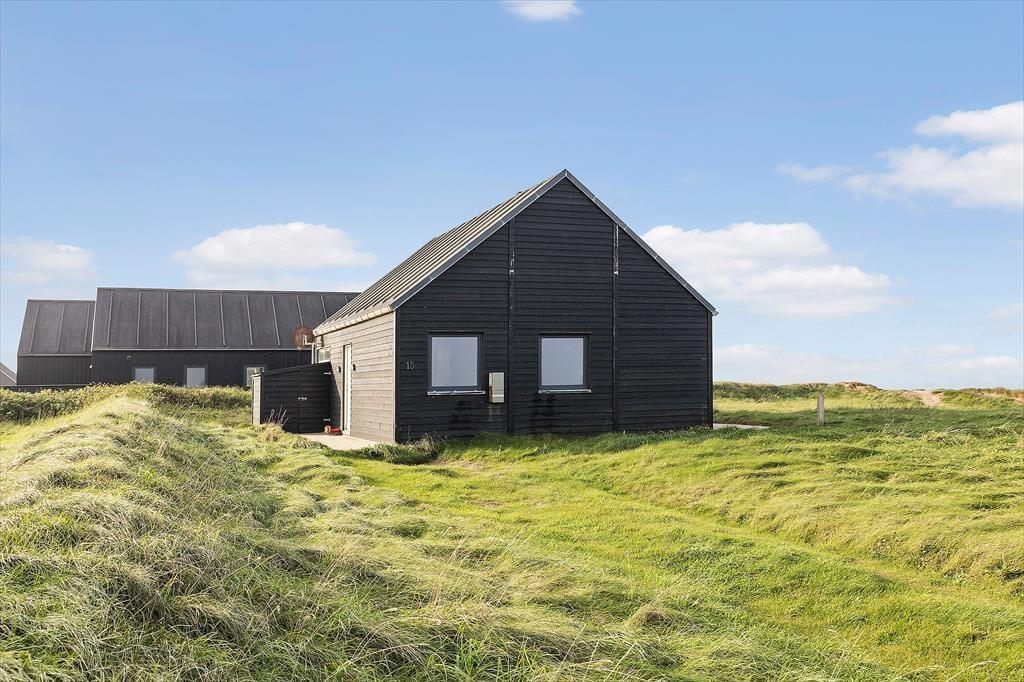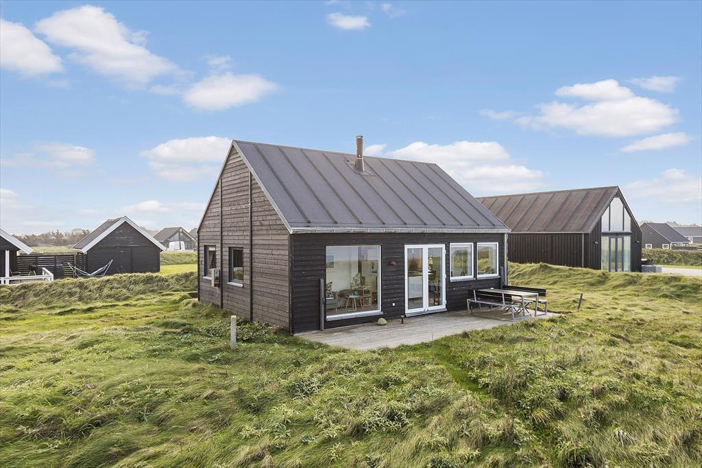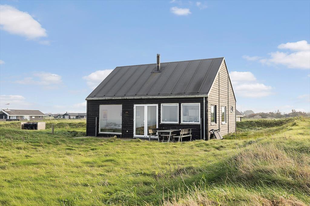 Det 70 m2 store sommerhus er opført i 2016 og præsenterer sig på køn vis med mørk træfacade og sadeltag. Inden døre er indretningen primært holdt i lyse farvetoner, og det moderne møblement er med til at gøre rummene ekstra indbydende. I det åbne køkken kan I slå jer ned med en kop formiddagskaffe eller en aperitif før aftensmaden, mens I nyder udsigten til Vesterhavet – her sidder I for øvrigt også tæt på brændeovnen, hvis det er vejr til at skrue op for varmen og hyggestemningen. Fra stuens sofakrog kan I også kigge lige ud på de fantastiske naturomgivelser, og det samme er muligt, når I slår øjnene op om morgenen på de to soveværelser. Værelserne har I alt sengepladser til fire personer, og fra entréen har I adgang til husets badeværelse, der er med bruseniche og kombivaskemaskine.