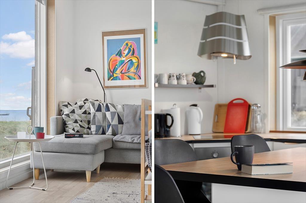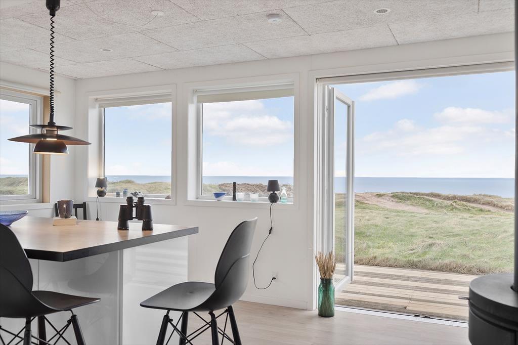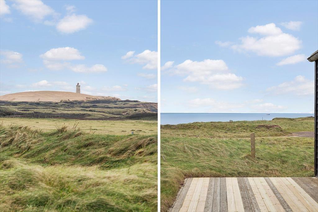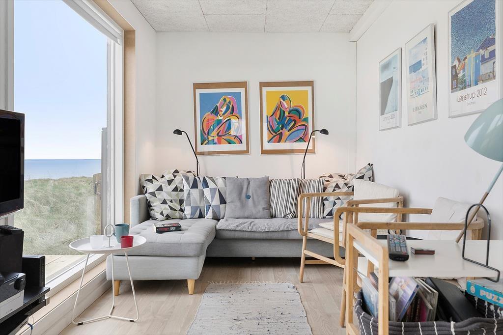 Dette fine sommerhus har en pæn fremtoning og en velfungerende moderne indretning, men det allermest bemærkelsesværdige er nu den spektakulære placering i første række ud mod Lønstrup Klint og Vesterhavet. Det føjer en ekstra dimension til ferien at kunne nyde så flot en havudsigt fra stuen, og fra grunden kan I ovenikøbet hilse på Rubjerg Knude Fyr, der knejser på vandreklitten lidt længere nede langs kysten.