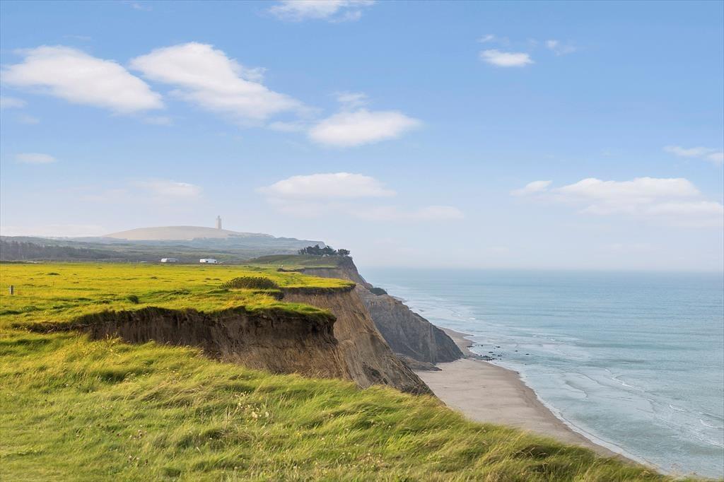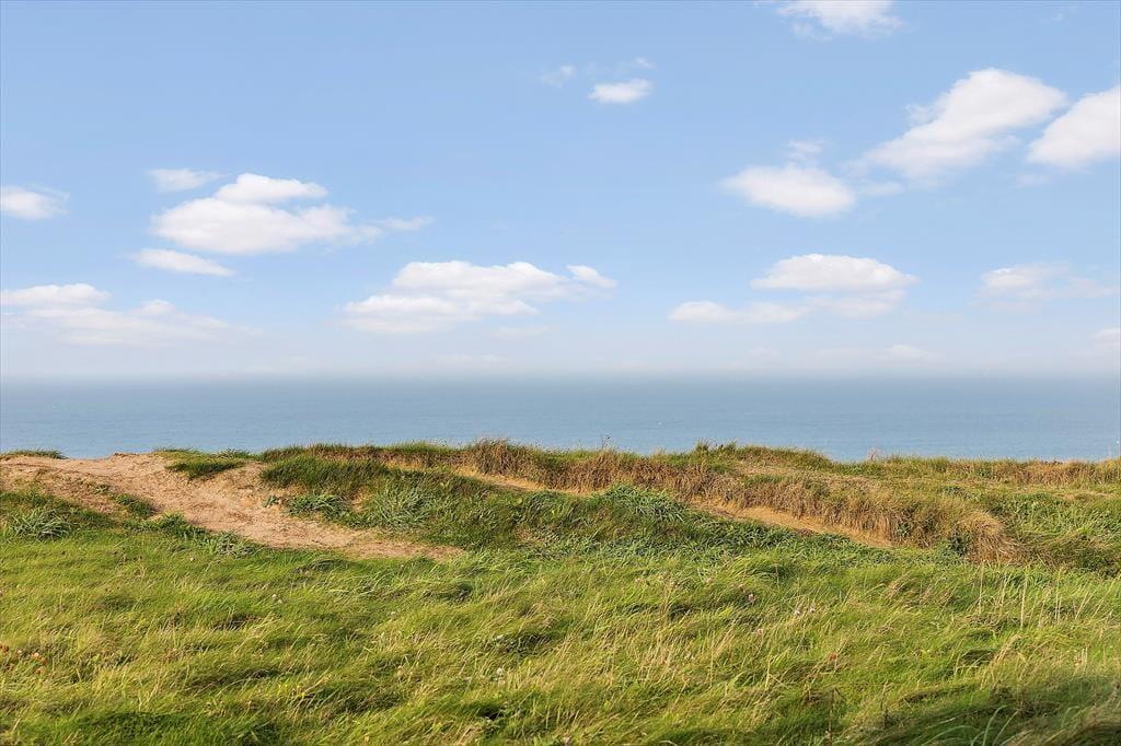 Panoramaudsigten over havet og kysten virker om muligt endnu mere imponerende, når I opholder jer på den 1252 m2 store grund. Huset ligger som nabo til klinten, der er så stejl, at det kildrer i maven, når man kommer tæt på den, men det føles trygt at nyde omgivelserne fra den vestvendte terrasse, der er udstyret med havemøbler, liggestole og en grill. På østsiden af huset venter endnu en åben terrasse, hvor I kan sidde i solen først på dagen.