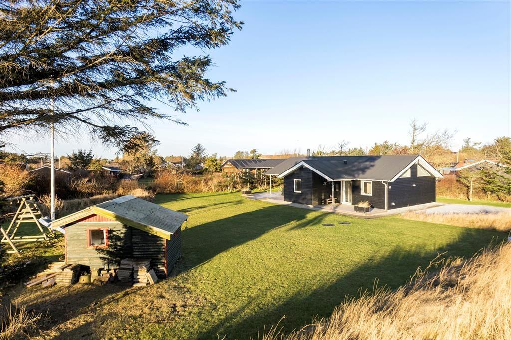 Hvis du elsker at slikke sol i en god havestol, har du kig på det helt rette sommerhus. Rundt om huset er der nemlig flere dejlige terrasser at vælge imellem, så du kan flytte rundt alt efter tidspunktet på dagen – og hvis du skulle trænge til skygge i stedet for sol, er der flere overdækkede arealer at søge ind på. Børn og barnlige sjæle kan glæde sig til at lege og spille bold på græsplænen, og de yngste familiemedlemmer kan også hygge sig med at gynge og bygge slotte i sandkassen.