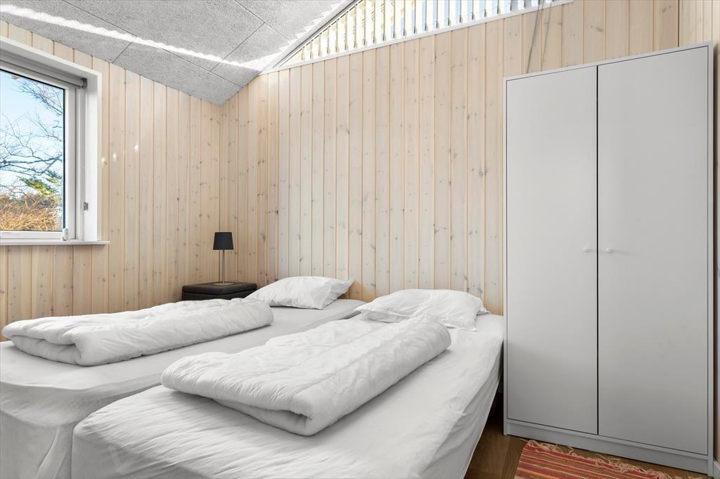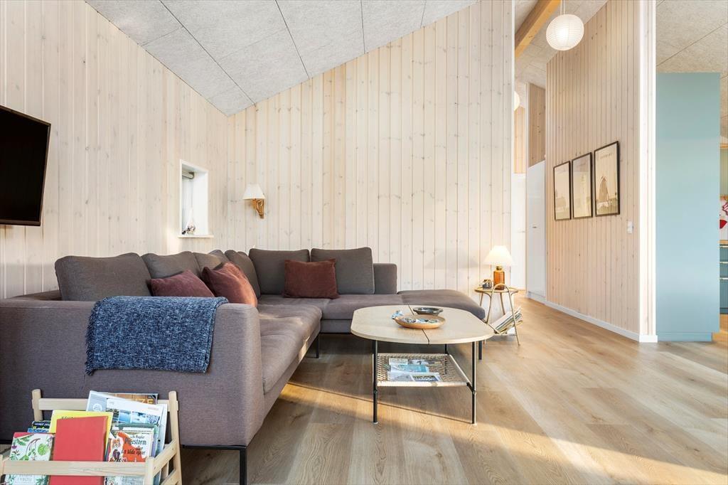 Da sommerhuset blev opført og efterfølgende indrettet i 2022, blev det udstyret med gode faciliteter og kvalitetsmøbler, så du kan se frem til, at alt bare spiller inden døre. Med tre soveværelser og to badeværelser er planløsningen gennemtænkt, så I nemt kan være seks personer inden døre, og hvis du gerne vil invitere bedsteforældrene med på sommerhusferien, er der derfor rig mulighed for det. Uanset hvor mange I er, er det herligt at opholde sig i den lyse og højloftede stue – for eksempel til en lækker middag ved spisebordet, der er placeret med udsigt til grundens grønne træer. Sofaen indbyder til tilbagelænede eftermiddage og aftener med bøger og krydsogtværser, og mon ikke der også kan blive tid til en middagslur eller to i stuens hyggelige alkove.