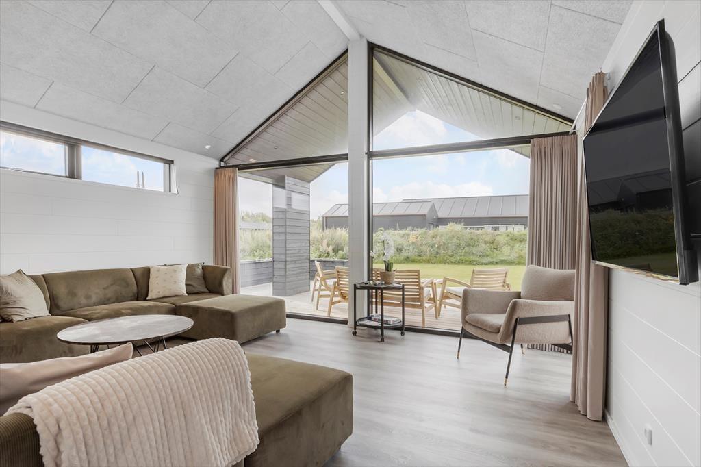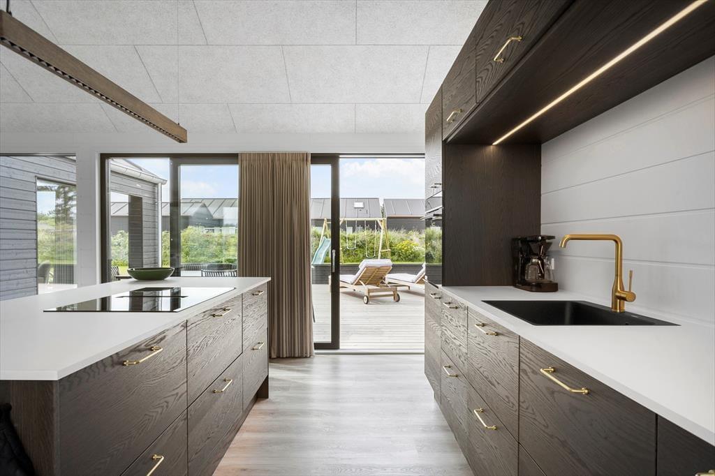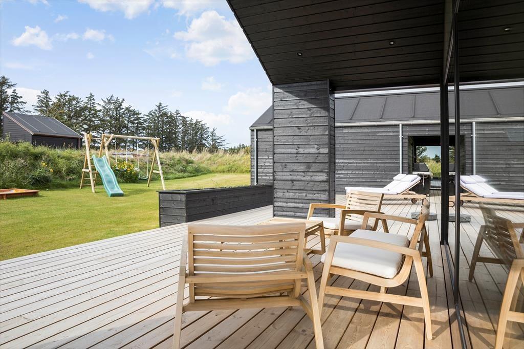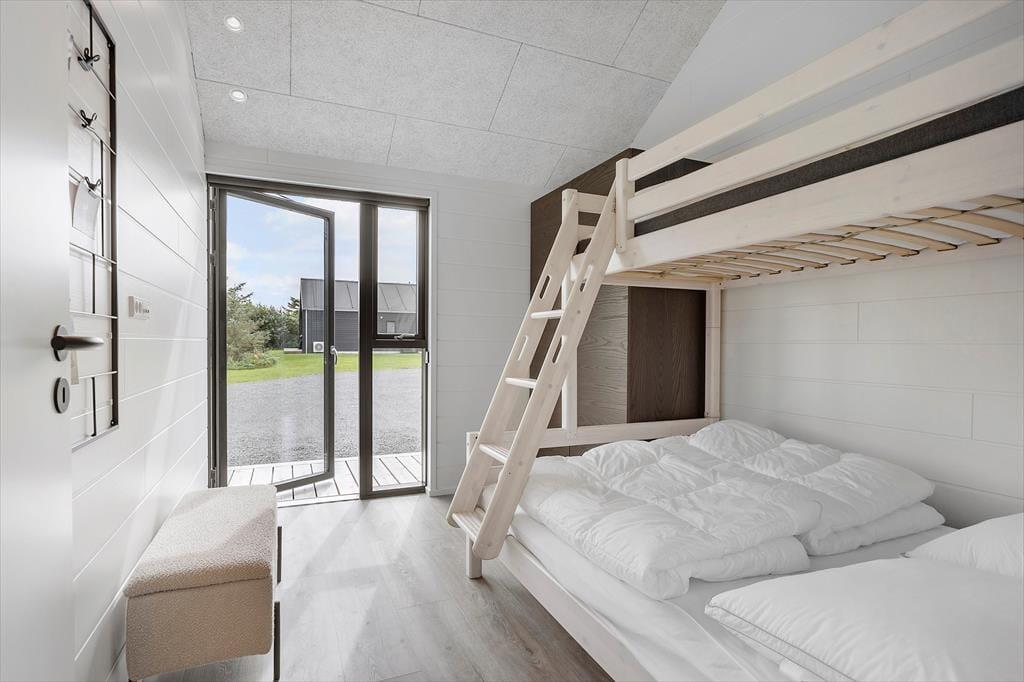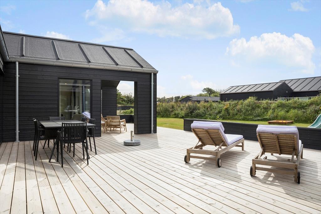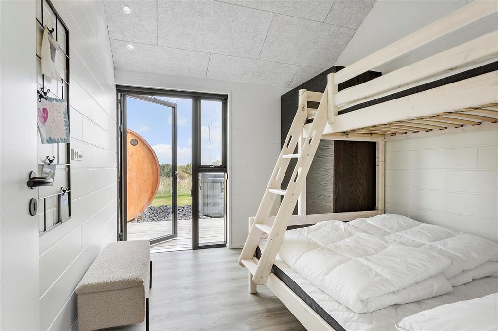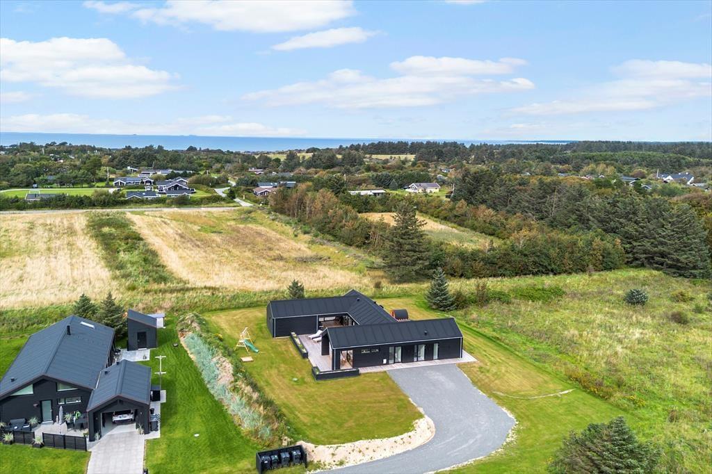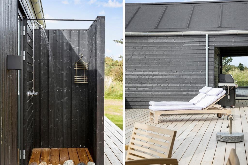 Huset er opført i 2024 i en enkel og minimalistisk stil, der sender en kærlig hilsen til den klassiske sortmalede sommerhusæstetik. Indenfor er der lyst og lækkert, og kiplofterne bidrager sammen med den åbne planløsning og de store vinduespartier til den venlige og indbydende atmosfære. Her føler man sig med det samme godt tilpas, og de mange moderne bekvemmeligheder tilfører et luksuriøst strejf til ferien. I det åbne køkken får de kulinariske udfoldelser fine betingelser, og der er direkte adgang til terrasse og have fra husets opholdsareal. Der er også udgang til terrasse fra alle fire soveværelser – og det er en ekstra luksus at kunne træde direkte fra sengen og ud i dagens første solstråler. Huset indeholder desuden et anneks med et herligt aktivitetsrum, hvor du både finder bordtennis, bordfodbold og dartskive.