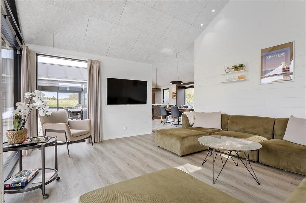 Der venter dig masser af plads og masser af moderne komfort i dette flotte feriehus, der byder på et aktivitetsrum med bordtennis og bordfodbold såvel som skønne solrige terrasser i det fri. Og hele herligheden ligger i bekvem gåafstand fra Vesterhavet og den hyggelige bymidte i Lønstrup.