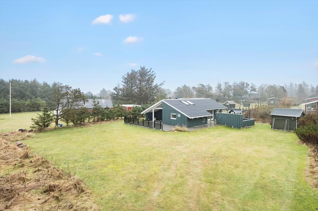 Feriedagene kan også byde på solbadning, grill og andet dagdriveri ude i det fri på den store naturgrund. Til de yngste i selskabet er der et legehus, og måske vil hele familien elske at spille bold og andre havespil på græsplænen. Hvis du bare drømmer om en komfortabel havestol og en varm kop kaffe eller en isafkølet drink, er terrassen helt perfekt til formålet: Der er flere gode terrasseområder at vælge imellem, så du kan finde sol eller skygge alt efter dine præferencer, og mod vest er en del af terrassen sågar overdækket, så det er muligt at blive siddende længe ude på de lyse sommeraftener.