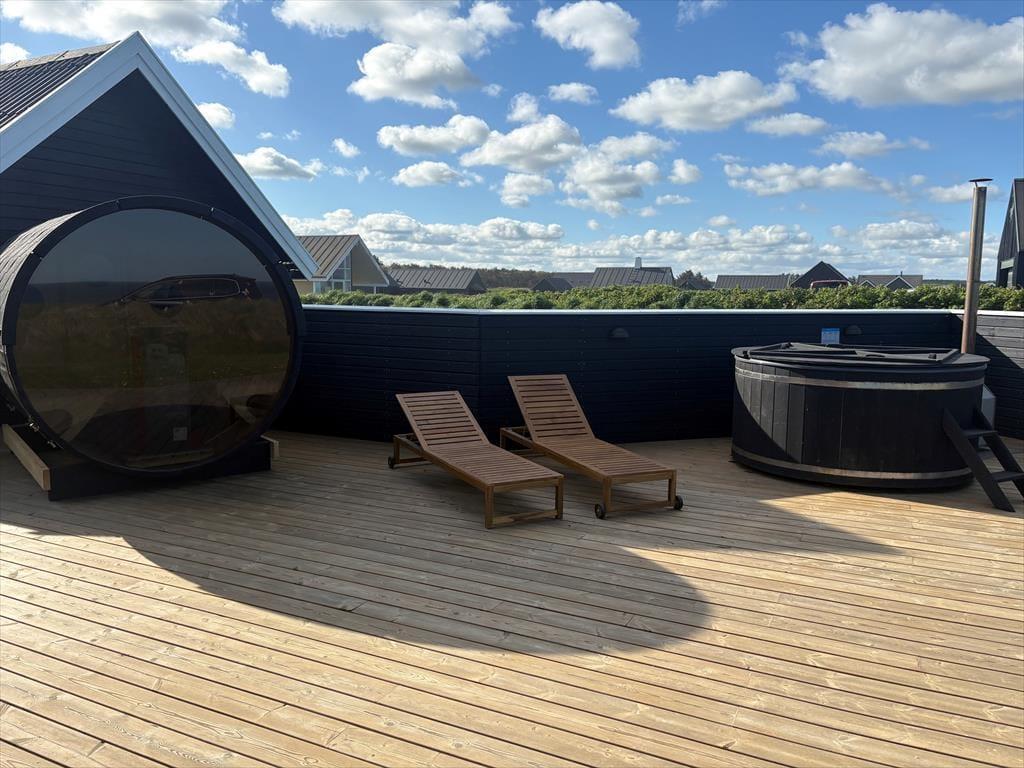 Udendørs venter der dig en stor terrasse, der giver dig mulighed for at nyde både solen og den imponerende havudsigt. Om dagen kan du læne dig tilbage i stolen og lade dig varme af solen, mens du kigger ud over det uendelige hav, og om aftenen kan du samle familien omkring et godt måltid og lade den spektakulære solnedgang blive en del af din ferieoplevelse. Terrasseområdet er det perfekte sted til både afslapning og samvær, og du vil hurtigt føle dig hjemme med naturen lige udenfor døren. Fra terrassen kan du også høre bølgernes brusen, som skaber en uforstyrret og rolig atmosfære – ideelt til lange feriedage, hvor du bare vil være til stede i øjeblikket.