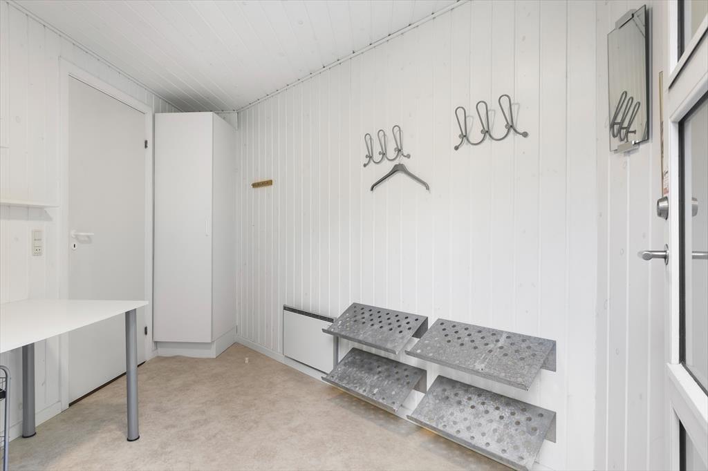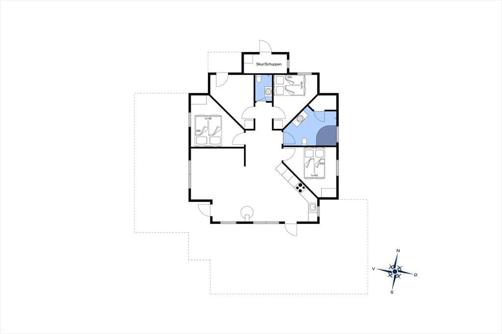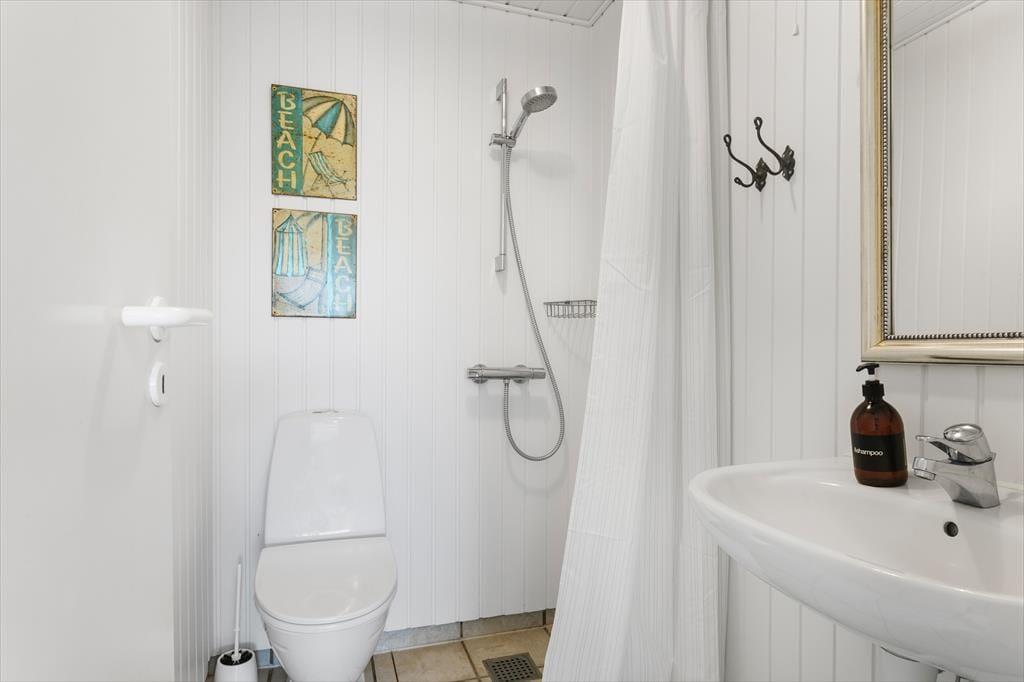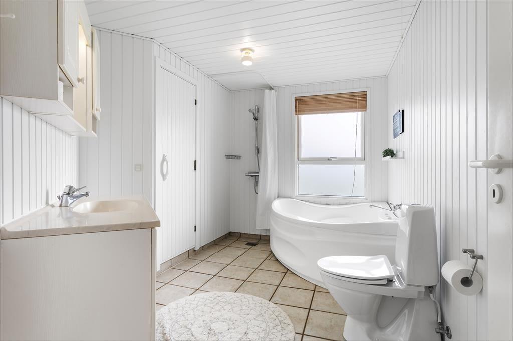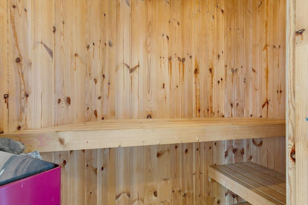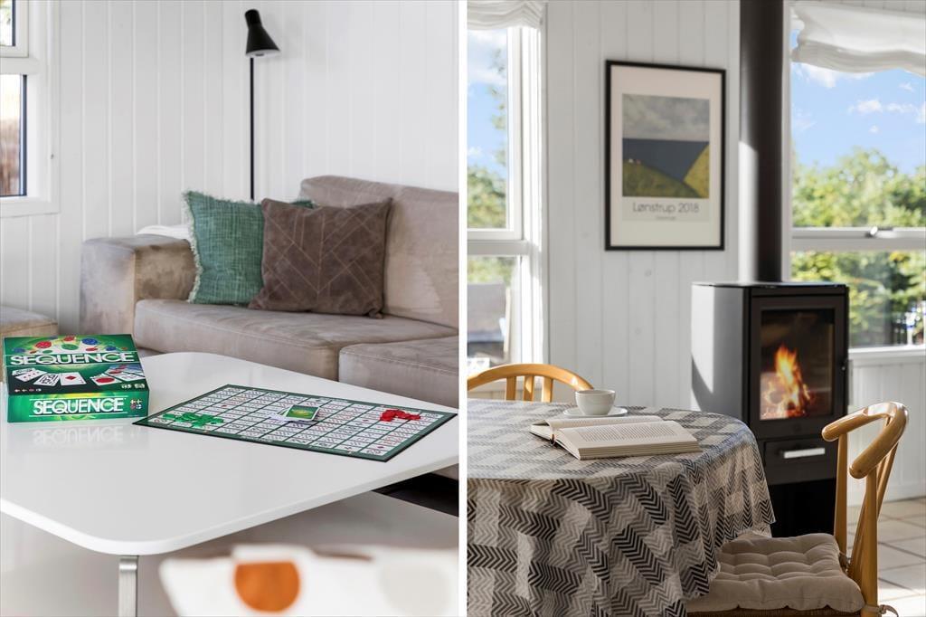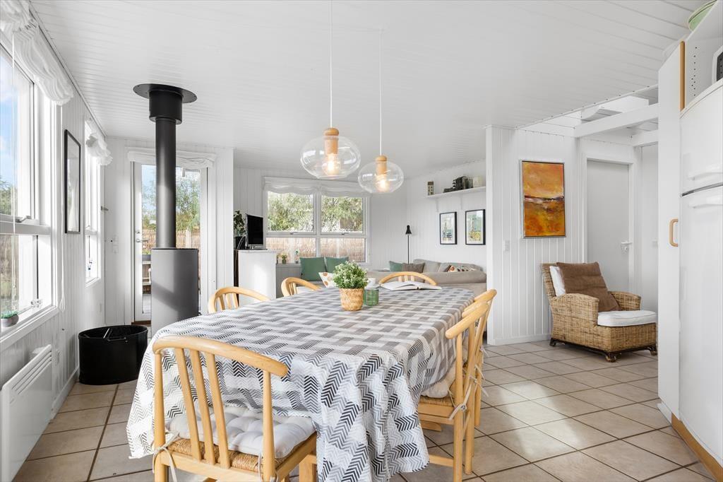 Dagslyset strømmer ind i sommerhusets stue, og vinduerne mod syd og vest giver dig frit udsyn over det naturskønne område. Med sådan et bagtæppe får du rig mulighed for at slappe af og bare nyde livet – og så er det helt op til dig, om hyggestunderne skal foregå i sofaafdelingen eller ved spisebordet med dine kære. Stuens brændeovn står klar til eventuelle kølige dage og aftner, og hvis du trænger til at blive varmet helt igennem, er der både spabad og sauna på sommerhusets største badeværelse. Det er for øvrigt rart, at der er to badeværelser inden døre, for sammen med de tre soveværelser er det med til at gøre huset til en glimrende feriebolig for seks personer.