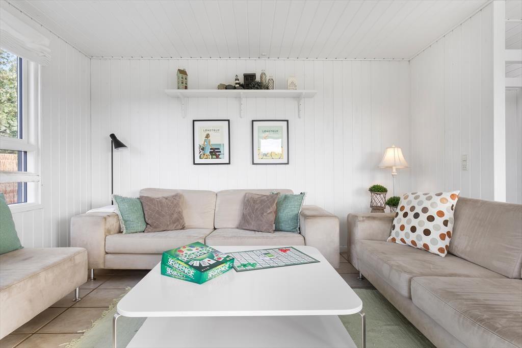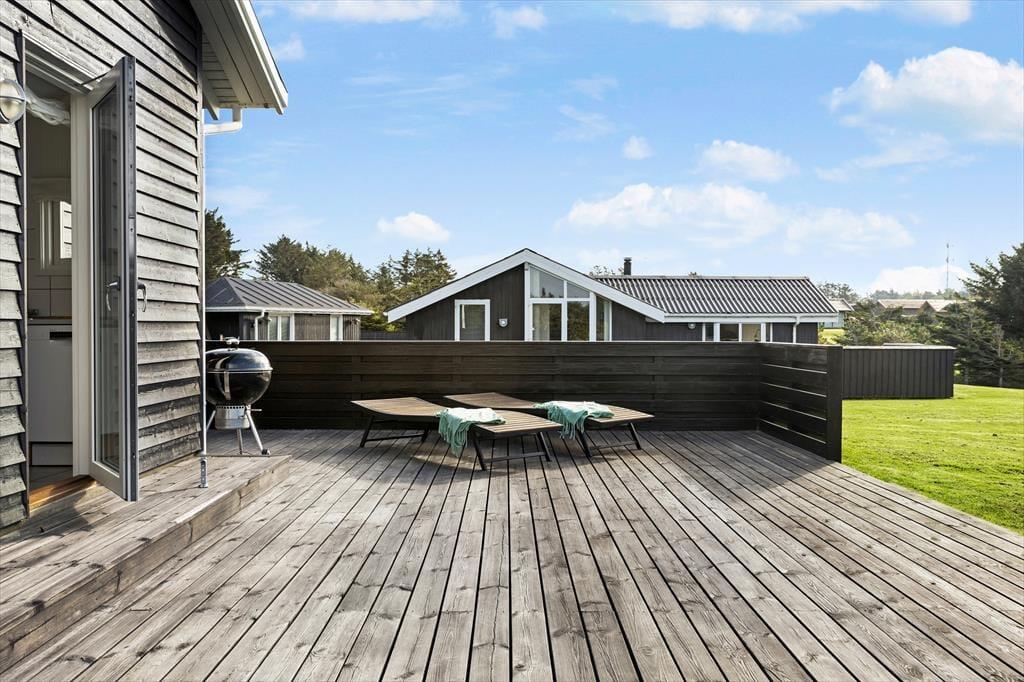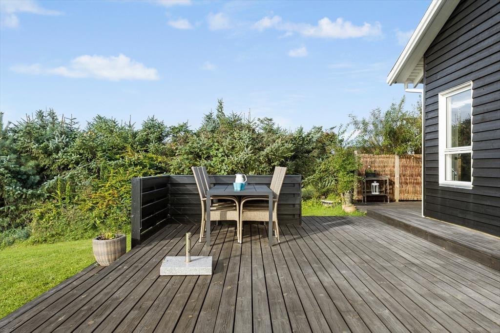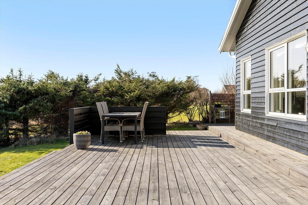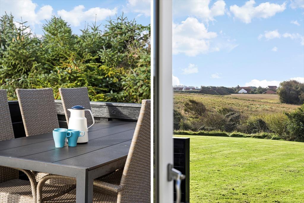 Fra stuen har du direkte adgang til et dejligt terrassemiljø, der breder sig mod syd og vest. Hele dagen lang har du gode chancer for at finde en siddeplads i solen, og udsigten til åbne marker, kønne træer og Lønstrups hustage er med til at gøre driverlivet endda skønnere. Grunden er stor, så hvis du har børn eller en hund med på ferie, er der god plads til at lege og løbe rundt i de fredelige omgivelser – og ellers kan I begive jer af sted fra den lukkede vej og ud på eventyr i Lønstrup by og omegn.