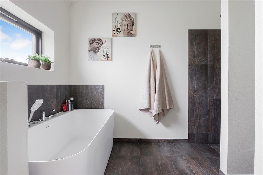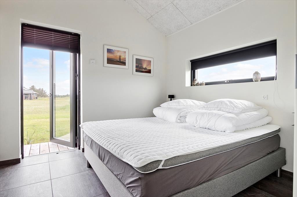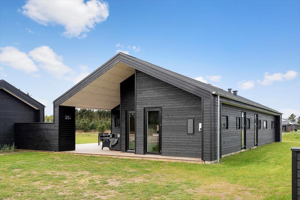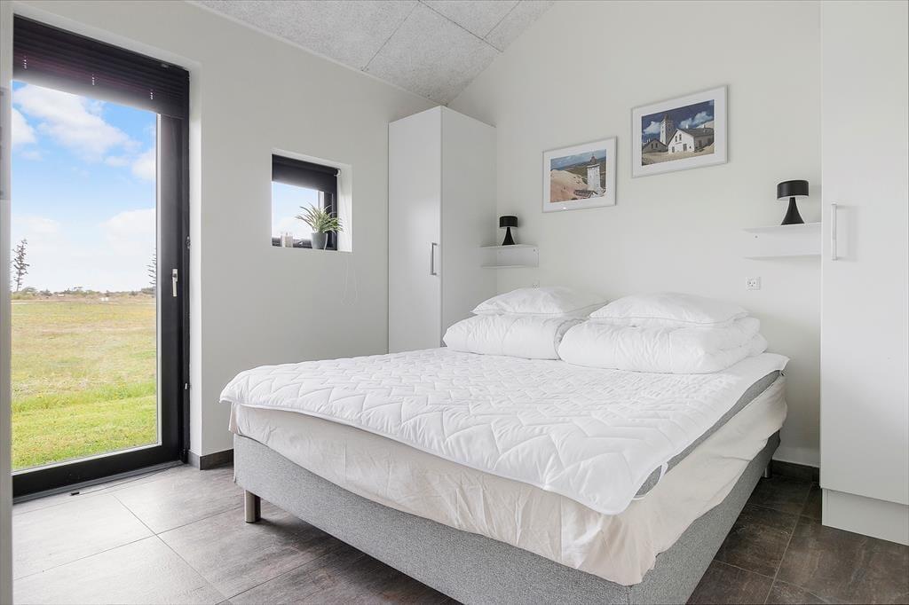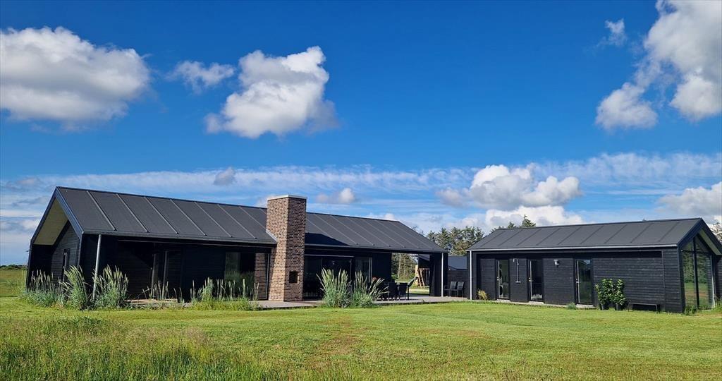 Huset er opført i 2023 og tager sig meget præsentabelt ud med sin stilsikre arkitektur, der sætter en elegant og eksklusiv ramme om ferieturen. Indenfor bliver du mødt af store, lyse rum, og der er en skøn atmosfære i hele huset – her er der virkelig kræset for detaljerne. I opholdsrummet er der loft til kip, som sammen med de store vinduespartier bidrager til oplevelsen af lys og luft. Det lækkert udstyrede køkken ligger i åben forbindelse med opholdsmiljøet, hvor de fælles måltider kan serveres ved langbordet. Der er også brændeovn og sofahjørne til indendørs hyggestunder efter aftensmaden. Huset indeholder derudover et aktivitetsrum, hvis du vil dyste med de andre i både pool og bordtennis. Endelig skal det nævnes, at huset har fire soveværelser og to badeværelser. Bemærk desuden, at der er luft til vand-varmepumpe, og at huset er billigt i forbrug.