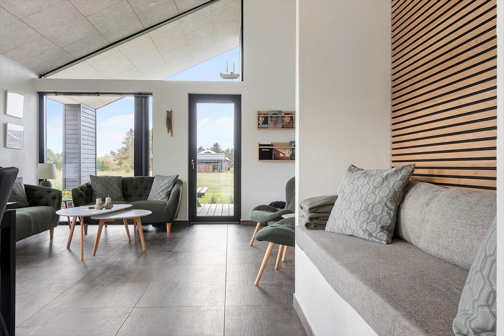 Hvis du er på udkig efter et moderne og rummeligt feriehus med masser af komfort, er dette flotte sommerhus i udkanten af Lønstrup måske det helt rigtige match. Huset har plads til 10 personer og ligger fredfyldt placeret omgivet af af skøn natur, og der er gåafstand ned til Vesterhavets bølger.