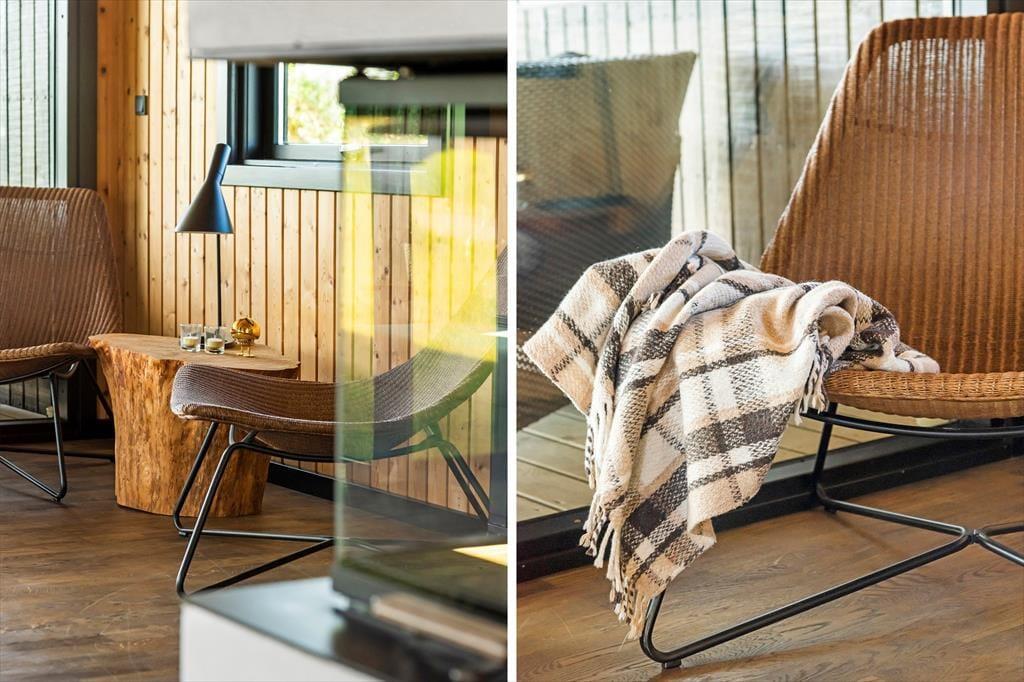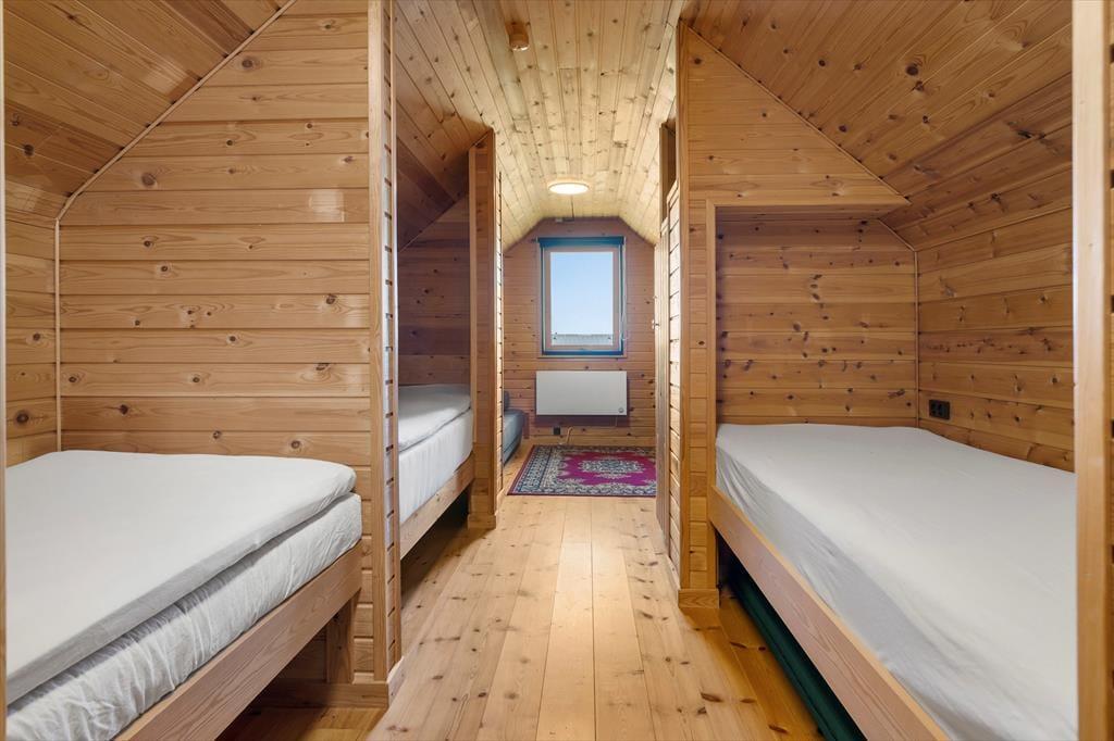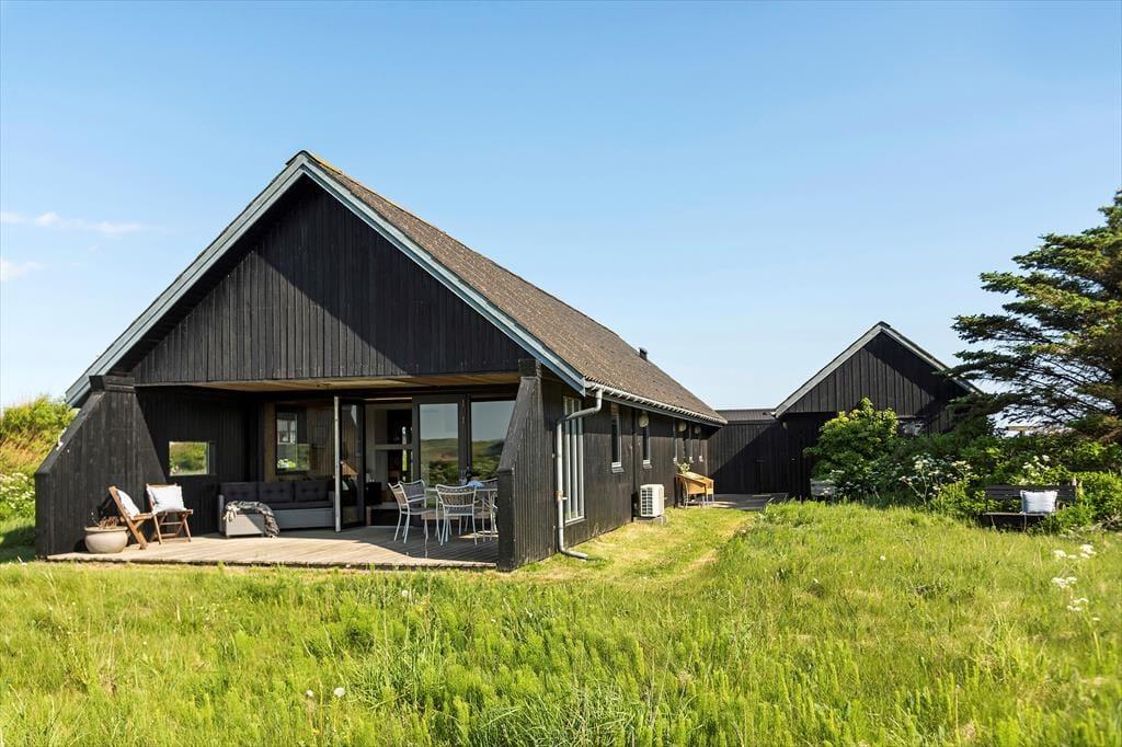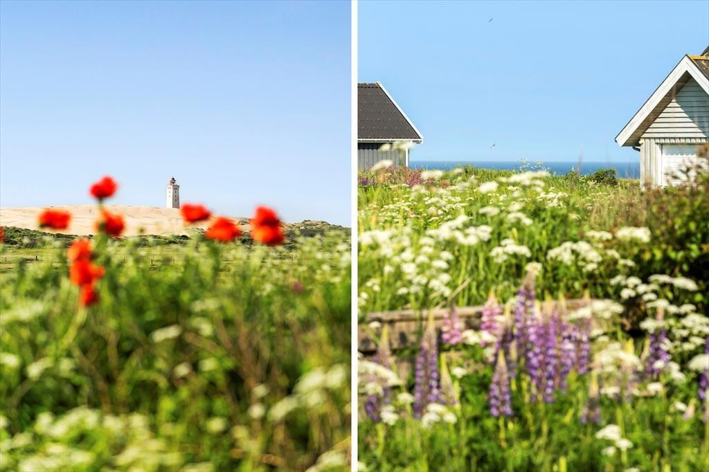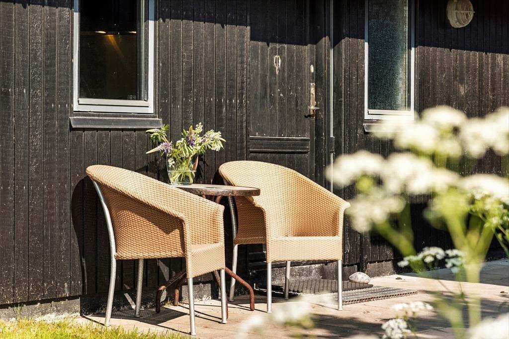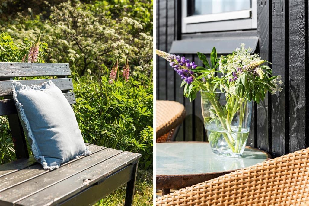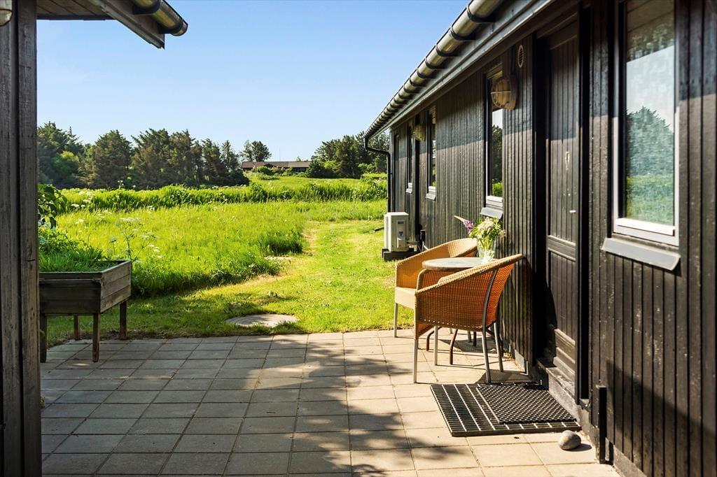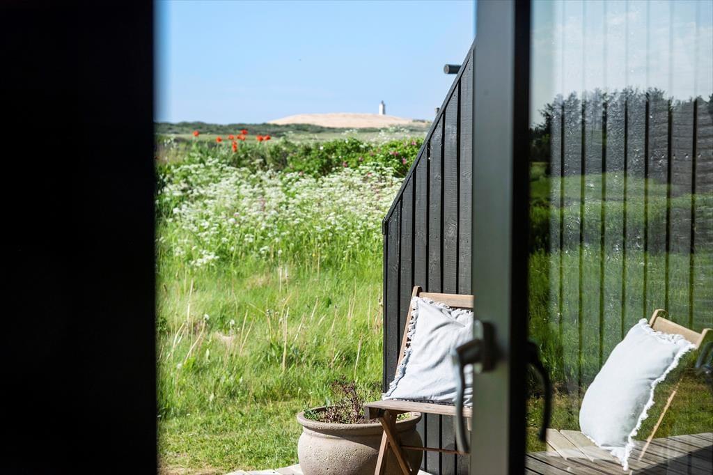 I forlængelse af stuen ligger en delvist overdækket terrasse, og det er den oplagte opholdsplads, hvis du vil nyde udsigten til Rubjerg Knude Fyr, mens du slikker sol og lytter til fuglesang. Mellem huset og tilbygningen venter der også en læfyldt solkrog, og der er også en bænk, hvis du til en afveksling vil sidde med tæerne i græsset og være lidt tættere på naturgrundens bevoksning. Om aftenen er der mulighed for at grille, så uanset om du er til bøffer, fisk eller majskolber, kan du glæde dig til at dække op under åben himmel og lade duften sprede sig.