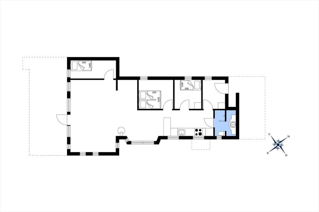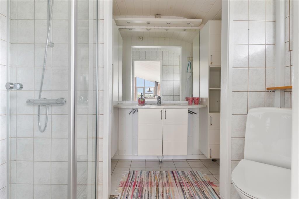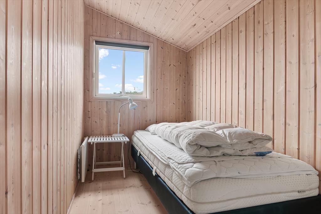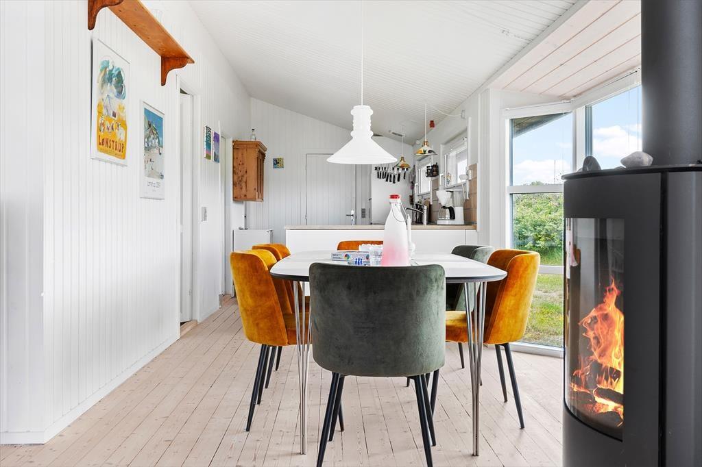 Indenfor i sommerhuset finder du en lys og moderne indretning med store vinduer, der giver en smuk udsigt til både naturen og havet. Huset har tre soveværelser: to med enkeltsenge og ét med en dobbeltseng. Stuen er rummelig og kombineret med køkkenet, som er fuldt udstyret, så du nemt kan lave mad. En brændeovn skaber hygge på kølige dage, og huset har alle nødvendige faciliteter som Wi-Fi, TV og varmepumpe for ekstra komfort året rundt.