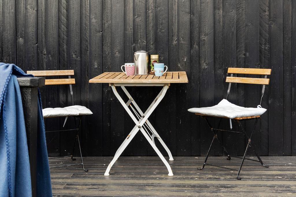 Udenfor finder du en stor terrasse med havemøbler, hvor du kan slappe af og nyde udsigten over havet. Terrassen er perfekt til udendørs måltider og hyggelige sommeraftener. Huset er omgivet af fredfyldt natur med indlandsklitterne i baggrunden. Med kun 150 meter til havet kan du nemt tage en kort gåtur og nyde det smukke Vesterhav