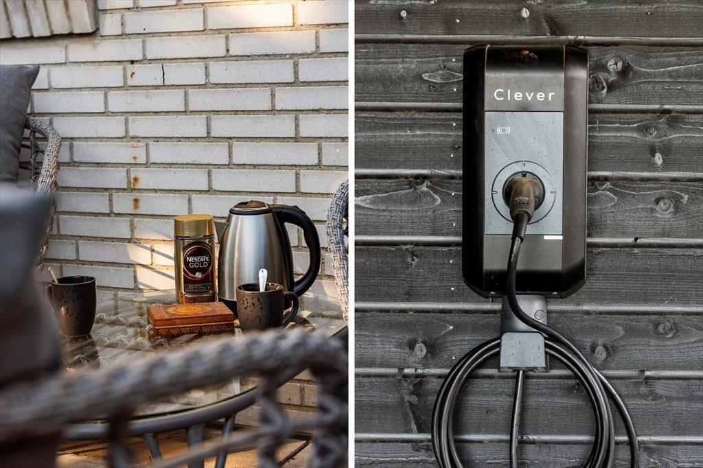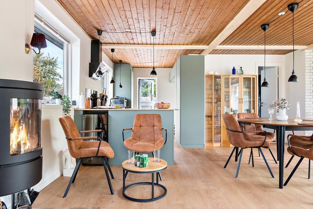Inde bag den hvide murstensfacade er der godt at være, for alle rum har en god størrelse og en rar atmosfære. De to soveværelser indbyder til, at du og dine kære kan få en god nattesøvn, og badeværelset er udstyret med rainshower, så I kan få et dejligt morgenbad, når det er tid til at komme ud af dynerne. I det moderne køkken er der masser af plads til at brygge kaffe, riste brød og finde lækkerier frem fra køleskabet, og spisebordet inviterer til, at I bliver længe siddende for at spise og hyggesnakke. I stuen kan du tænde op i brændeovnen, hvis vejret og årstiden lægger op til det, og når solen viser sig på himlen, gør havedørene det nemt at smutte ud i det fri.
