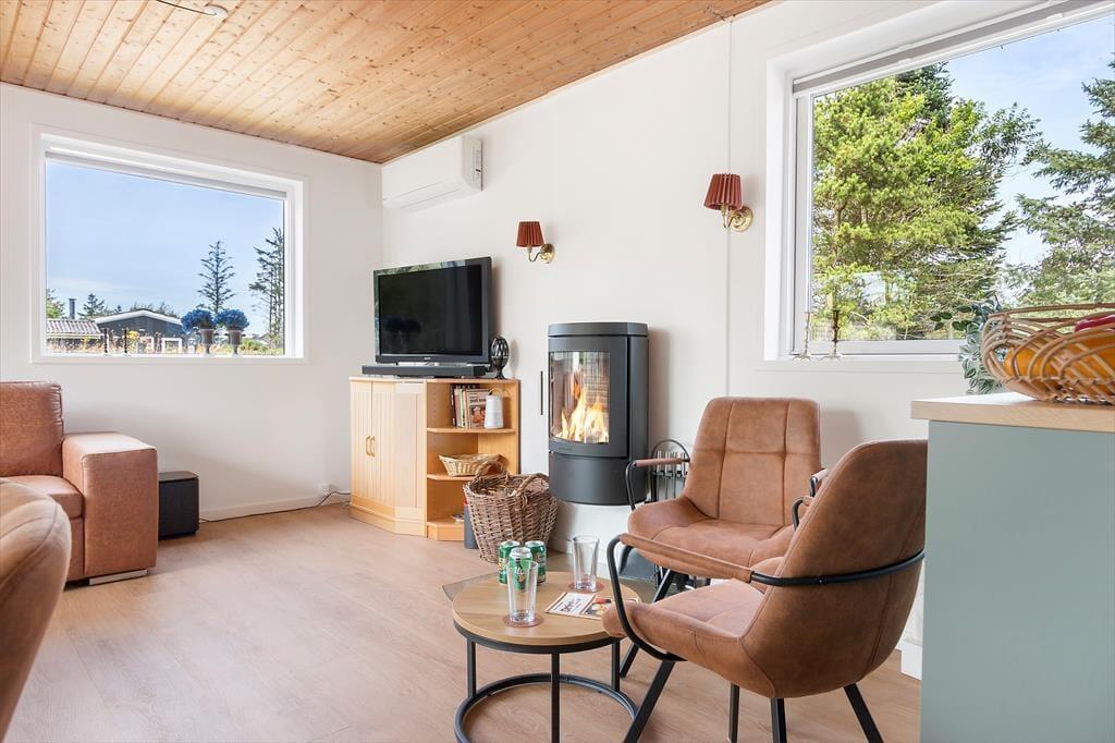 Sommerhuset ligger på den lille Stenurtvej i et lukket område, så du har fred og ro omkring dig, og samtidig er det nemt at komme rundt i Lønstrup og omegn. Den korte afstand ind til bymidten kan fint klares til fods, hvis du vil ind for at gå på café eller kigge i de mange gallerier og butikker med kunsthåndværk. Du kommer også nemt frem til Lønstrup Klint såvel som stranden, når du vil beundre udsigten over Vesterhavet eller få en dukkert i de salte bølger. Derudover tager det ikke meget mere end fem minutter at køre til Rubjerg Knude, hvis du vil besøge det spektakulære klitlandskab og gå til tops i det flotte fyrtårn.