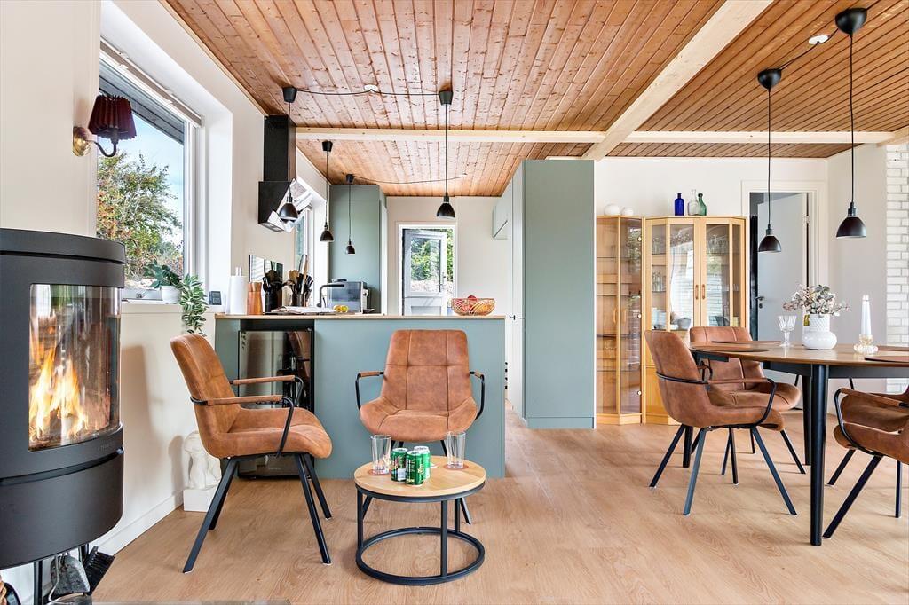 Sommerhus i Lønstrup Strand og By, Nordjylland, med plads til 6 voksne og 1 husdyr. Der er en hyggelig indretning med bl.a. brændeovn, og du finder desuden vaskemaskine, opvaskemaskine og tørretumbler i boligen.