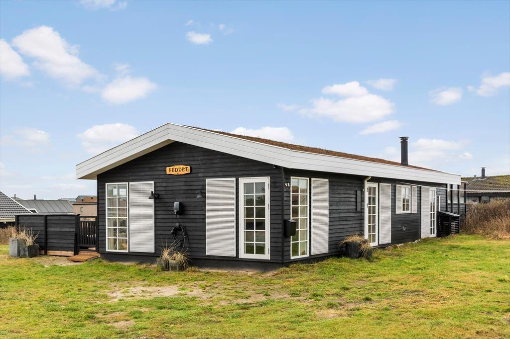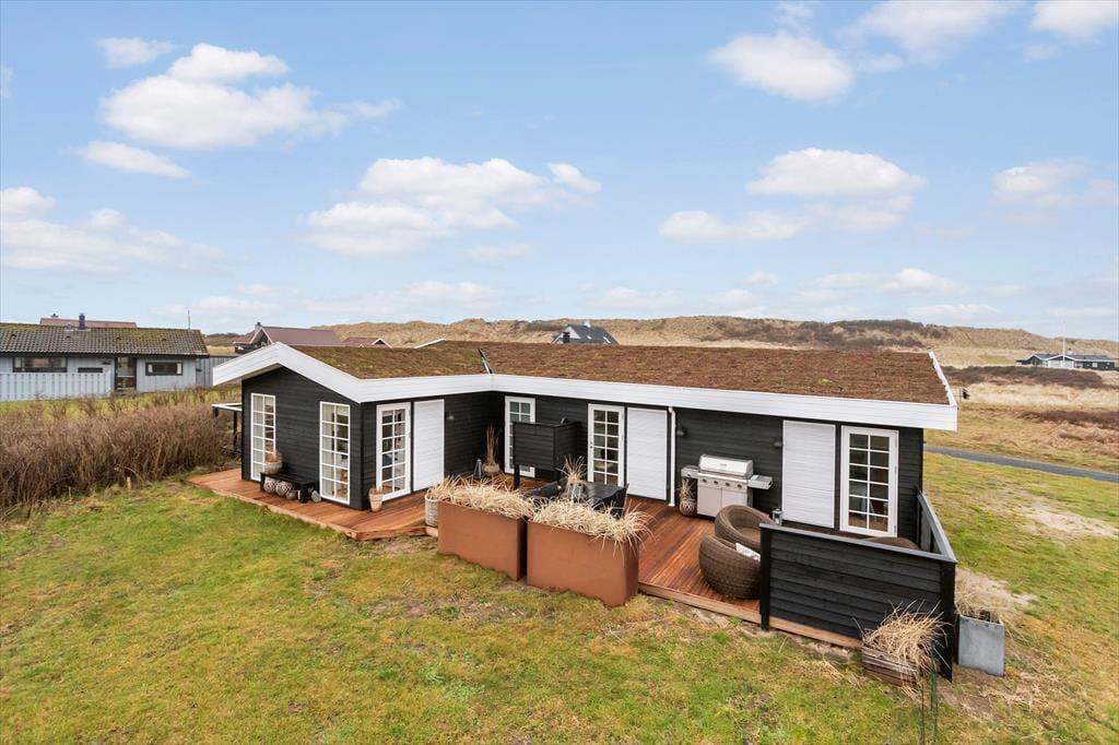 Det velanlagte udemiljø giver masser af muligheder for at nyde de lange feriedage under åben himmel. Den læ fyldte terrasse er et sandt fristed, hvor du kan nyde dagens første kop kaffe, mærke solen varme eller samles til en stemningsfuld middag i aftensolen. Udsigten over havet skaber en beroligende kulisse, mens du slapper af i de komfortable loungemøbler. Haven indbyder til leg og afslapning, og du er kun en kort gåtur fra stranden, hvor du kan dyppe tæerne i det friske vesterhav eller tage en forfriskende dukkert.