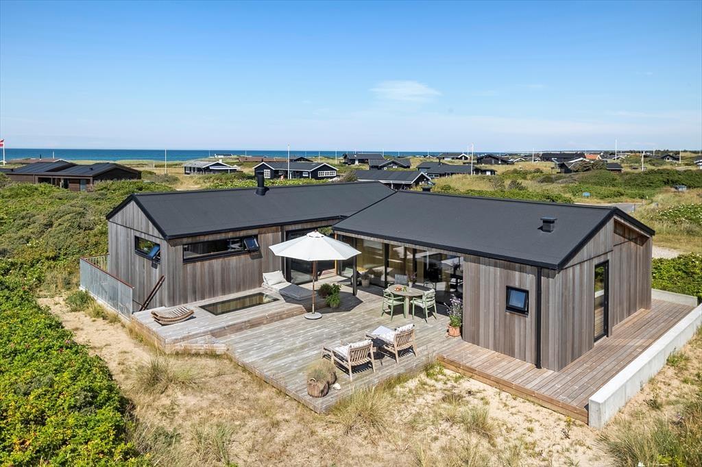 Sommerhusets placering er noget helt for sig selv, og de udendørs omgivelser er skabt til ren afslapning. Fra terrassen kan du nyde det smukke havblik, mens du sidder behageligt i eksklusive loungemøbler. Den korte afstand til stranden gør det let at tage en morgendukkert eller en aftentur langs vandet, mens solen går ned i horisonten. Træd ud i den friske luft, nyd en kop kaffe i morgensolen eller tænd op i grillen til en hyggelig middag med familien. Her får du mulighed for at opleve det bedste af Vesterhavets skiftende stemninger og finde ro i de naturskønne omgivelser.
