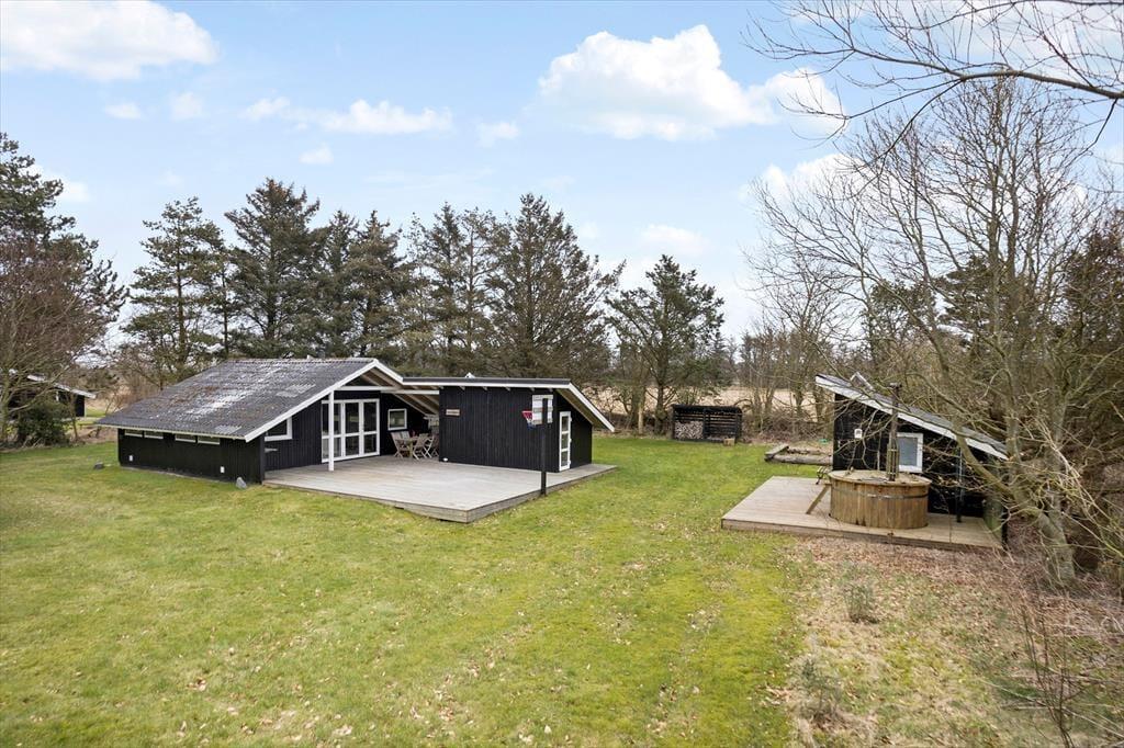 Udelivet kan nydes i fulde drag takket være de rummelige og velindrettede udearealer. Den store, frodige have giver masser af plads til leg, boldspil og afslapning i det grønne. Terrassen strækker sig rundt om huset og byder på solrige siddepladser hele dagen. Skal feriemiddagen have lidt ekstra hygge, kan I samles om bålpladsen, hvor I kan riste skumfiduser og fortælle historier under stjernehimlen.