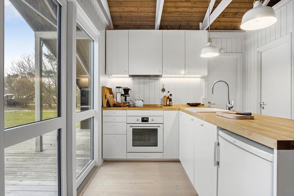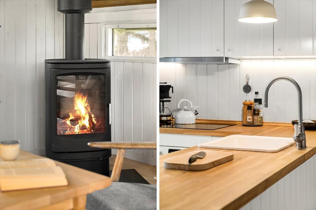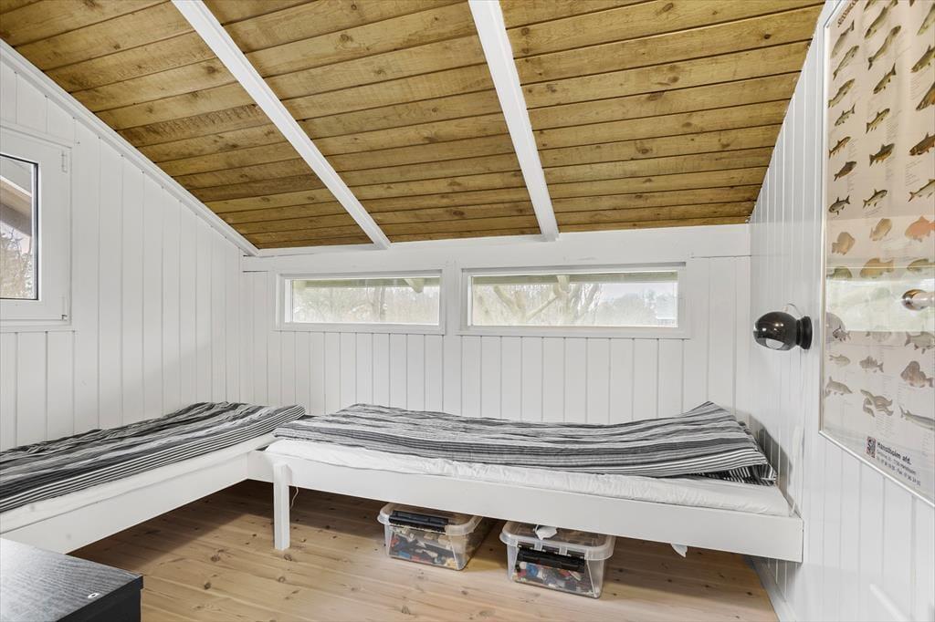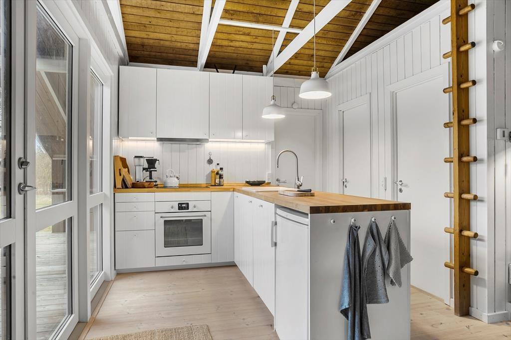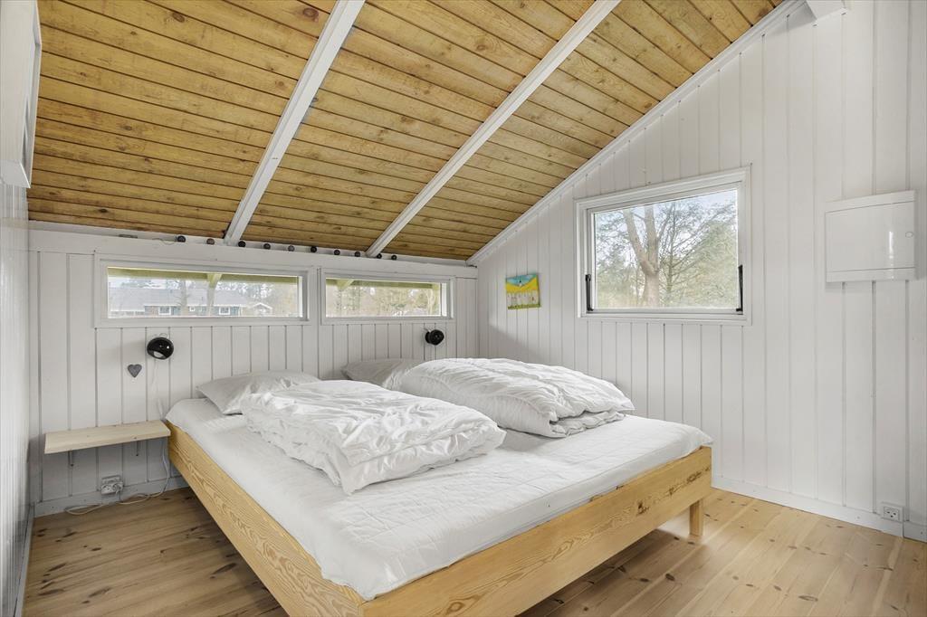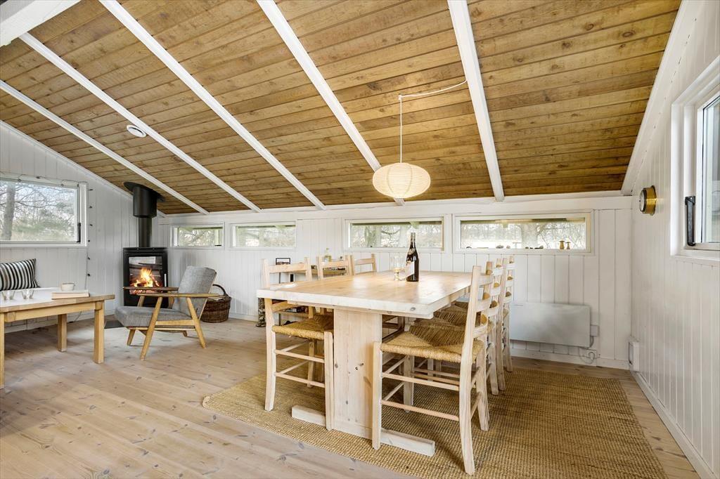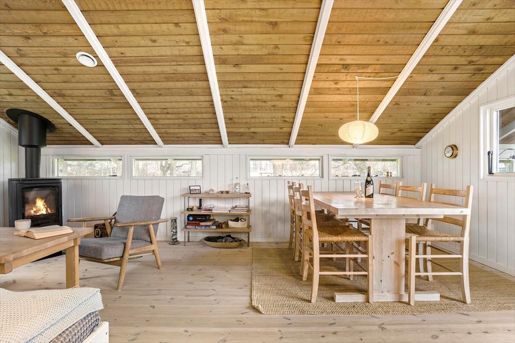 Inden døre bliver du budt velkommen af en hyggelig og hjemlig sommerhusstemning. Her er der loft til kip, træbeklædte vægge og et indbydende opholdsrum, hvor stue og køkken ligger i åben forbindelse. Brændeovnen skaber en dejlig varme på de køligere dage, og de store vinduer lukker masser af naturligt lys ind, så du får en fornemmelse af at have naturen helt tæt på. De bløde sofaer indbyder til afslapning, mens spisebordet samler familien til hyggelige måltider og lange samtaler. Sommerhuset har flere gode soveværelser, så alle kan finde sig godt til rette efter en dag med feriesysler.