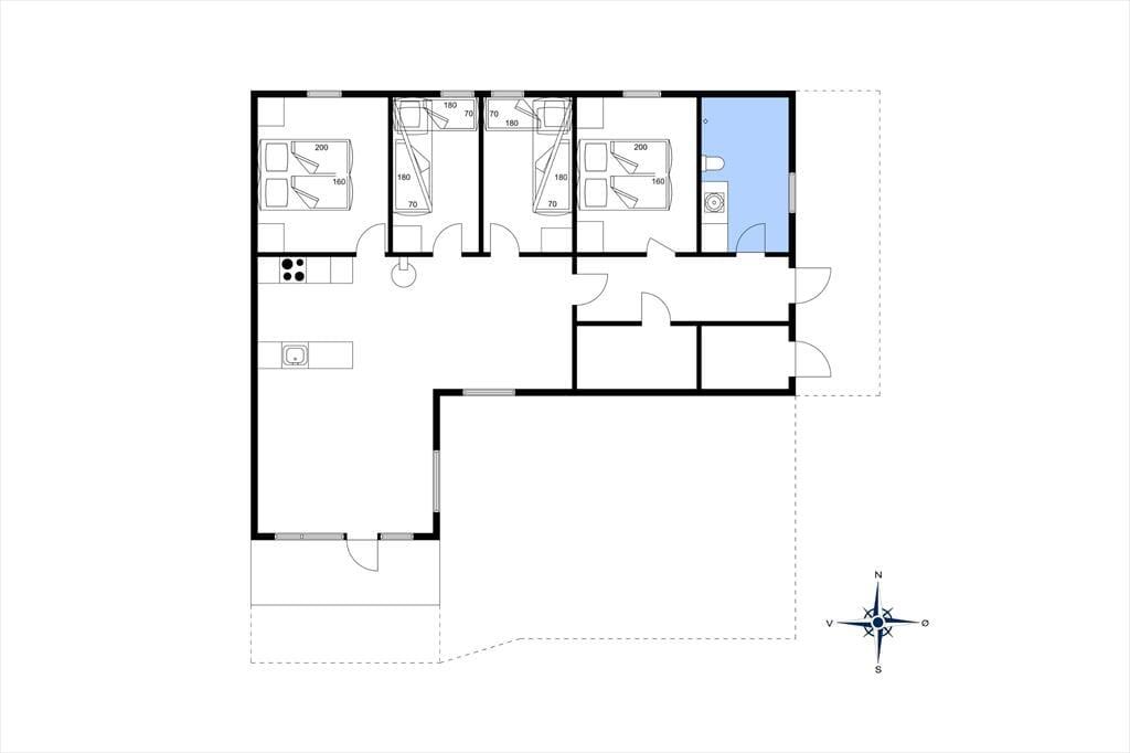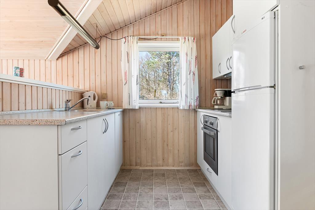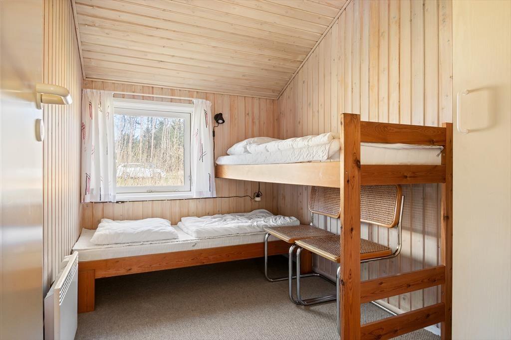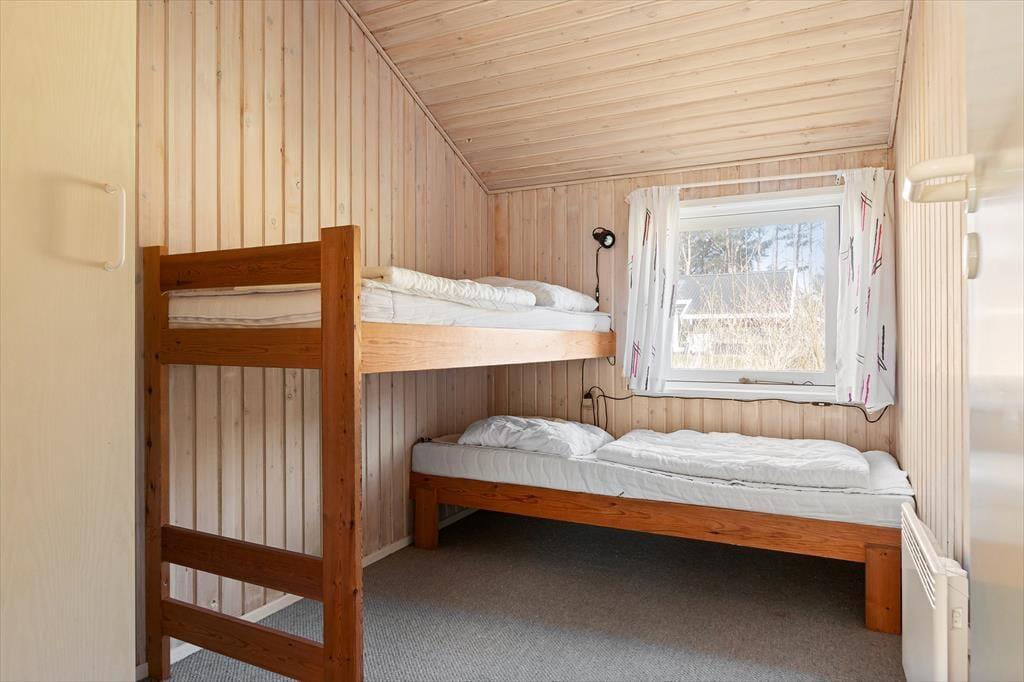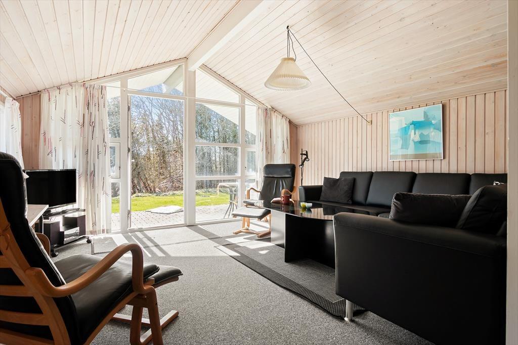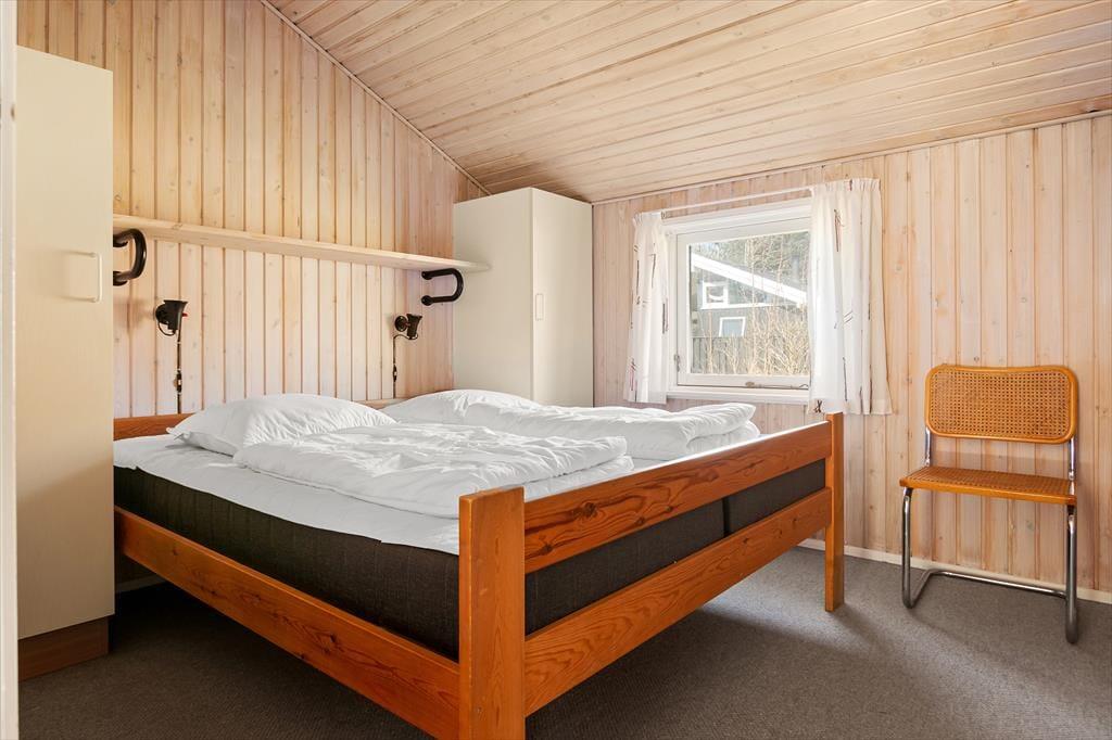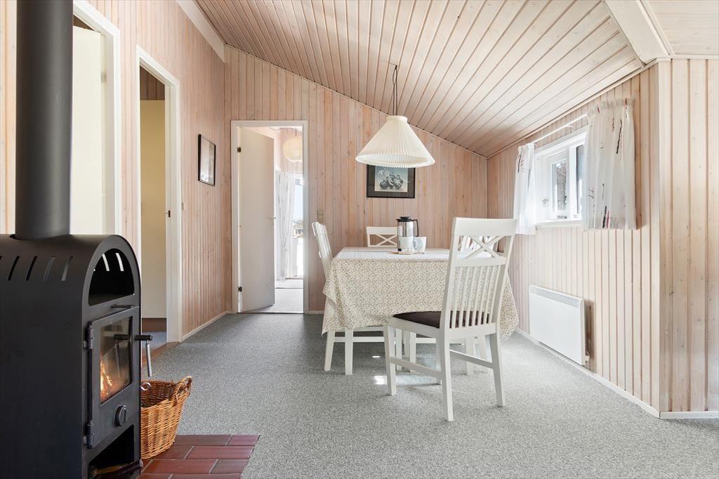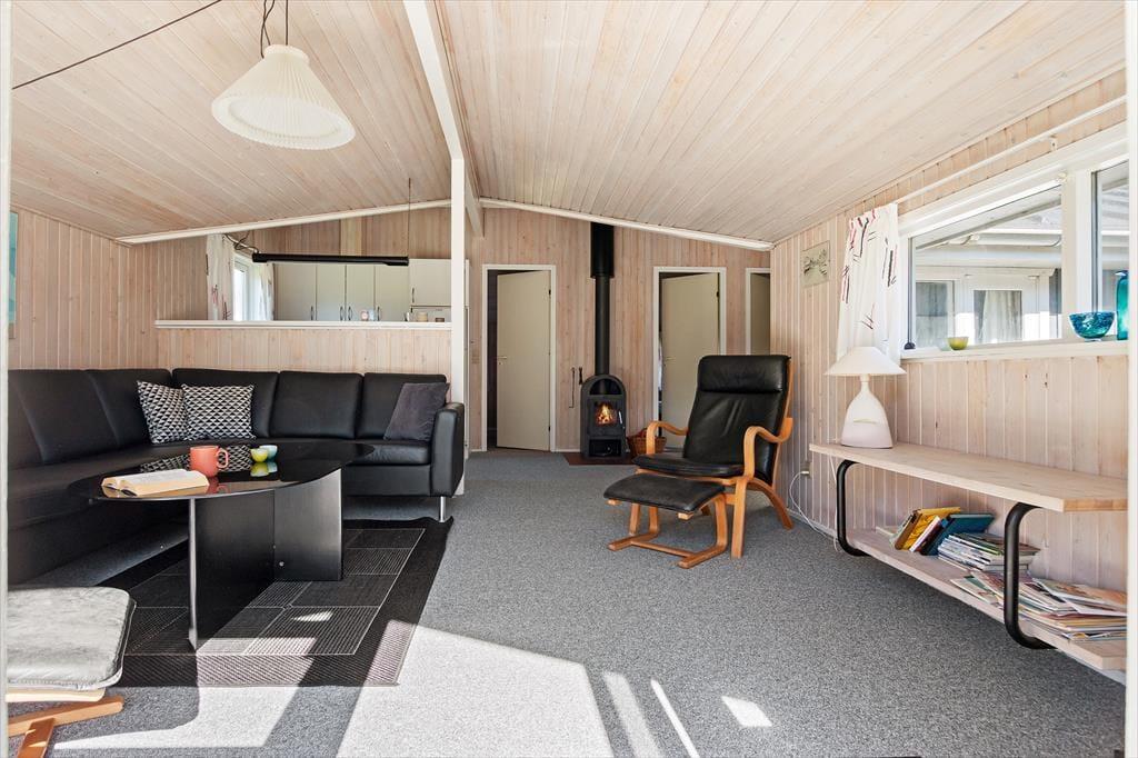 Så snart du træder indenfor i sommerhuset, bliver du mødt af en varm og imødekommende stemning, der indbyder til afslapning og kvalitetstid. Det lyse opholdsrum med loft til kip og synlige bjælker skaber en behagelig rumfornemmelse, hvor lyset strømmer ind og giver energi til dagen. Her er stue og køkken smukt forenet i et åbent og indbydende miljø, der gør det let at være sammen – uanset om du står ved gryderne eller har slået dig ned i sofaen. Brændeovnen i stuen tilfører både varme og en autentisk feriestemning, og når flammerne knitrer stille, er det næsten umuligt ikke at falde helt ned i gear. De komfortable møbler indbyder til lange, langsomme aftener med spil, samtaler eller måske en god film. Sommerhuset rummer fire indbydende soveværelser med bløde senge og rolig stemning, og efter en lang dag i frisk luft kan du forkæle dig selv med en tur i husets sauna, der ligger lige ved badeværelset – et oplagt sted at lade skuldrene falde og sanserne finde ro.