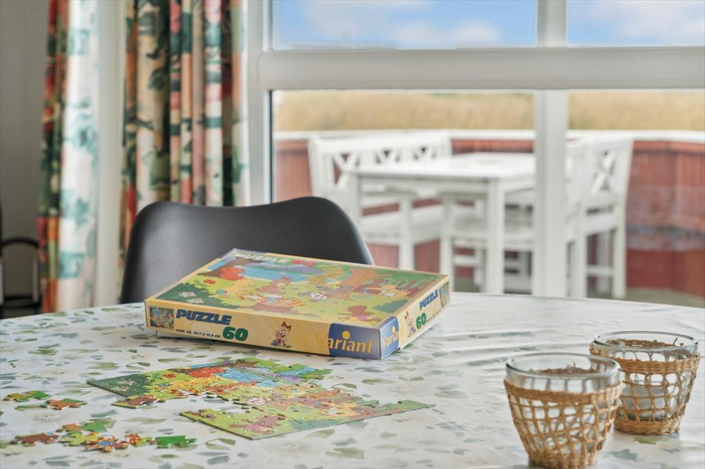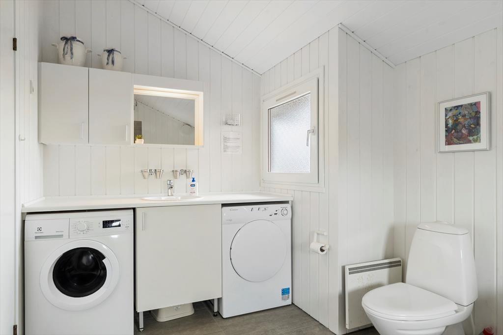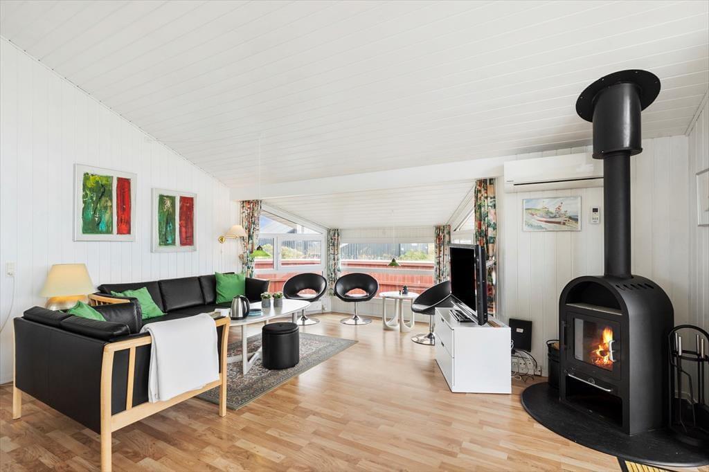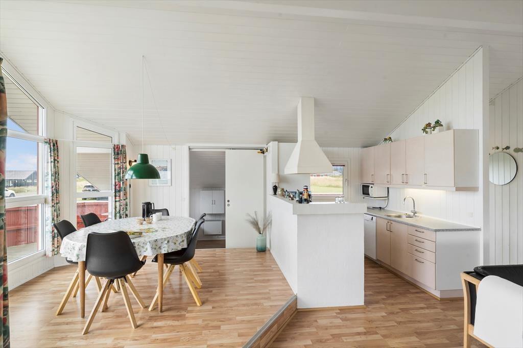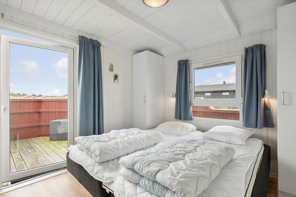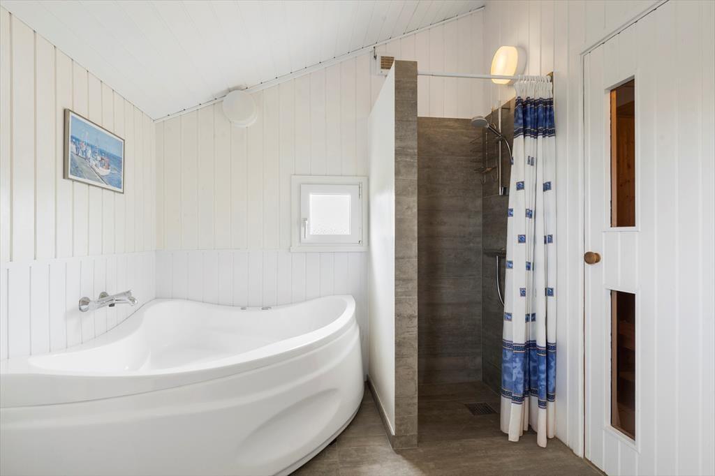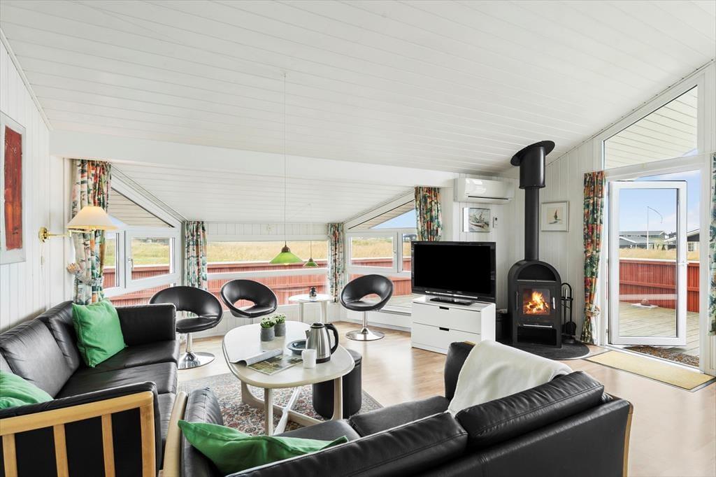 Når du træder ind i huset, bliver du mødt af en lys og indbydende atmosfære, hvor det er nemt at føle sig hjemme fra første øjeblik. Den åbne opholdsafdeling med stue og køkken i ét inviterer til nærvær og hyggestunder, og på kølige dage skruer du bare op for varmen og stemningen med brændeovnens knitren i baggrunden. Indretningen er præget af lyse farver og venlige materialer, der gør rummet rart at opholde sig i – uanset om I spiller spil ved spisebordet, snakker over madlavningen eller slapper af i sofaen. Badeværelserne er moderne og indbydende, og det ene byder på både sauna og spabad – et herligt sted at finde roen efter en lang travetur ved havet. Huset rummer komfortable sovepladser og er indrettet med fokus på både funktionalitet og feriestemning, så det er let at trække sig tilbage, når dagen går på hæld.