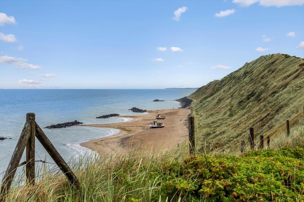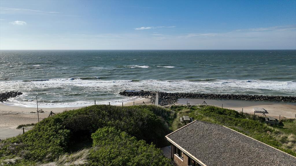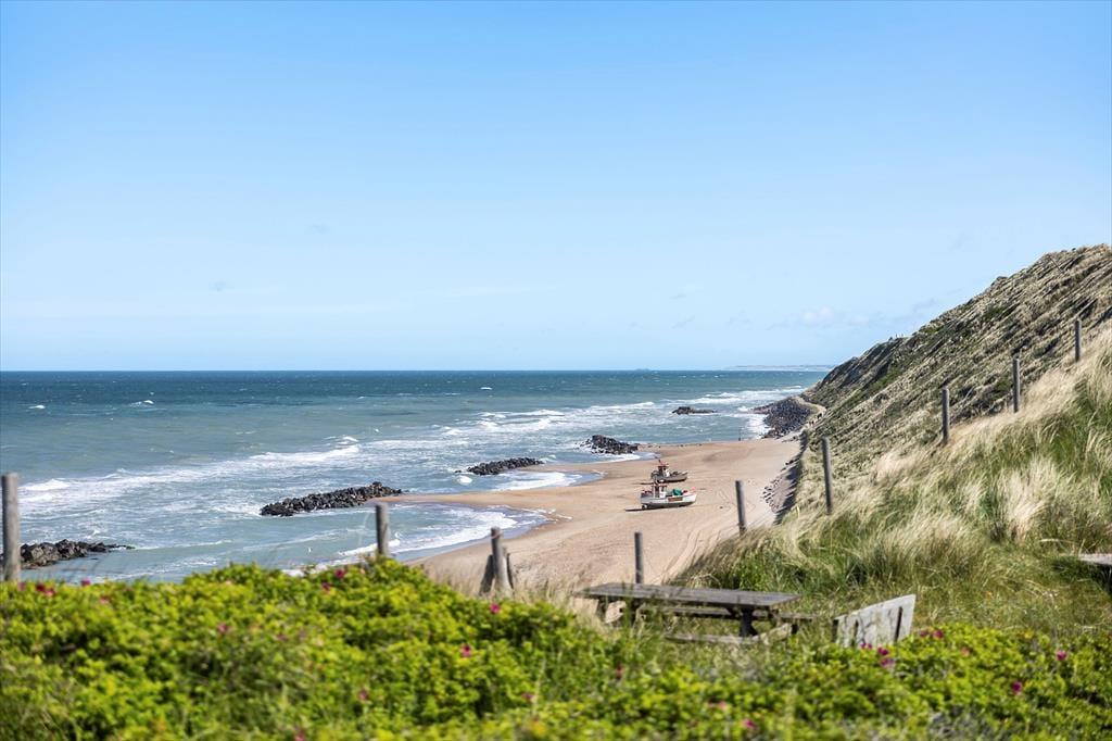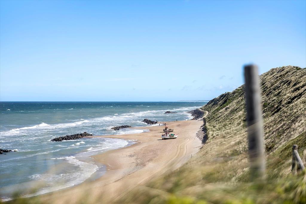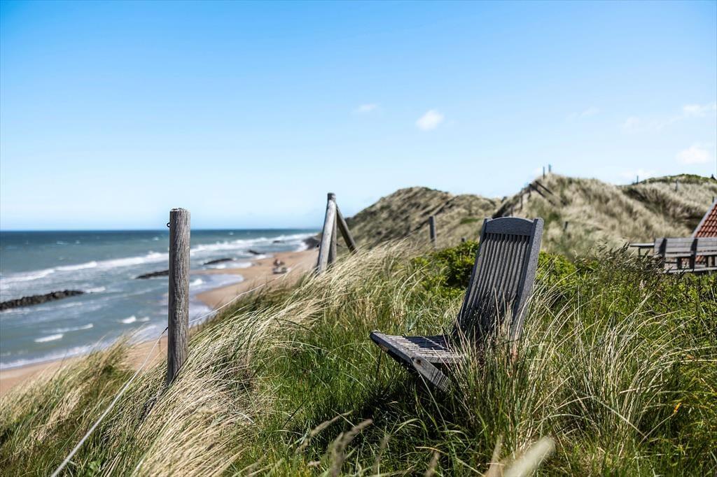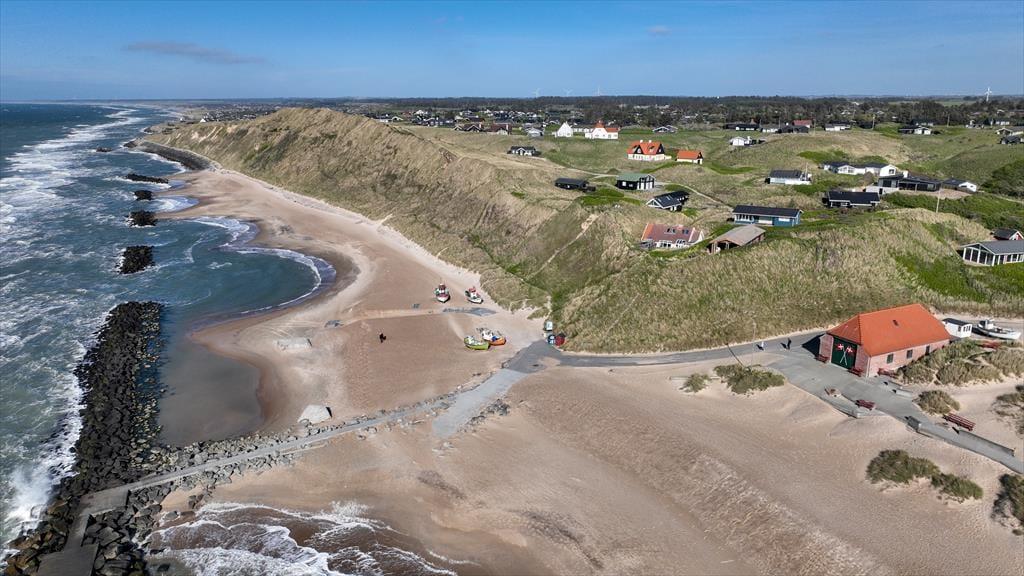 Udenfor venter endnu flere unikke oplevelser, når du træder ud i sommerhusets direkte naturskønne omgivelser. Den rummelige terrasse åbner op mod en betagende panoramaudsigt, hvor havets bølger møder den endeløse kyststrækning. Her kan du nyde morgenkaffen til lyden af de blide bølgeskvulp og lade tankerne flyve frit, mens du betragter solens spil over vandet. Adgang til husets private område sker via en charmerende sti, der snor sig gennem de autentiske klitter – en sand fornøjelse for både sjæl og krop. Den frie og ægte natur inviterer til lange gåture og stille øjeblikke med fordybelse i det åbne landskab. Om aftenen bringer den blide brise og den bløde skær fra solnedgangen en følelse af velvære og afslapning, som gør det let at glemme hverdagens travlhed og bare nyde livets små glæder.