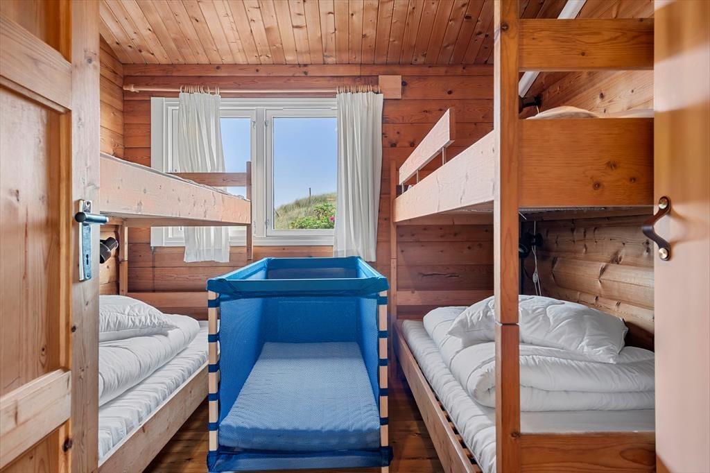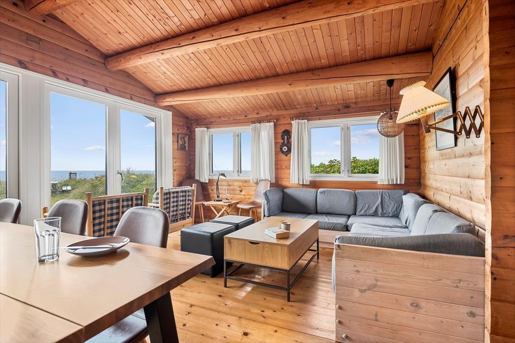 Når du træder indenfor i sommerhuset, mødes du af en harmonisk blanding af moderne design og naturlige elementer, som tilsammen skaber en indbydende atmosfære. Her er lyset i centrum – store vinduespartier lader solstrålerne danse ind i rummene og forvandler de indrettede stuer til et levende maleri af farver og skygger. Det stilfulde interiør er omhyggeligt planlagt, så både moderne bekvemmeligheder og en ærlig fornemmelse af hjemlig hygge får plads. Indretningen vækker sanserne med varme toner, bløde tekstiler og komfortable møbler, og med to flotte badeværelser er tanken om afslappende stunder efter en lang dag ved strand og klit nemt at forestille sig.