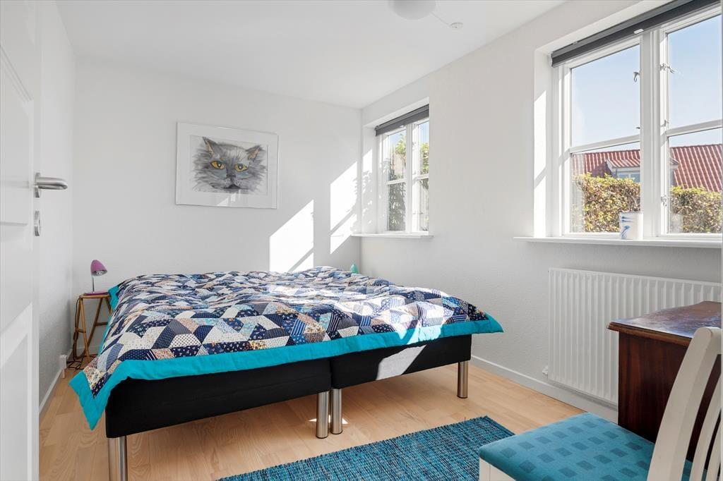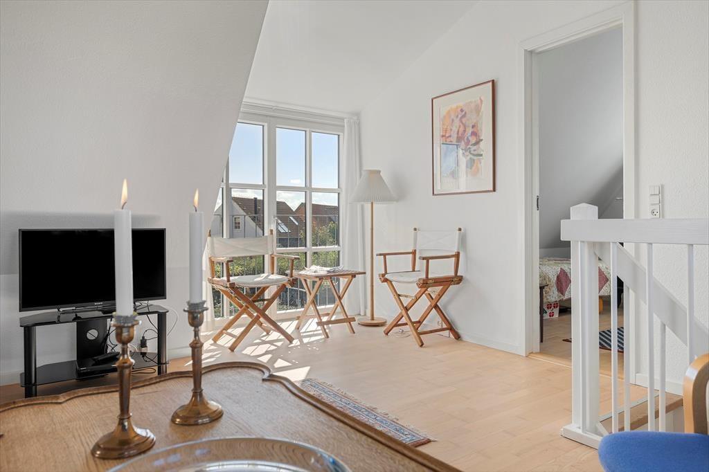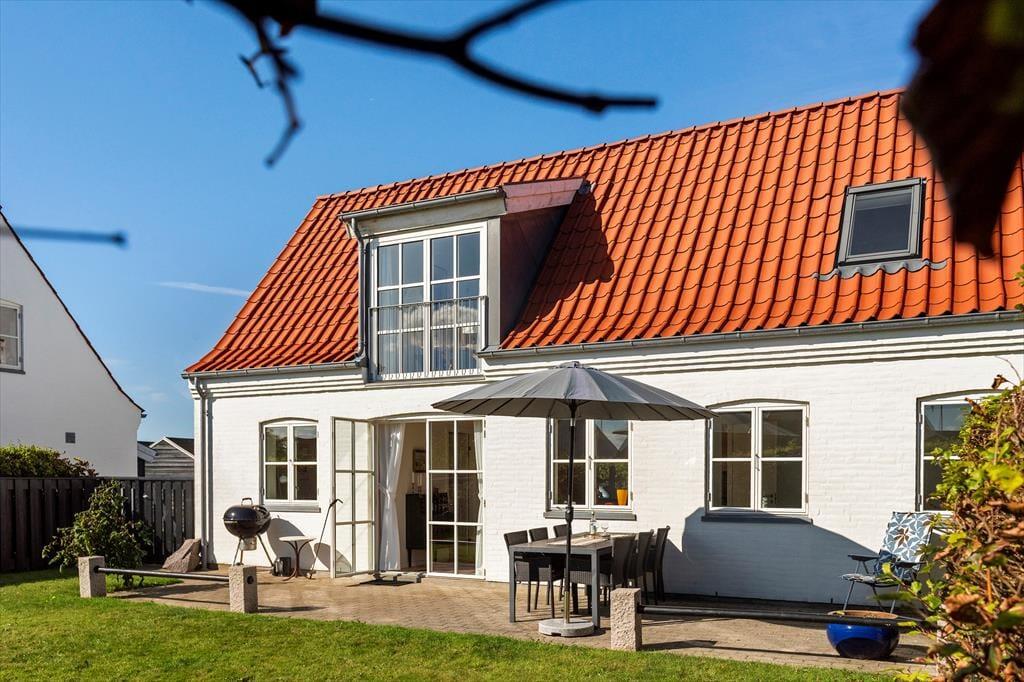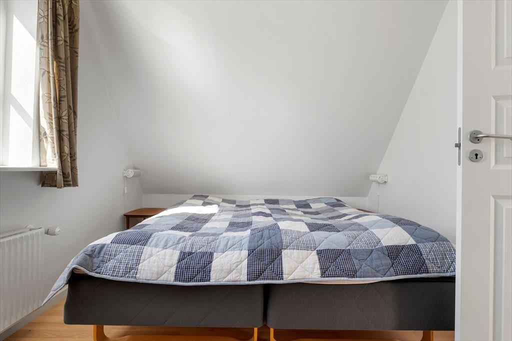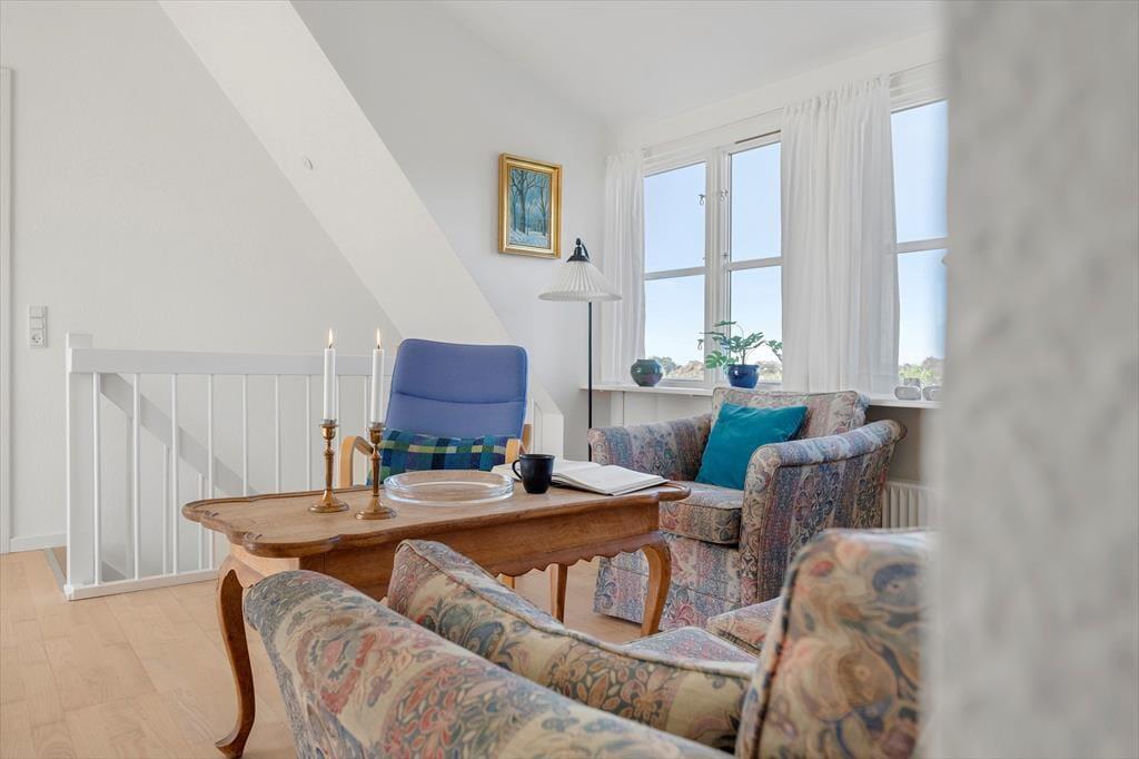 Inden døre møder du en indretning, der på én gang føles enkel og indbydende. Rækkehuset er i to plan, hvilket giver en rar fornemmelse af plads og privatliv. I stueplan ligger opholdsrummet, hvor køkken og stue bindes sammen på en måde, der gør det nemt at være sammen – også når der kokkereres. Lyse vægge og et pænt, tidløst interiør skaber en let og hjemlig atmosfære, der straks indbyder til afslapning. Efter en dag ved stranden kan du sætte dig til rette i sofaen med en bog eller måske et spil med familien, mens du lader feriestemningen sænke sig. Huset rummer et stort og velholdt badeværelse, hvor du nemt kan skylle dagens saltvand og sand af dig, inden hyggen fortsætter indenfor.