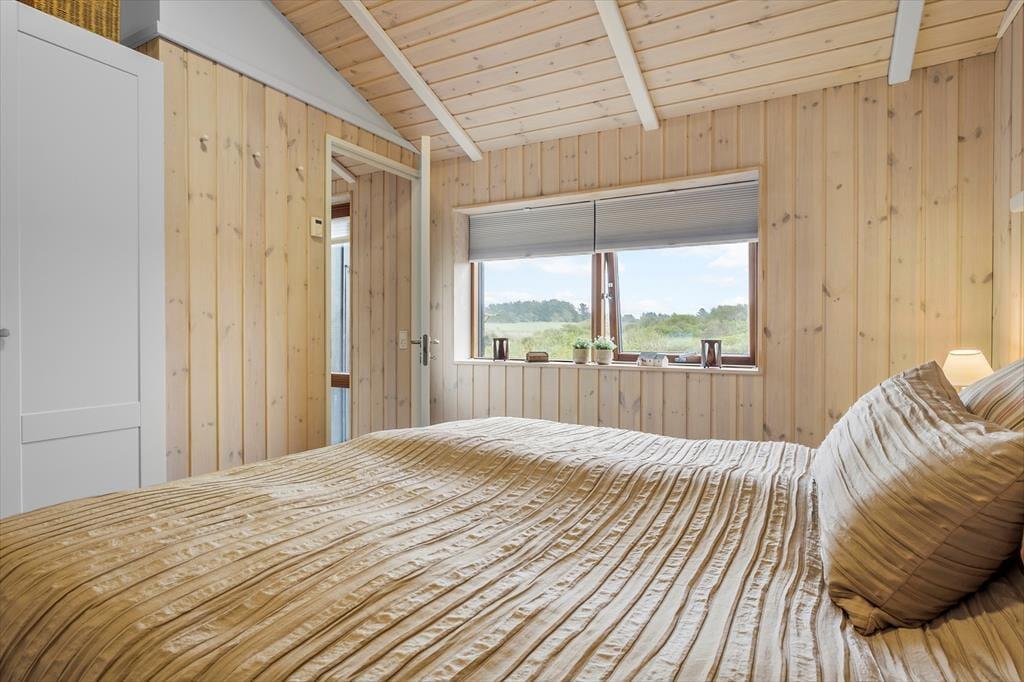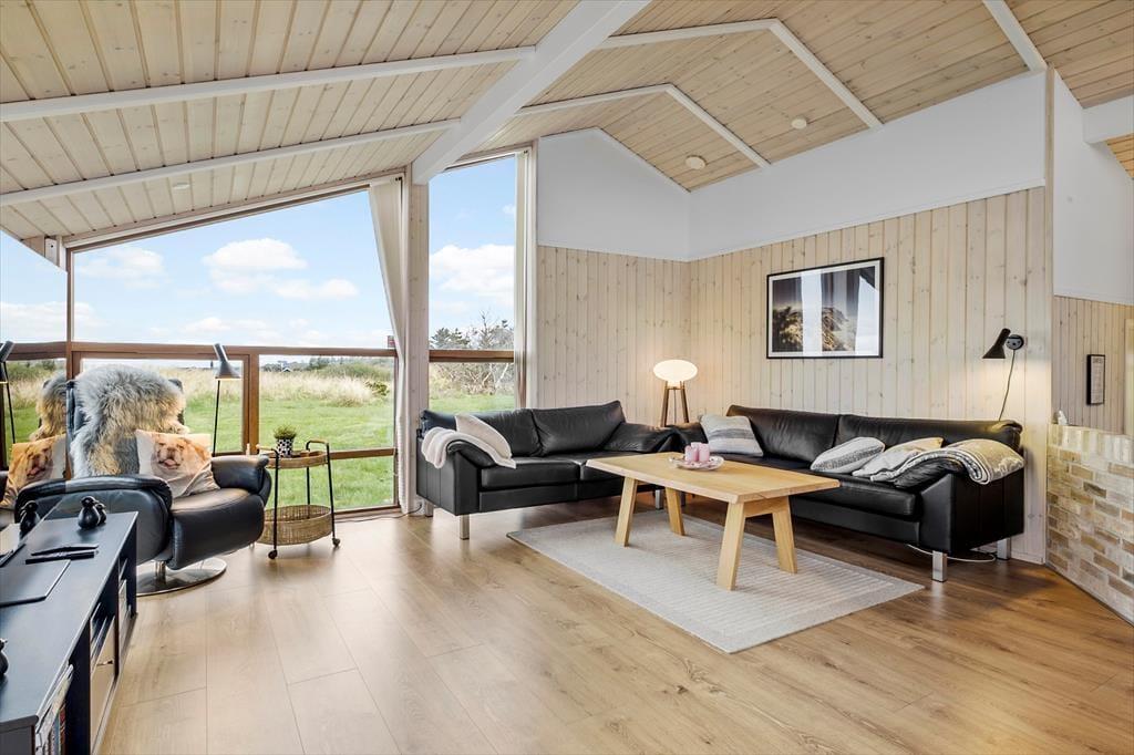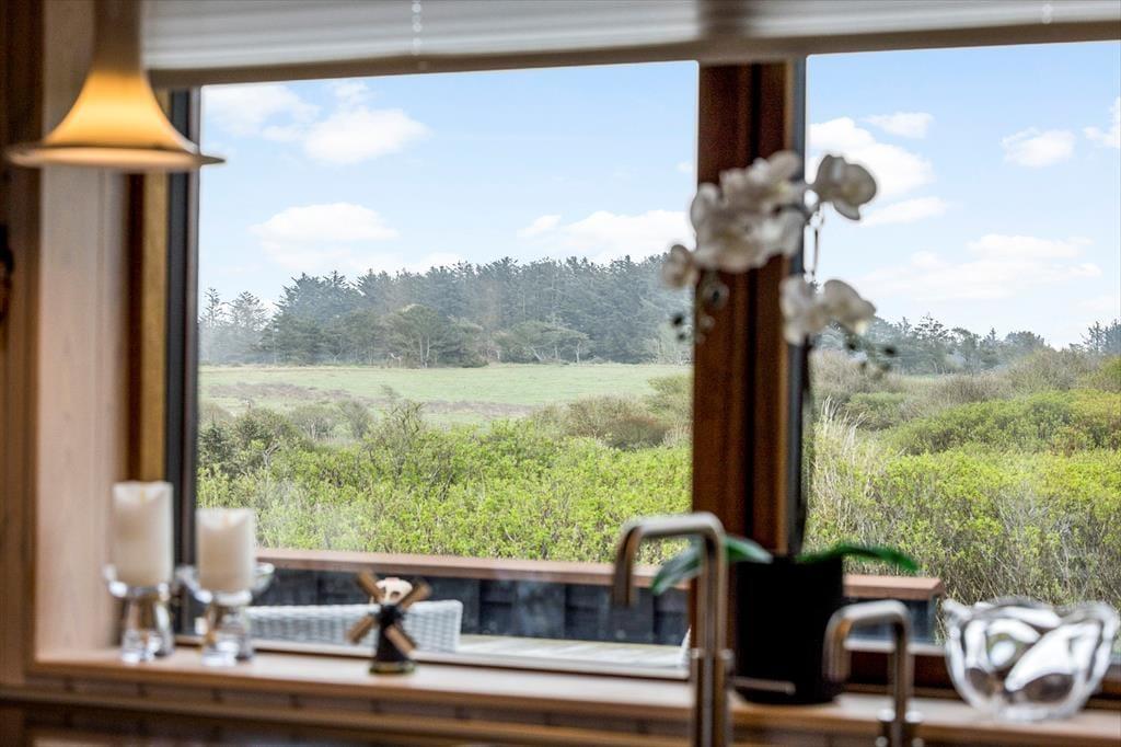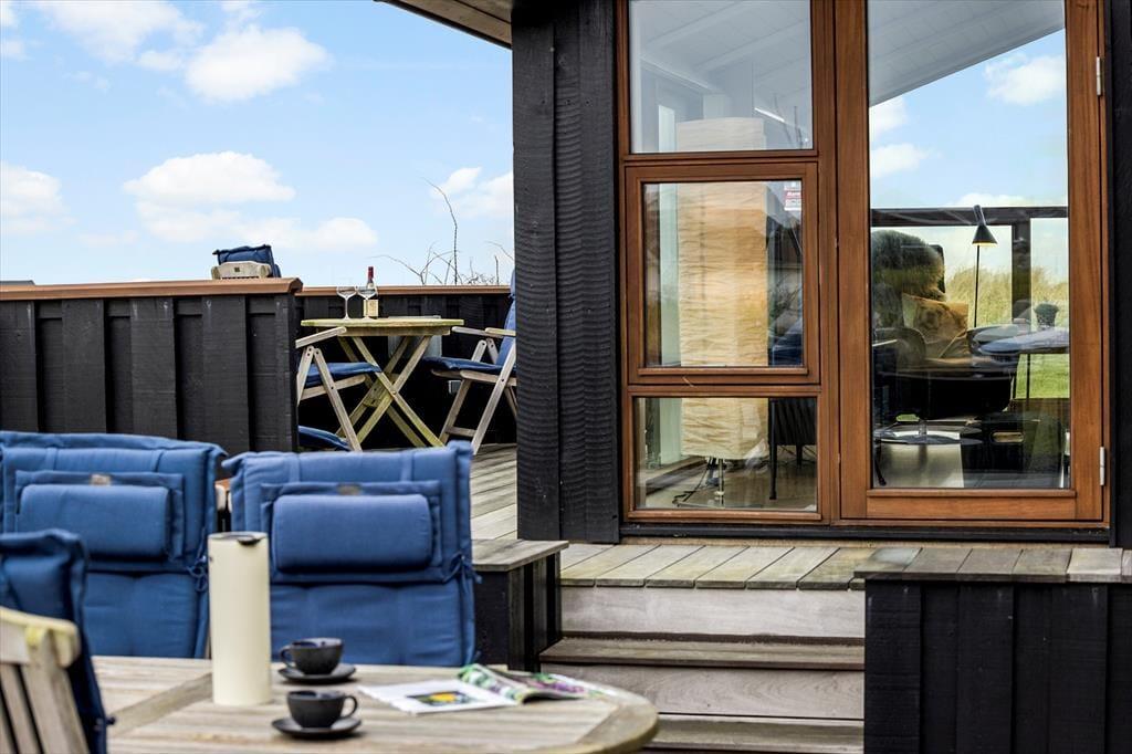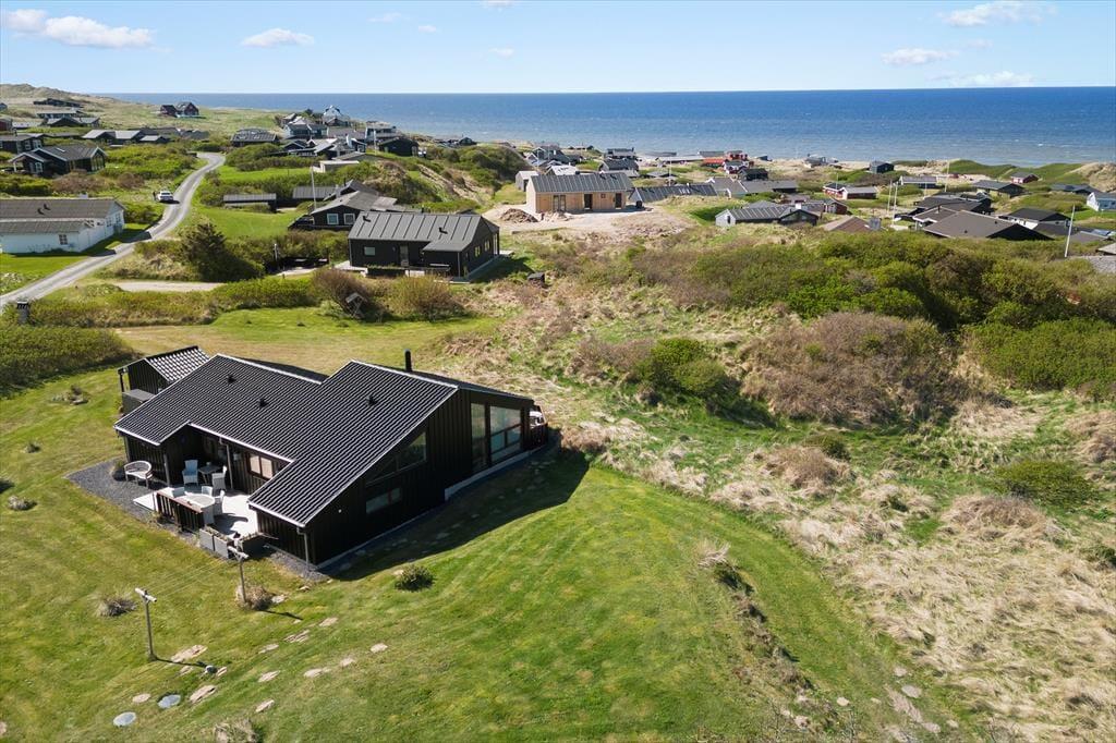 Udenfor venter et skønt terrassemiljø, som næsten føles som en naturlig forlængelse af huset. Her er anlagt flere terrasser i forskellige niveauer, og det giver dig mulighed for at finde præcis det sted, der passer til dagens stemning – om det er morgensolen på den ene side af huset eller den gyldne aftensol på den anden. Og så er der udsigten: Fra den høje beliggenhed kan du skue ud over det åbne landskab og det dybblå Vesterhav, der skifter udtryk med vejret og lyset. Terrasserne indbyder til afslappede feriedage med bøger, grillhygge og gode samtaler, og på stille dage kan du høre fuglene i klitterne og mærke vinden kærtegne huden. Det er den slags dage, der sætter sig fast i hukommelsen som små glimt af ferielykke.