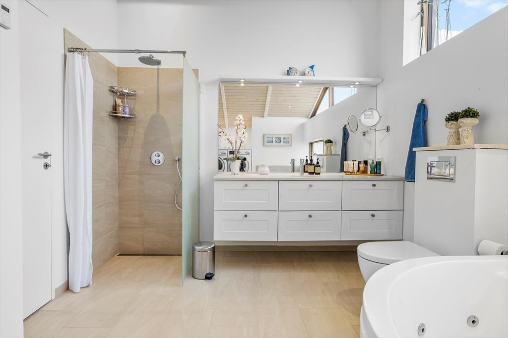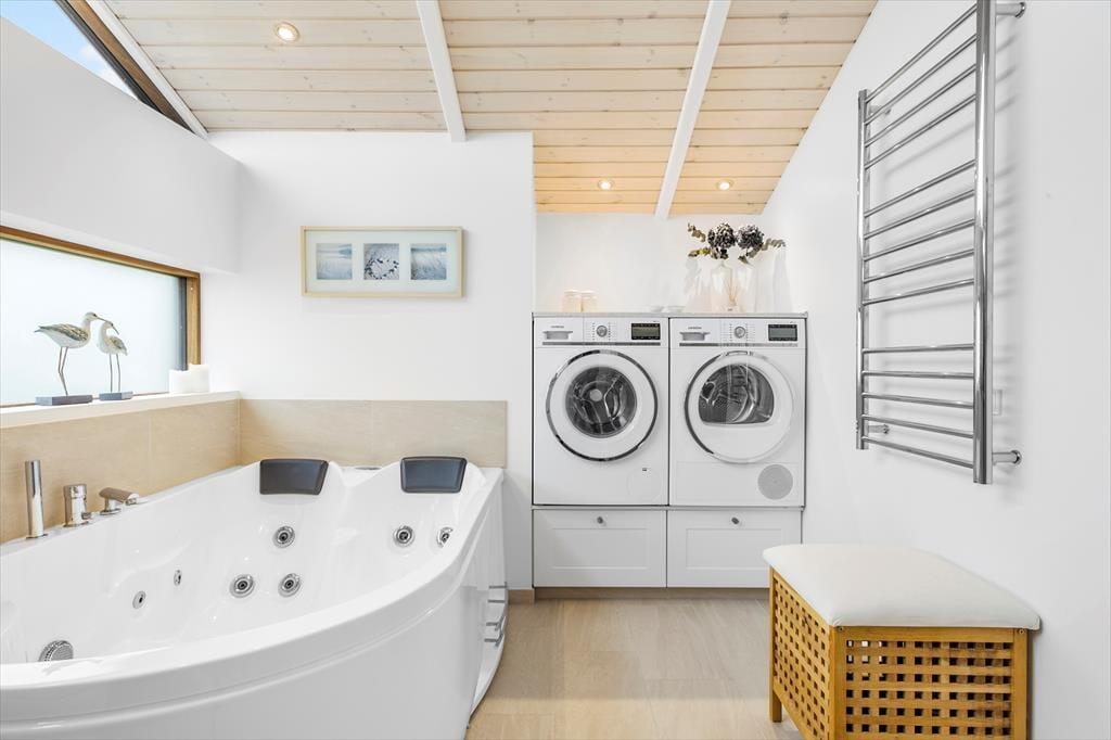 Indenfor møder du en stemning, der er både moderne og afslappet. Den gennemførte indretning og det elegante materialevalg er med til at skabe en rolig og lys atmosfære, hvor det er nemt at føle sig hjemme – uanset årstid. Hjertet i huset er det rummelige opholdsrum med et stilfuldt køkken i åben forbindelse med stuen. Her er der rigelig plads til hyggelige fællesstunder, uanset om det er en regnvejrsdag med brætspil og varm kakao, eller en sommermorgen med friskbagte rundstykker og udsigt til havet. Det store lysindfald og den åbne planløsning gør det let at være sammen – samtidig med at du aldrig er langt fra det storslåede vue ud over landskabet. De komfortable sovepladser sikrer, at alle får en god nattesøvn efter dagens oplevelser, og det hele er smagfuldt indrettet med tanke på både æstetik og funktion.