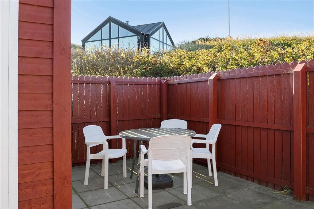 Når vejret er til det, er det oplagt at rykke ud på en af de to terrasser, hvor du både har sol, læ og selvfølgelig udsigten til Vesterhavet som trofast ledsager. De gode havemøbler indbyder til lange stunder under åben himmel – hvad enten det er med morgenkaffen, en frokost i læ for vinden eller et glas vin, når aftensolen maler himlen i gyldne nuancer. Den korte afstand til stranden gør det nemt at lade bare tæer møde det bløde sand eller tage en frisk dukkert, når lysten melder sig. Her er der lagt op til feriedage i det fri, hvor både to- og firbenede gæster kan trives i fulde drag.