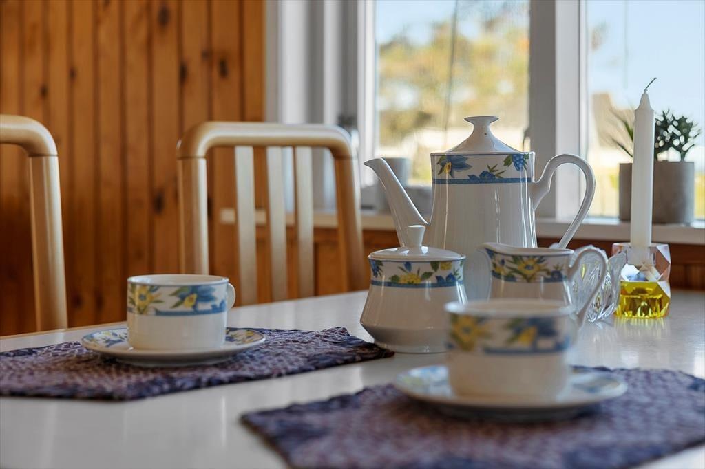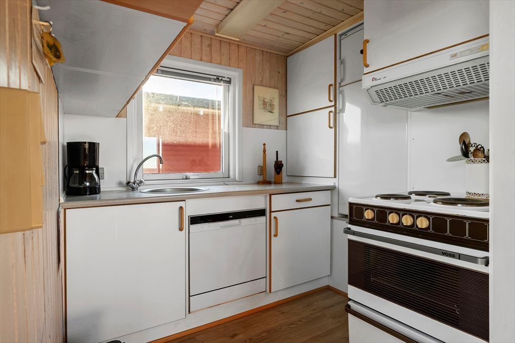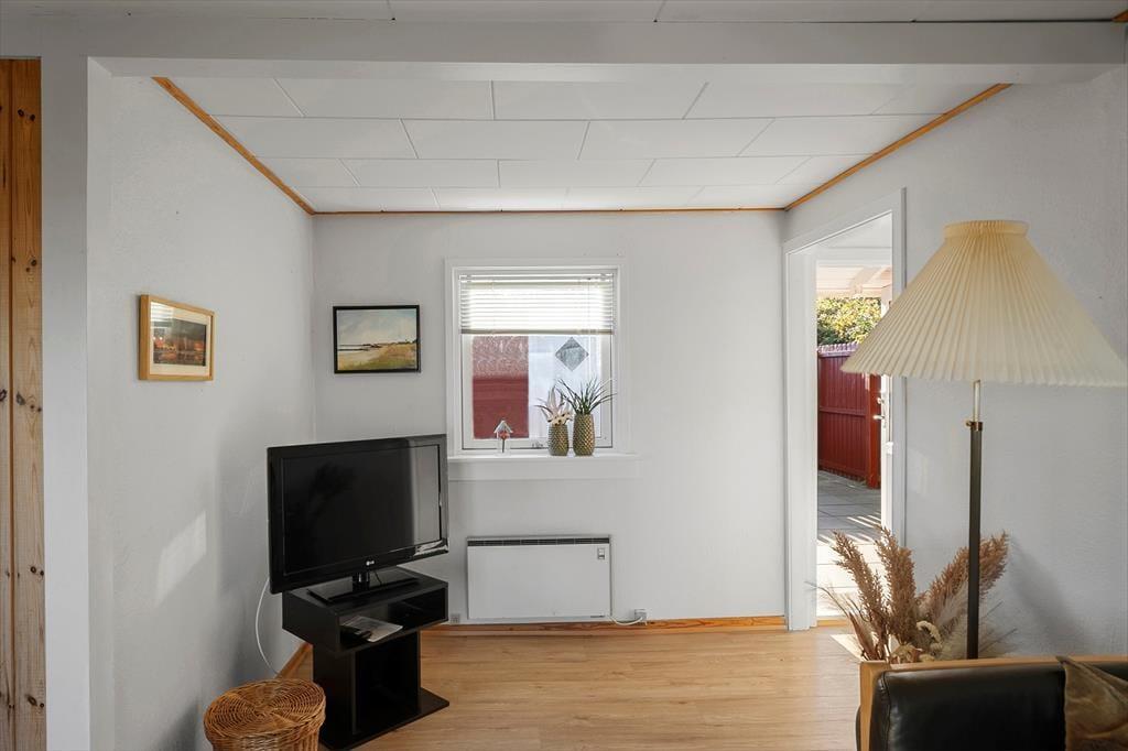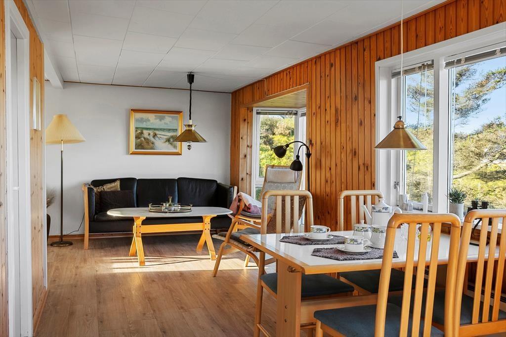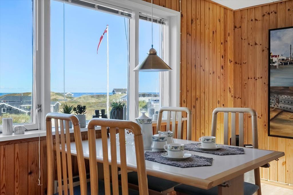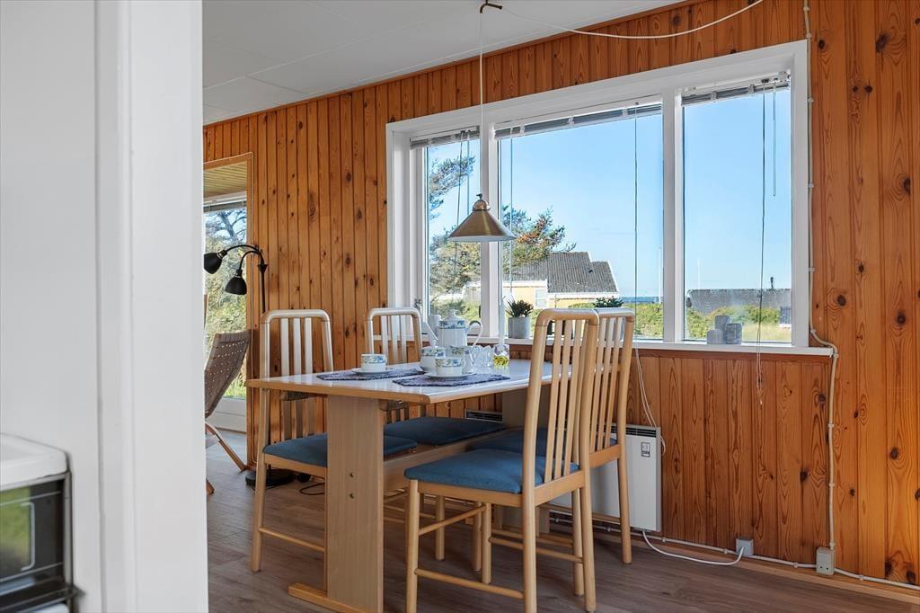 Indenfor mødes du af en rustik og hyggelig indretning, hvor det klassiske sommerhuslook straks sætter stemningen for afslappede feriedage. Stuen er husets naturlige samlingspunkt med plads til at slænge sig i sofaen, mens blikket automatisk søger mod det blå hav i horisonten. Fra spisebordet kan du nyde samme panorama, og det giver helt sikkert ekstra krydderi på måltiderne, når de indtages med sådan en udsigt. Indretningen er enkel og hjemlig, så du hurtigt føler dig godt tilpas – perfekt til to personer, der ønsker ro og nærvær i skønne rammer. Og skulle du have lyst til at tage hundene med på ferie, er de også mere end velkomne her.