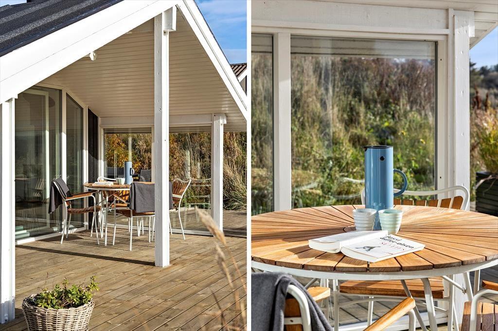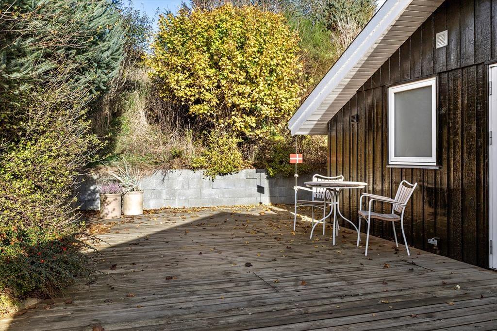 Sommerhuset byder på en stor og skøn træterrasse, der strækker sig rundt om huset, og en del af terrassen er overdækket, så I altid kan finde skygge eller læ for vinden. Det er et oplagt sted at spise morgenmad i den friske luft eller tage et glas vin ved solnedgang, mens I nyder den fredelige atmosfære. Terrassen giver rig mulighed for at slappe af i solen, hygge med spil og grillmad, eller bare sidde og betragte naturen omkring huset. Med plads til hele familien – og hunden – er der gode muligheder for både afslapning og aktiviteter, mens den lette sommerbrise fylder luften med friskhed og ro.