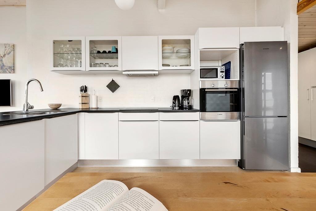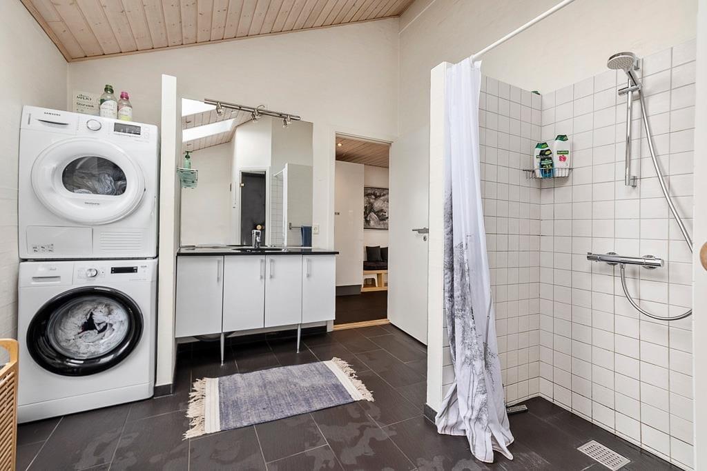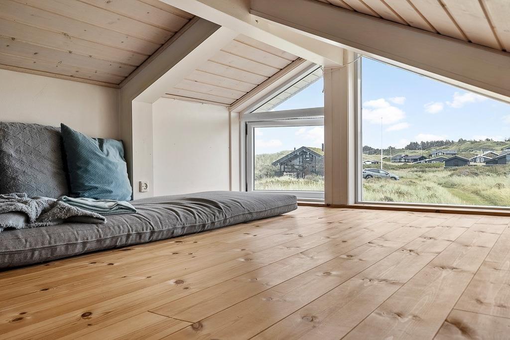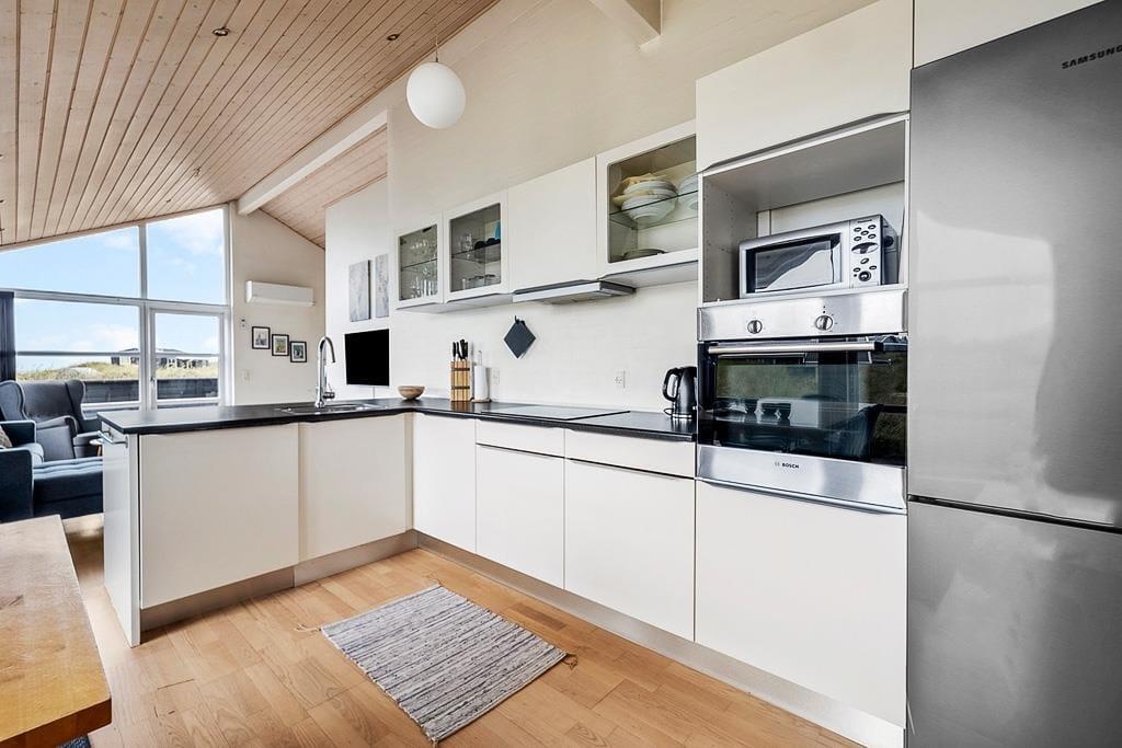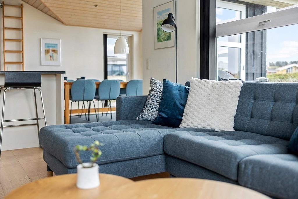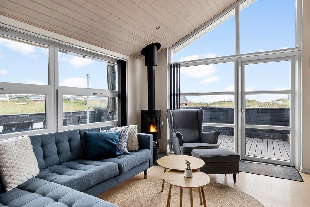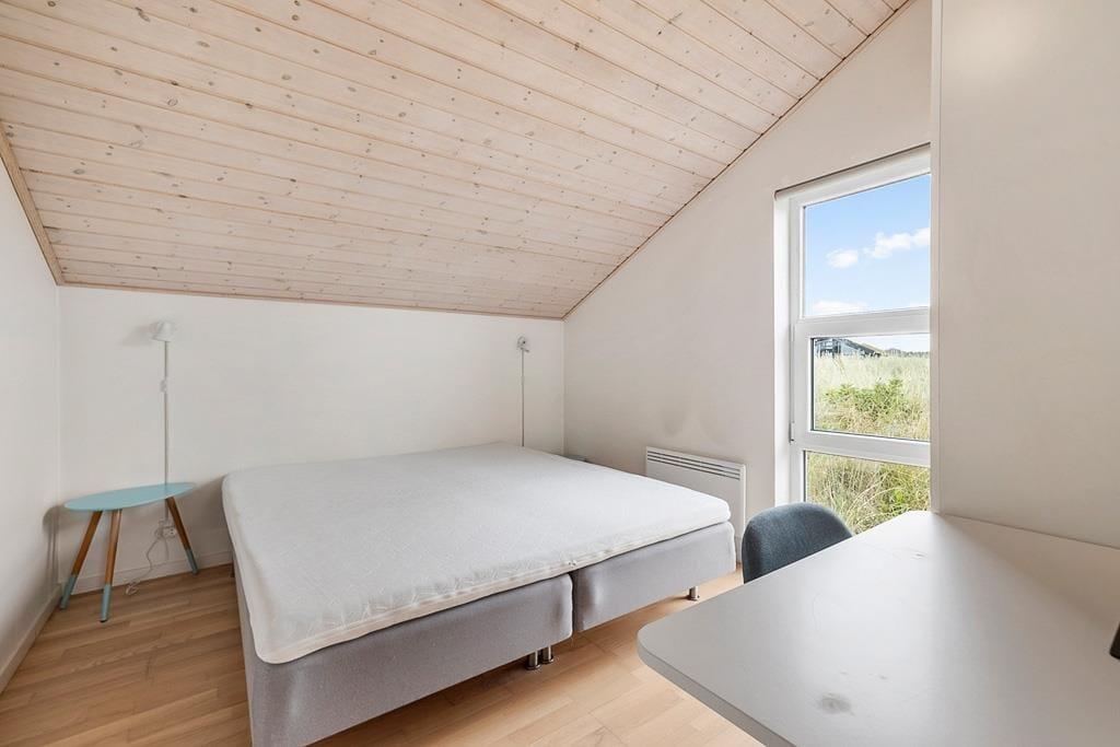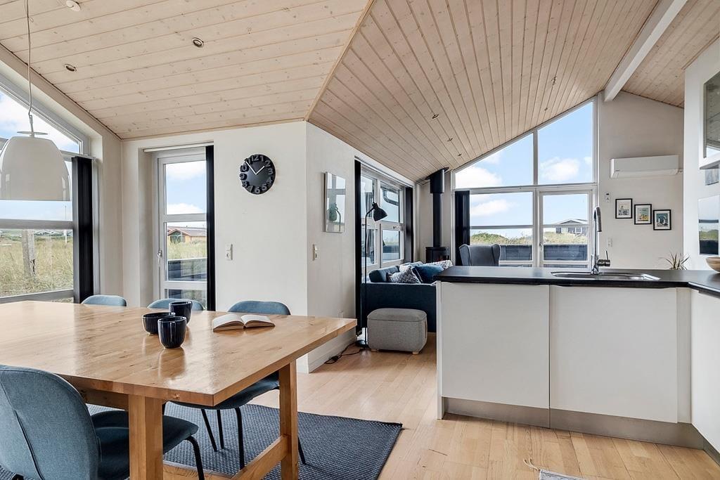 Sommerhuset er smagfuldt og moderne indrettet, med al tænkelig komfort og i de bedste materialer. Køkkenet ligger i åben forbindelse med stuen, som har en pragtfuld udsigt over havet. Der er et stort og lækkert badeværelse med spabad og sauna og yderligere et badeværelse, så huset er fint egnet til 2 par. Også to store soveværelser med gode dobbeltsenge og godt med skabsplads samt en ekstra sovemulighed på en sovesofa i stuen. En hyggelig hems med udsigt over klitterne giver desuden ekstra charme og plads i huset. Endelig skal også brændeovnen og det trådløse og gratis internet nævnes.